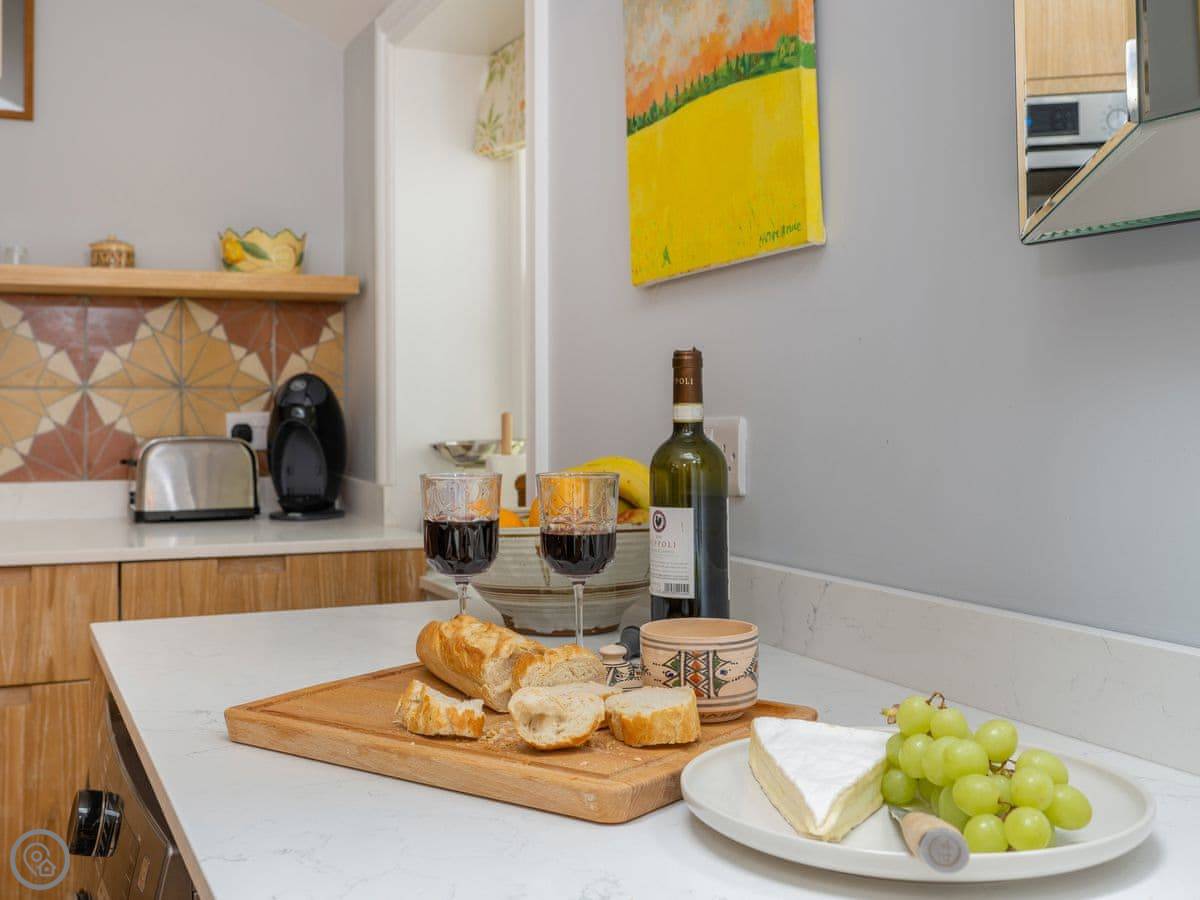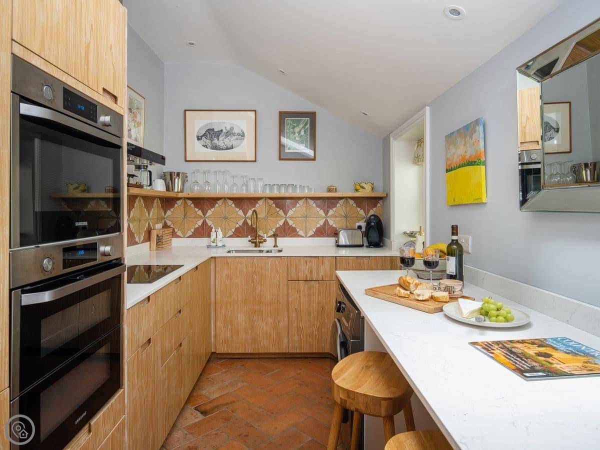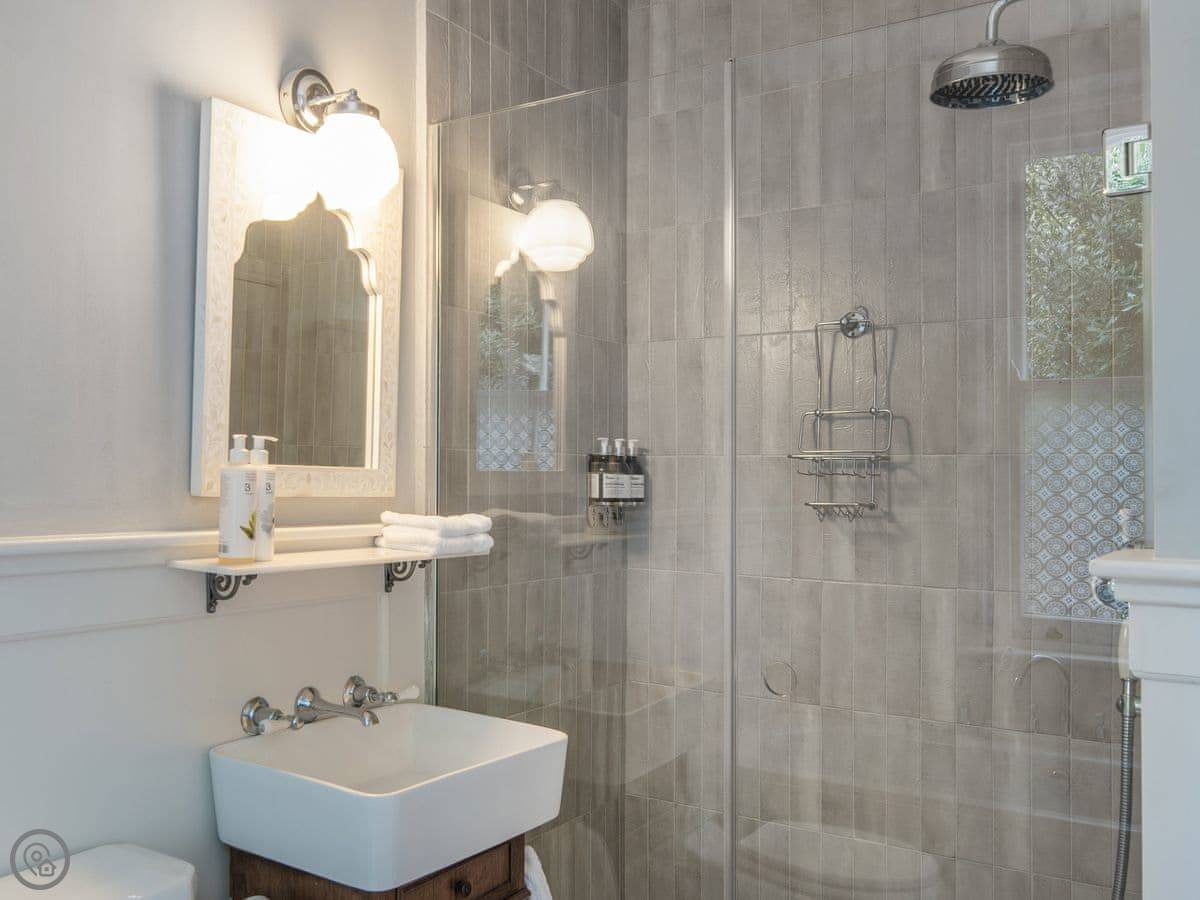 The bedroom's on the ground floor. There's one bathroom with a walk-in shower. The living area and kitchen are open plan. It's all on one level, so no stairs to worry about. We've got an electric vehicle charger if you need it.