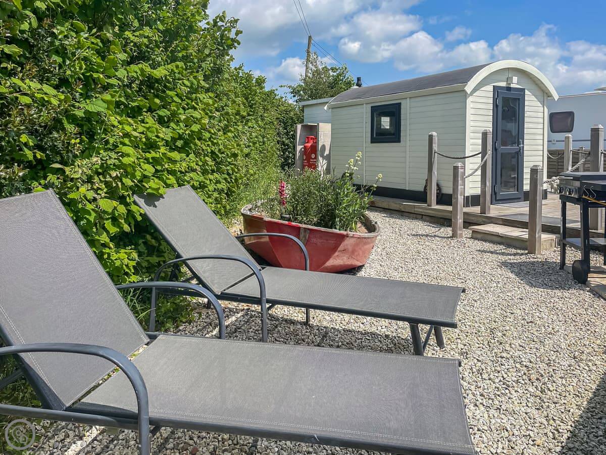 You get your own little patio area with a BBQ. The view is the main thing. It looks out over the fields towards Kingsbridge. It's very quiet.