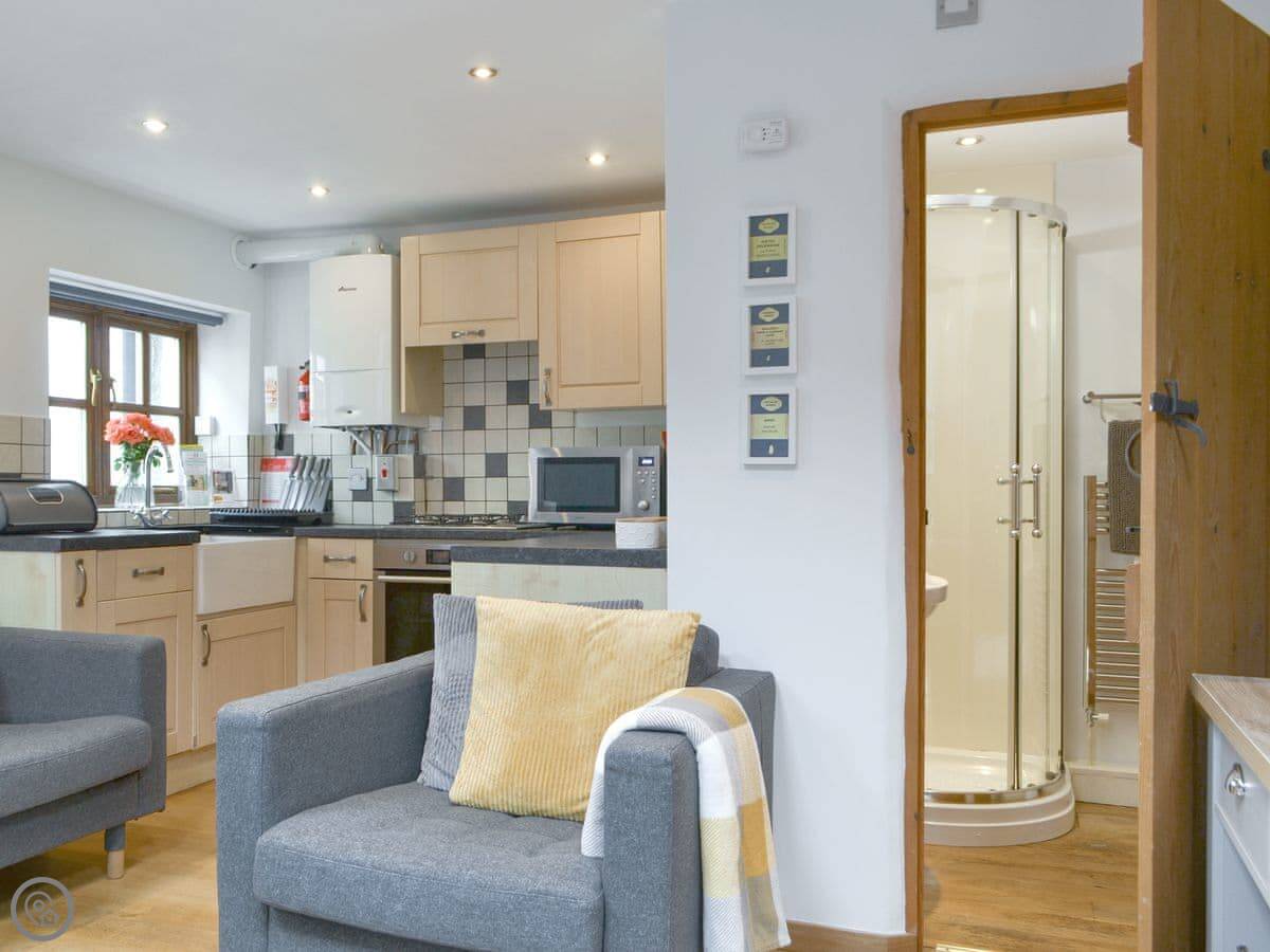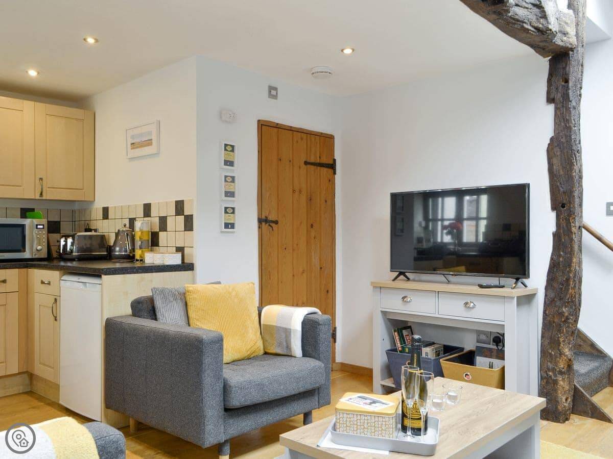 Flookburgh offers the best of both worlds, with easy access to Humphrey Head, a popular tourist spot for beach lovers, and right on the border of the Lake District National Park. There are walks, cycling routes, local pubs, great shopping and stunning scenery. Sleeping two, Hillrise Barn has a kingisze bedroom on the first floor with an exceptional Simba mattress for a great night’s sleep. The bedroom offers plenty of storage and a Smart TV. Downstairs, the bright, open-plan living space provides easy seating, a large Smart TV and a comfortable environment in which to relax after a day of exploring. The kitchen is well-equipped and offers everything you need to prepare a hearty breakfast before a day of adventure. There’s a small outside space complete with seating to soak up the afternoon sun with a nice glass of wine or to enjoy a morning coffee.