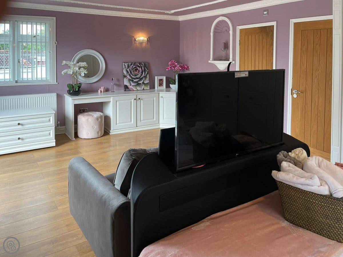Holly Cottage is a lovely property which has all the features you require for a staycation. It has its own outdoor swimming pool, jacuzzi, games rooms with a pool table and a couple of kitchens. On the first floor you will find a couple of bedrooms with a double and a single bed and a shower and toilet. The kitchen is a long galley kitchen which is well-equipped with all you will need for your break. This leads on to your dining room and then your living room which are incredibly spacious rooms. Also on the ground floor is a separate building which contains the games rooms which also has a bathroom and sun room. There is also a laundry room which has a couple of washing machines and tumble dryers so you know that you can feel confident that you have enough facilities to look after a very large group. Holly Cottage is a very special property with lots to do and you would never know you are virtually submerged in the capital city which you can see from the garden.