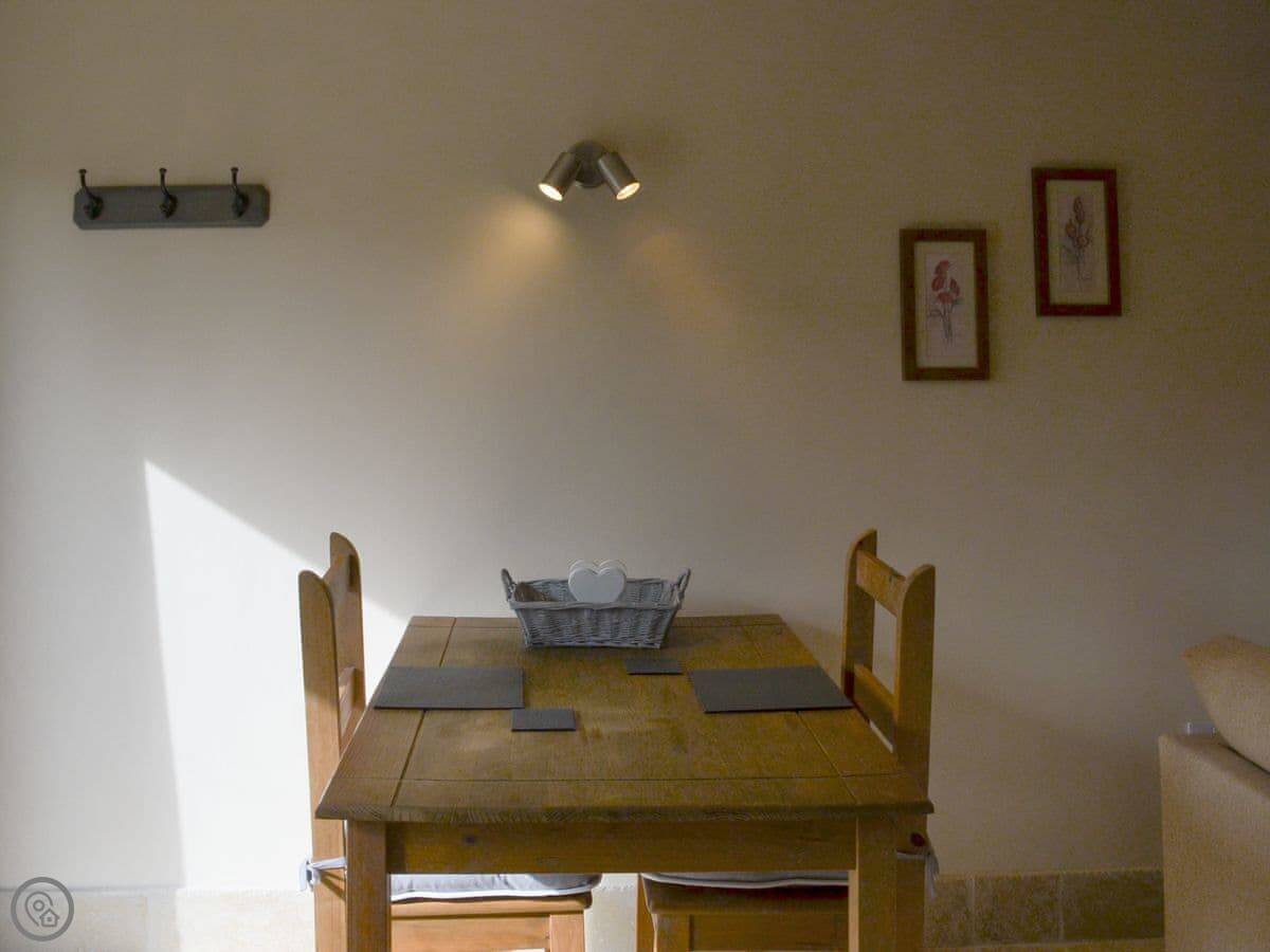 It's got a 4 Star rating. That means it's comfortable and well-kept. There's underfloor heating and a wood burner in the main room, which is open plan. The garden is enclosed if you've got a dog. There's parking right outside.