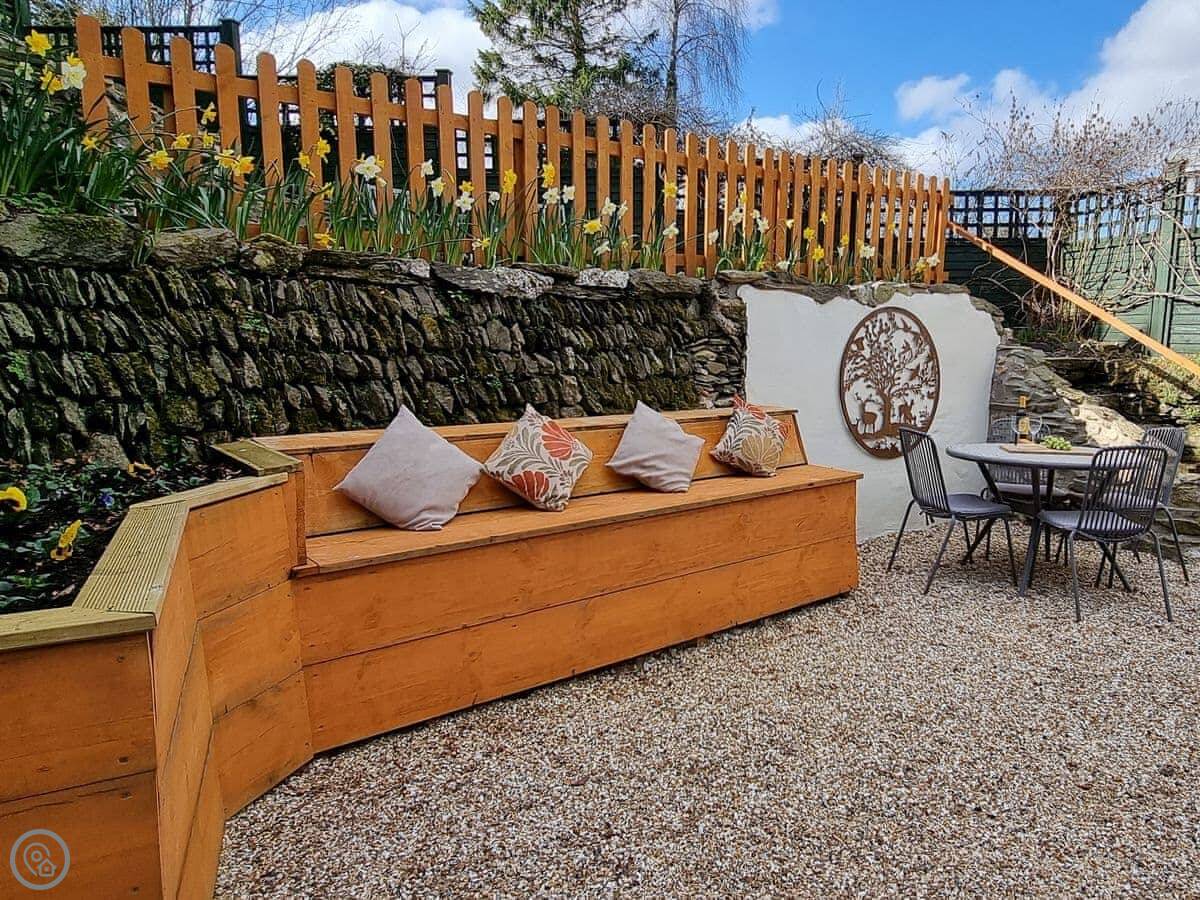 The kitchen has an Aga. There's a utility room and a downstairs toilet. The garden is south-facing and tiered, with seating on both levels. It's fully enclosed.