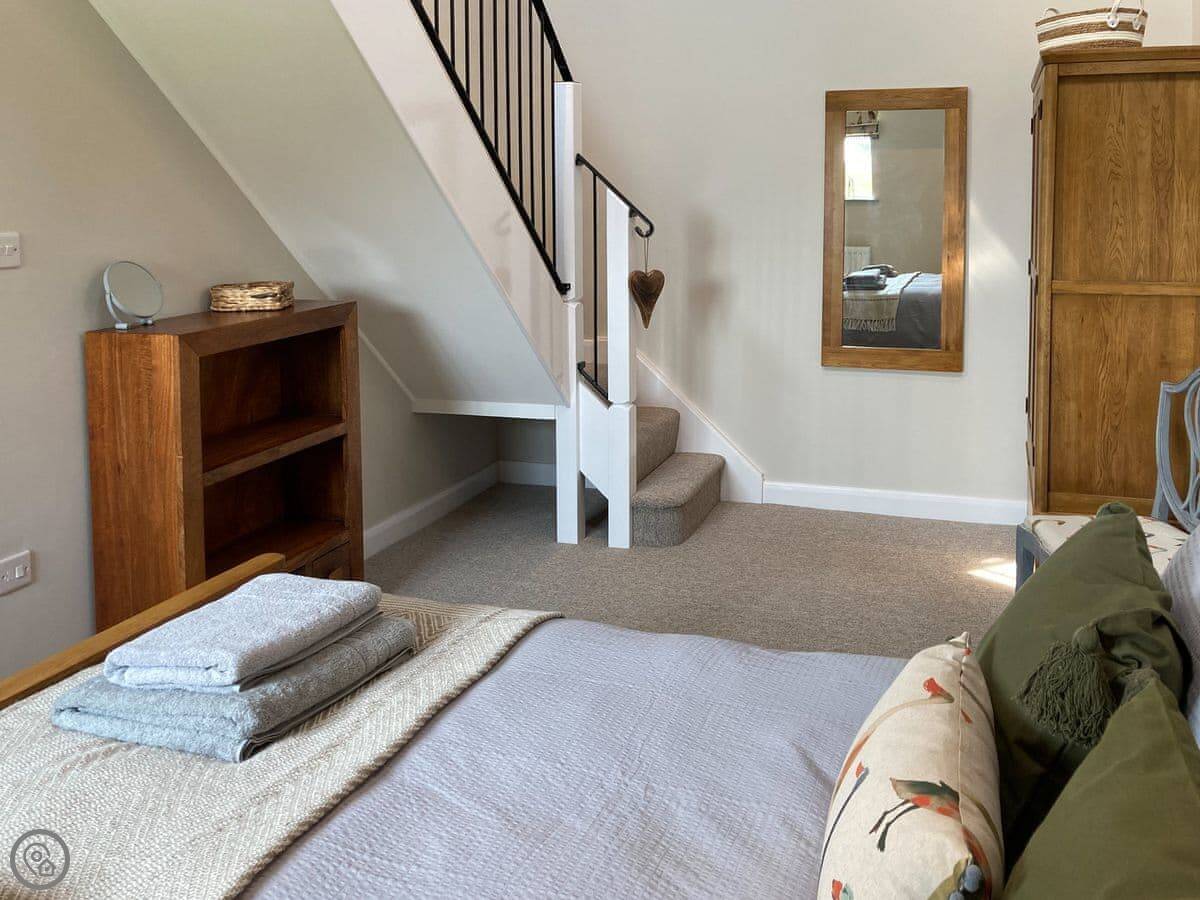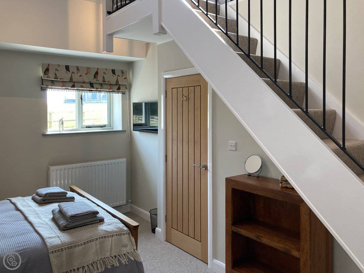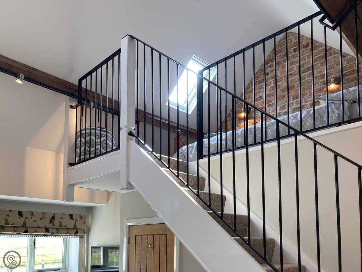 The cottage sleeps four. There are two bedrooms, but they're arranged on a mezzanine level. It's open plan, so it feels quite spacious. It's been recently done up and has a 4 Star rating. There's one bathroom with a walk-in shower.