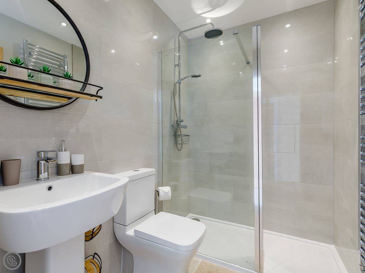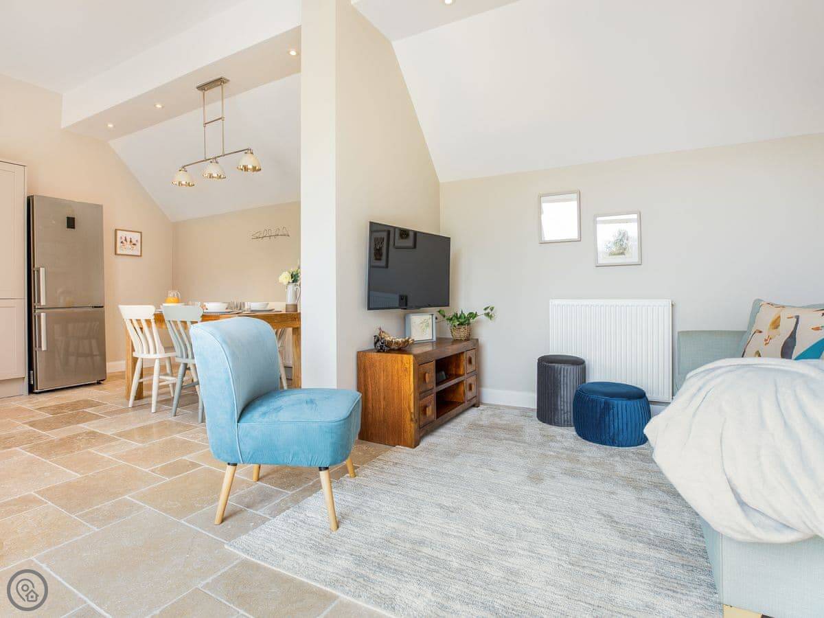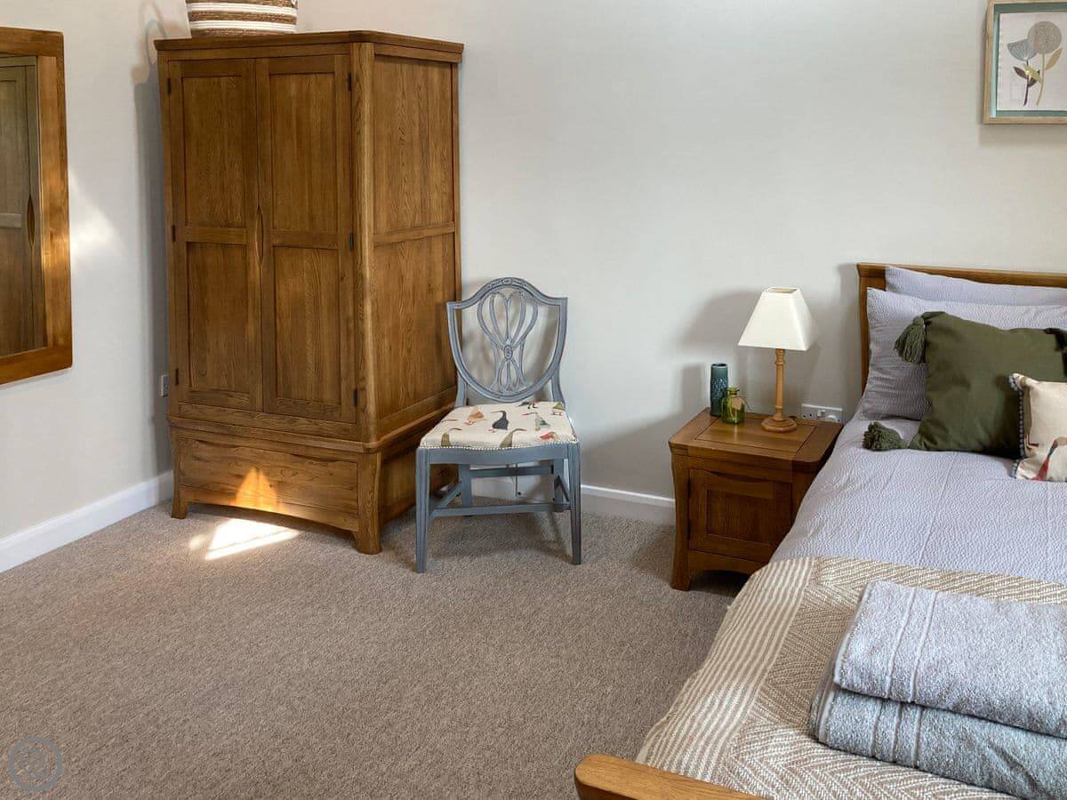The cottage sleeps four. There are two bedrooms, but they're arranged on a mezzanine level. It's open plan, so it feels quite spacious. It's been recently done up and has a 4 Star rating. There's one bathroom with a walk-in shower.