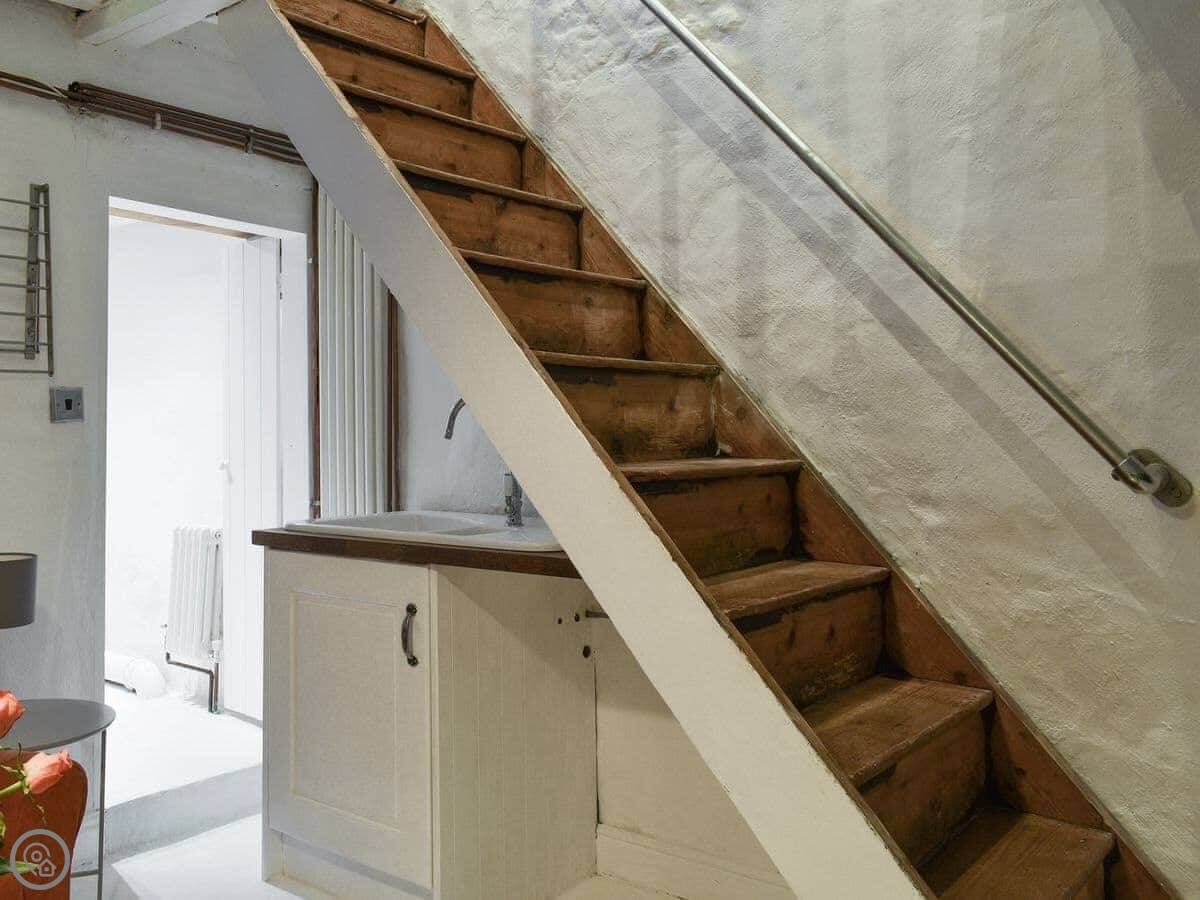 You've got a little private courtyard out the back. The stairs inside are steep and a bit narrow. They're just part of an old cottage.