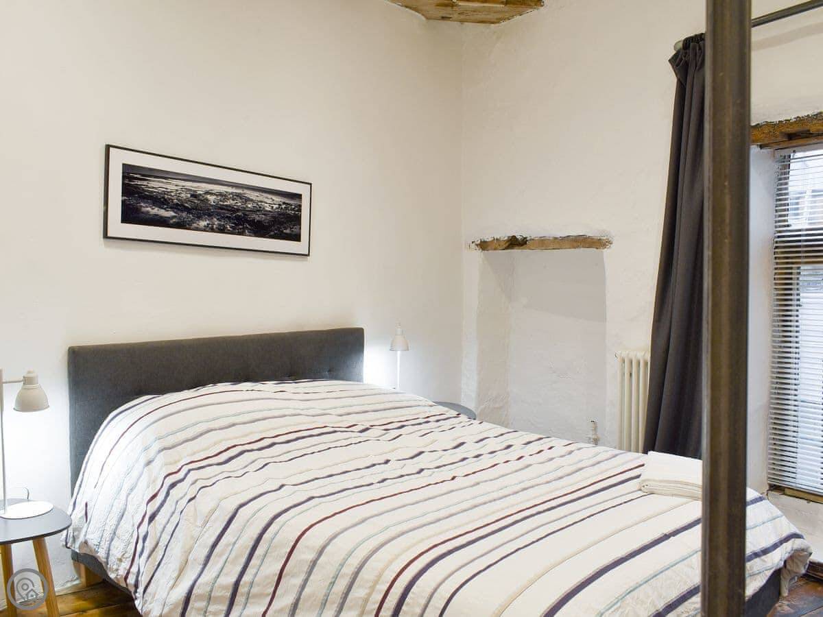 Hogwood Cottage is on the Market Place in Knaresborough. It's for two people. One bedroom, one bathroom. It's a 4 Star place, which means it's well kept and comfortable.