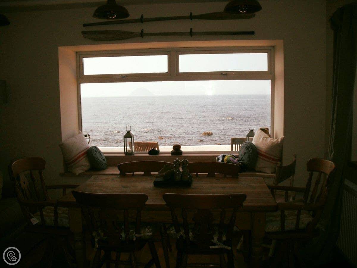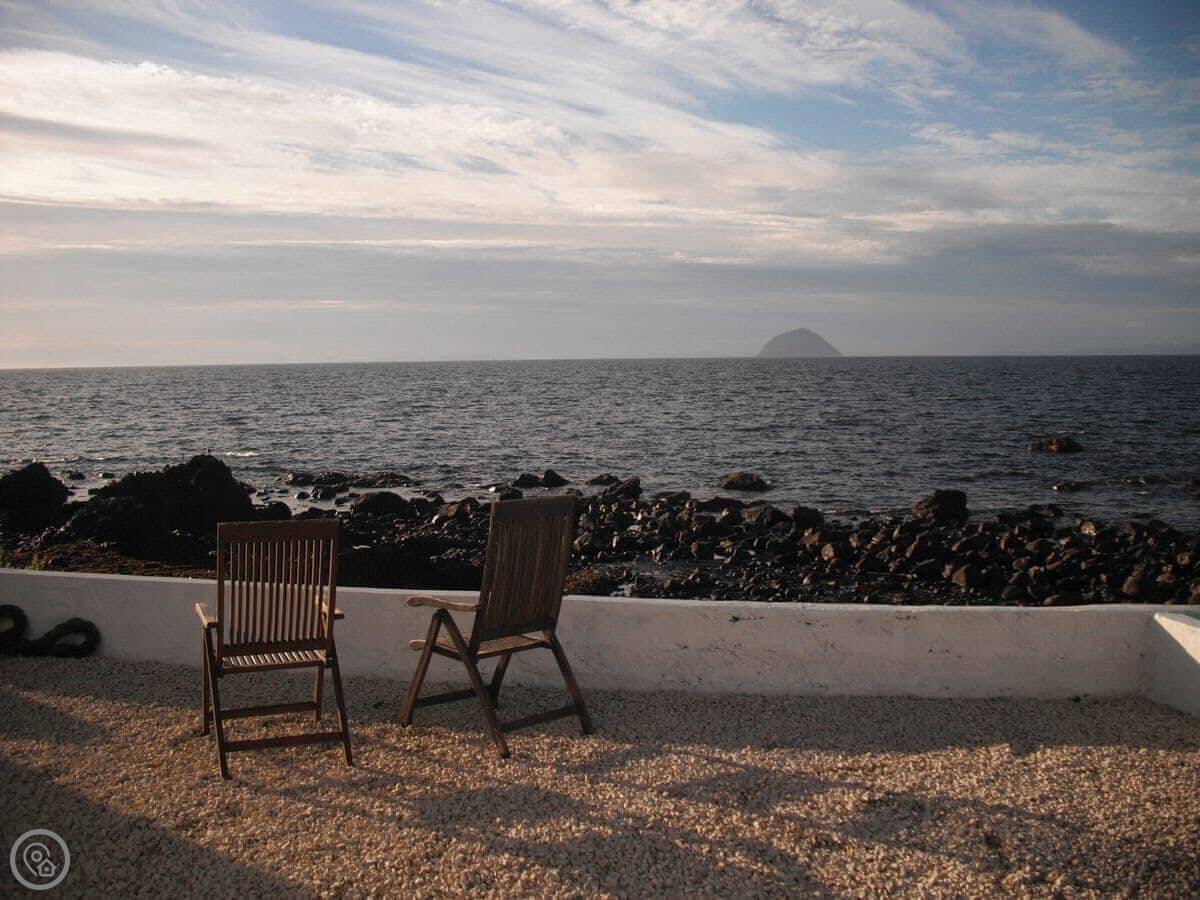 This fantastic detached coastal cottage lies 10 yards from the shore and has the most amazing views over the sea to Ailsa Craig, the Kintyre Coastline and Arran. The nearby town of Girvan has shops, restaurants, leisure centre with swimming pool and has great train links to the cosmopolitan city of Glasgow for a day out. You can book a boat trip from Girvan harbour out to Ailsa Craig to see the nesting birds or book a fishing trip. The area is steeped in history, with many ruined castles to explore, such as Dunure, Turnberry and Greenan. The world-famous Turnberry Resort is close by and in addition to golf, has a fantastic spa and outdoor centre. A visit and tour of Culzean Castle, designed by Robert Adams and truly one of his masterpieces, is one not to be missed with its dramatic clifftop location, as is a trip to the 18th century Dumfries House, part of the Princes Foundation and home to an unrivalled collection of Chippendale furniture. The 2000-acre estate has been beautifully designed with stunning walks throughout the grounds. The pretty seaside towns of Ayr, Prestwick and Troon are only a short drive and there is rail links for a trip to the cosmopolitan city of Glasgow. The islands of Cumbrae and Arran are easily reached for a day out whilst day trips to Ireland can be taken from Cairnryan.
