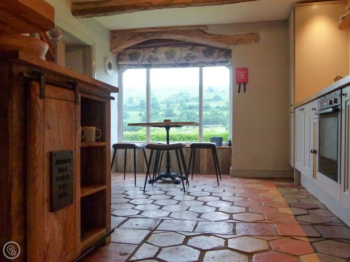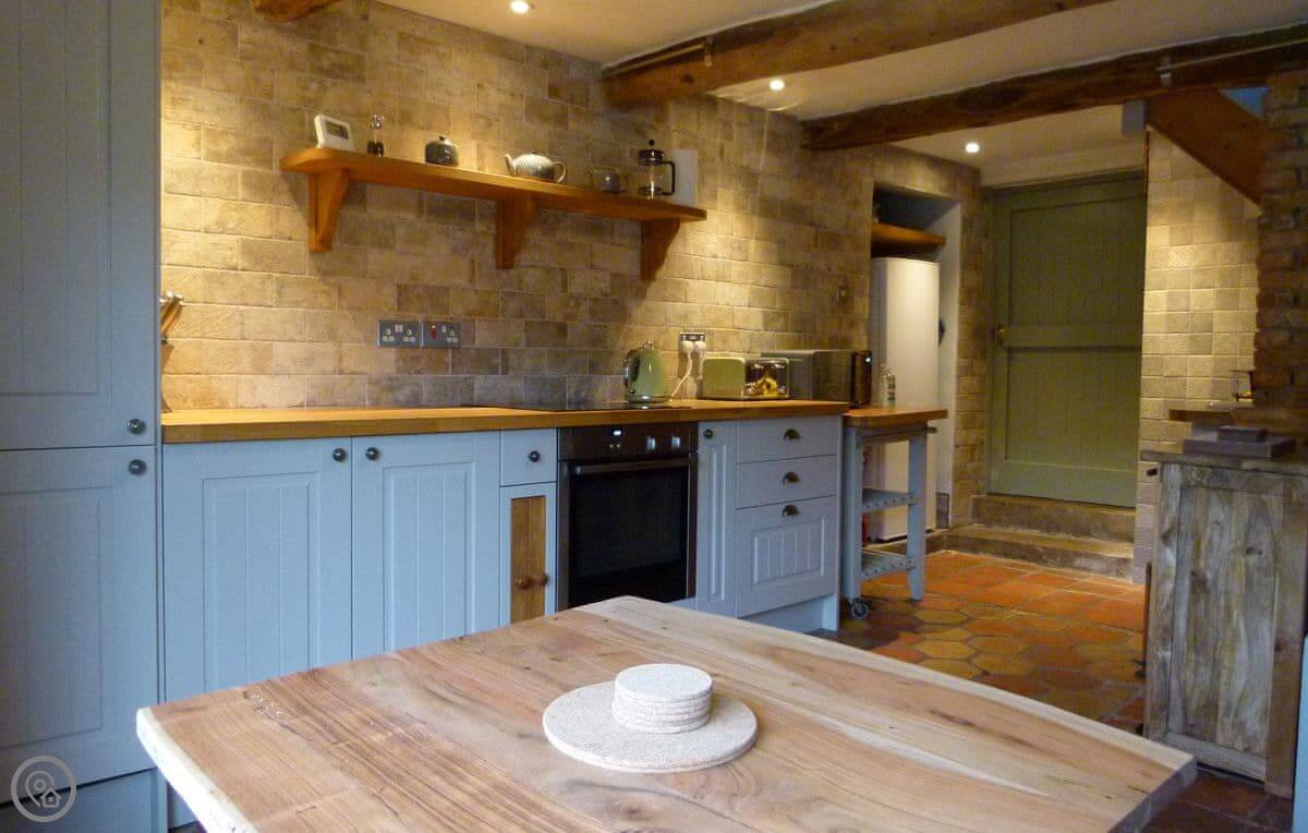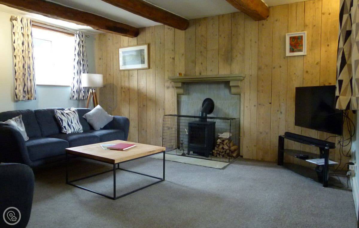 The kitchen is new, a shaker style. There's a wood burner in the living room. We leave some logs for you to start with. The garden room at the back is good for boots.