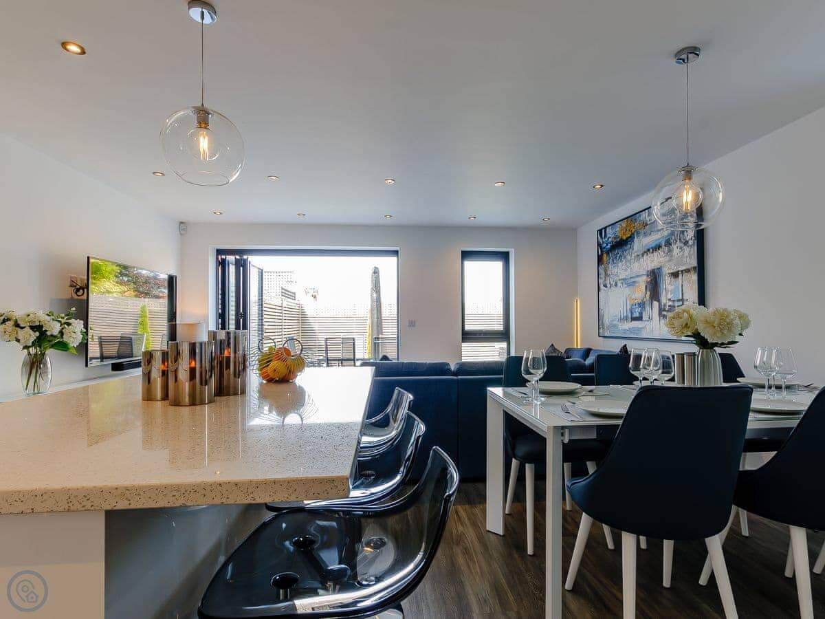 Nursery Mews is ideal for couples or a family seaside holiday with its open plan living space it has bi-fold doors leading to the garden ensuring enough space to entertain the kids whilst you enjoy the summer sun and a few glasses of wine. The well-equipped kitchen has everything you need to make family meals and the breakfast bar is ideal for everyone to gather at in the morning to discuss your plans for the day. There are three bedrooms on the first floor, with the master bedroom having a vaulted ceiling and en-suite shower room, another kingsize bedroom and a further double bedroom all with Smart TVs. Outside is a west facing garden with barbecue, perfect for al fresco dining.
