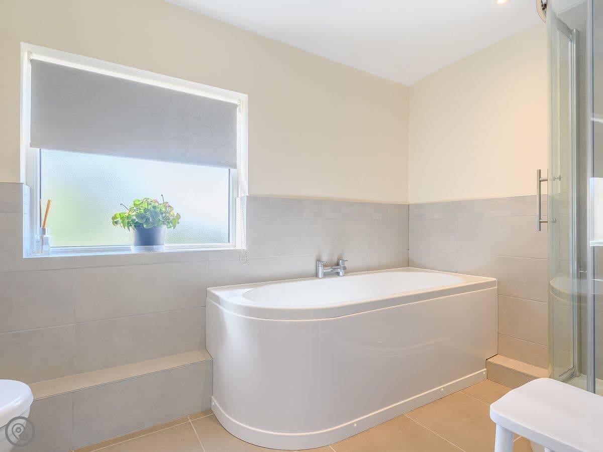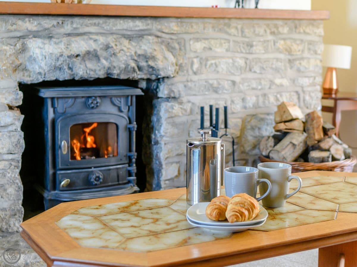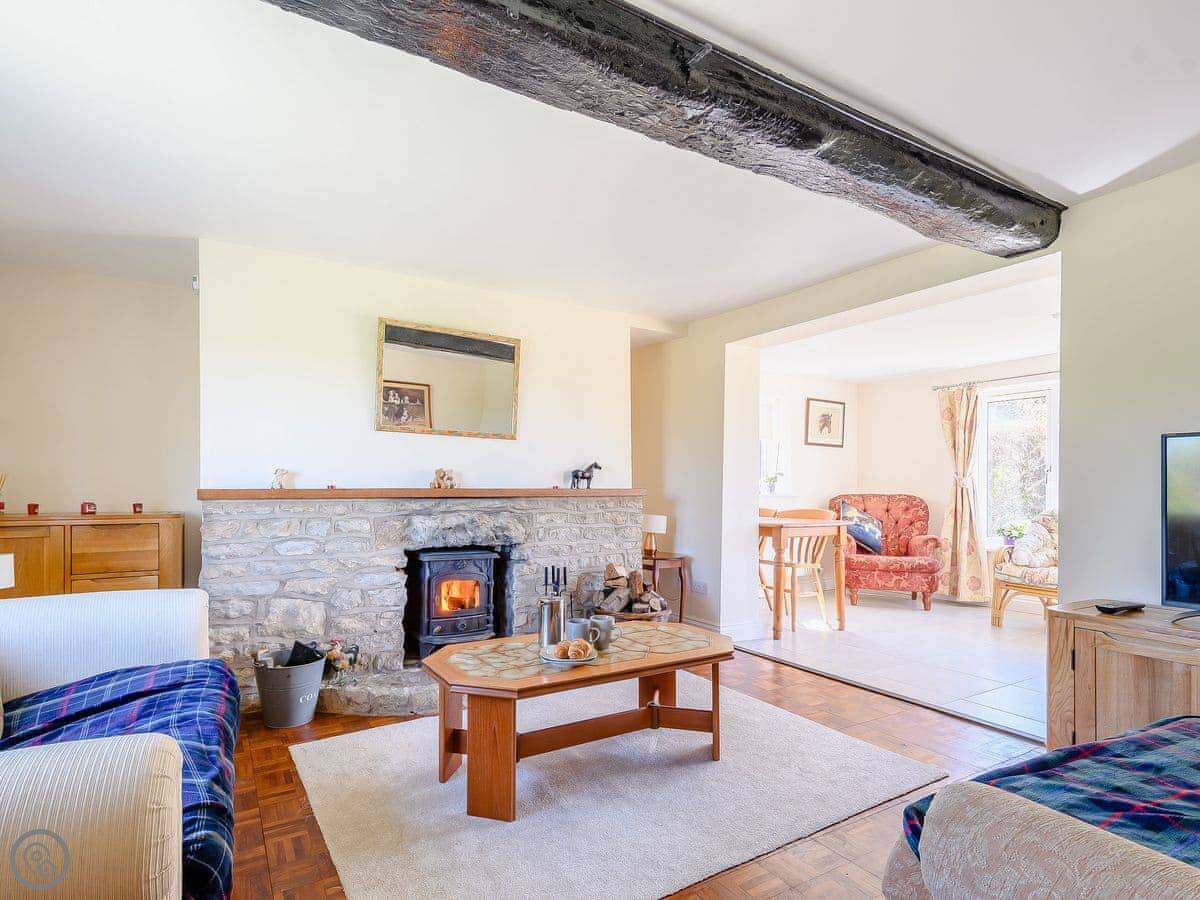 Inside, there's a wood burner in the living room. There's a sunroom that leads out to the garden. Facilities: WiFi, TV, dishwasher, washing machine, and parking right there. It's wheelchair accessible to get in, but the upstairs bedrooms mean it's not fully accessible for everyone.