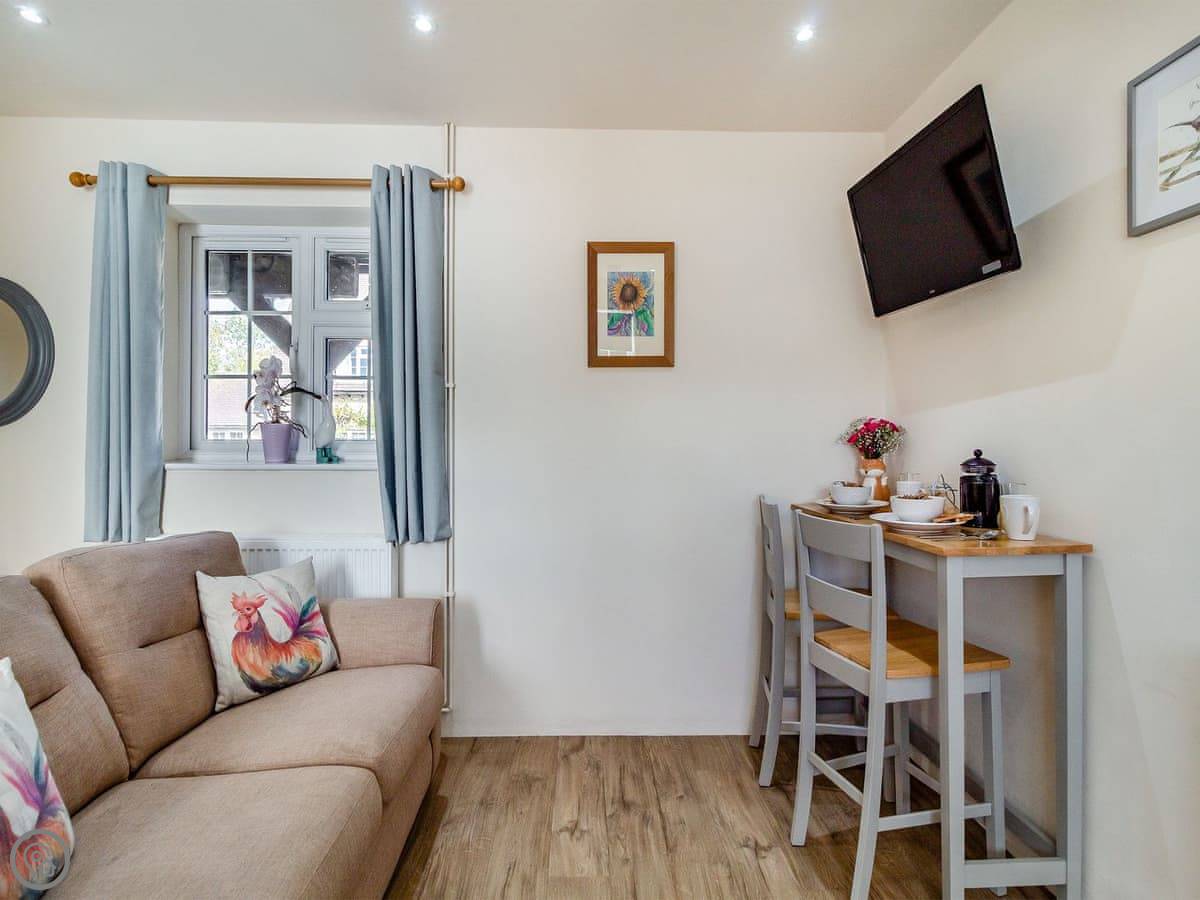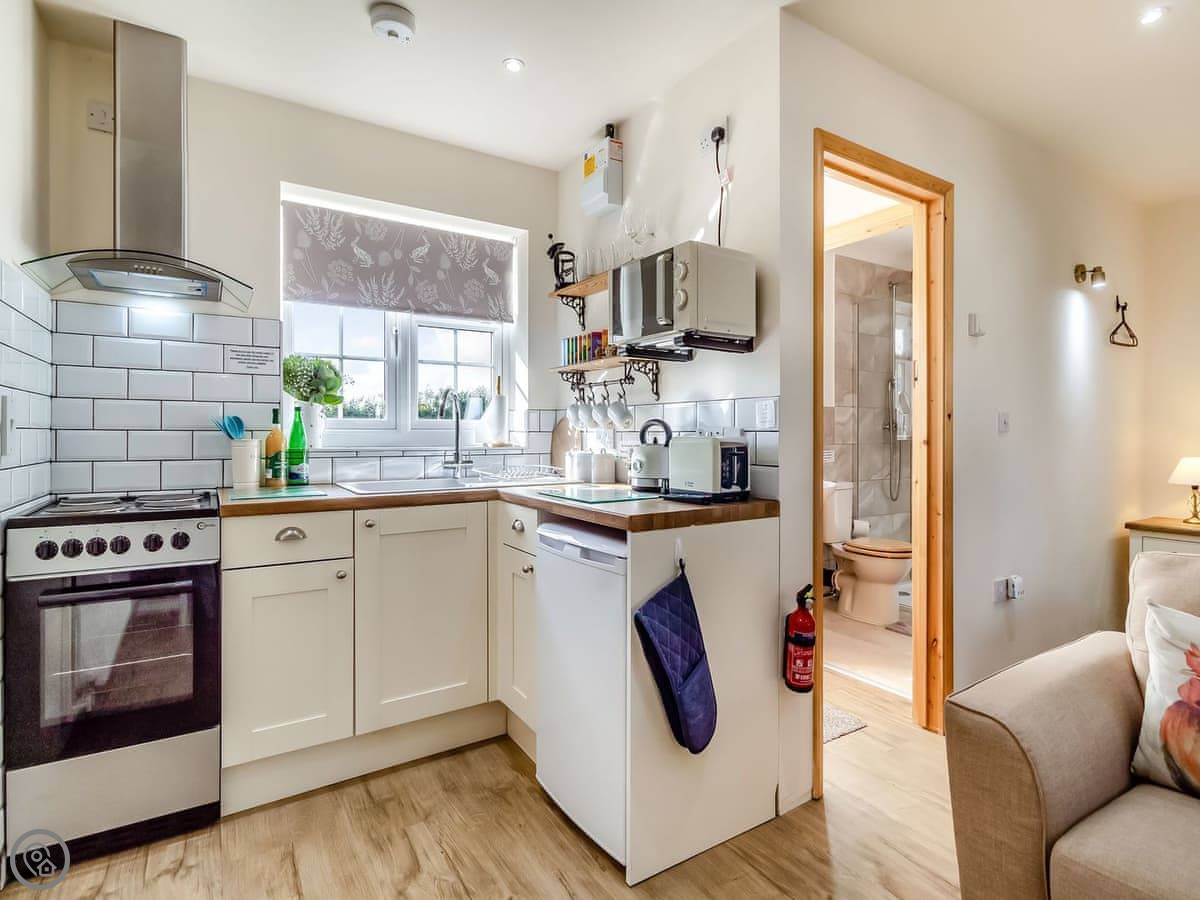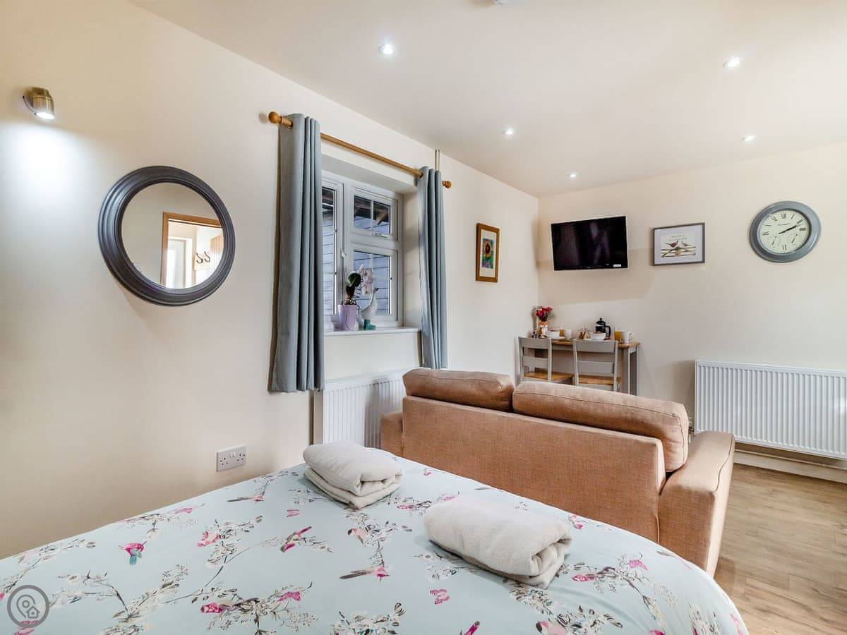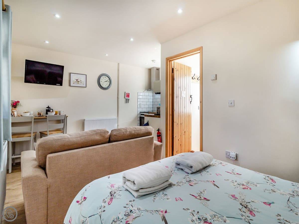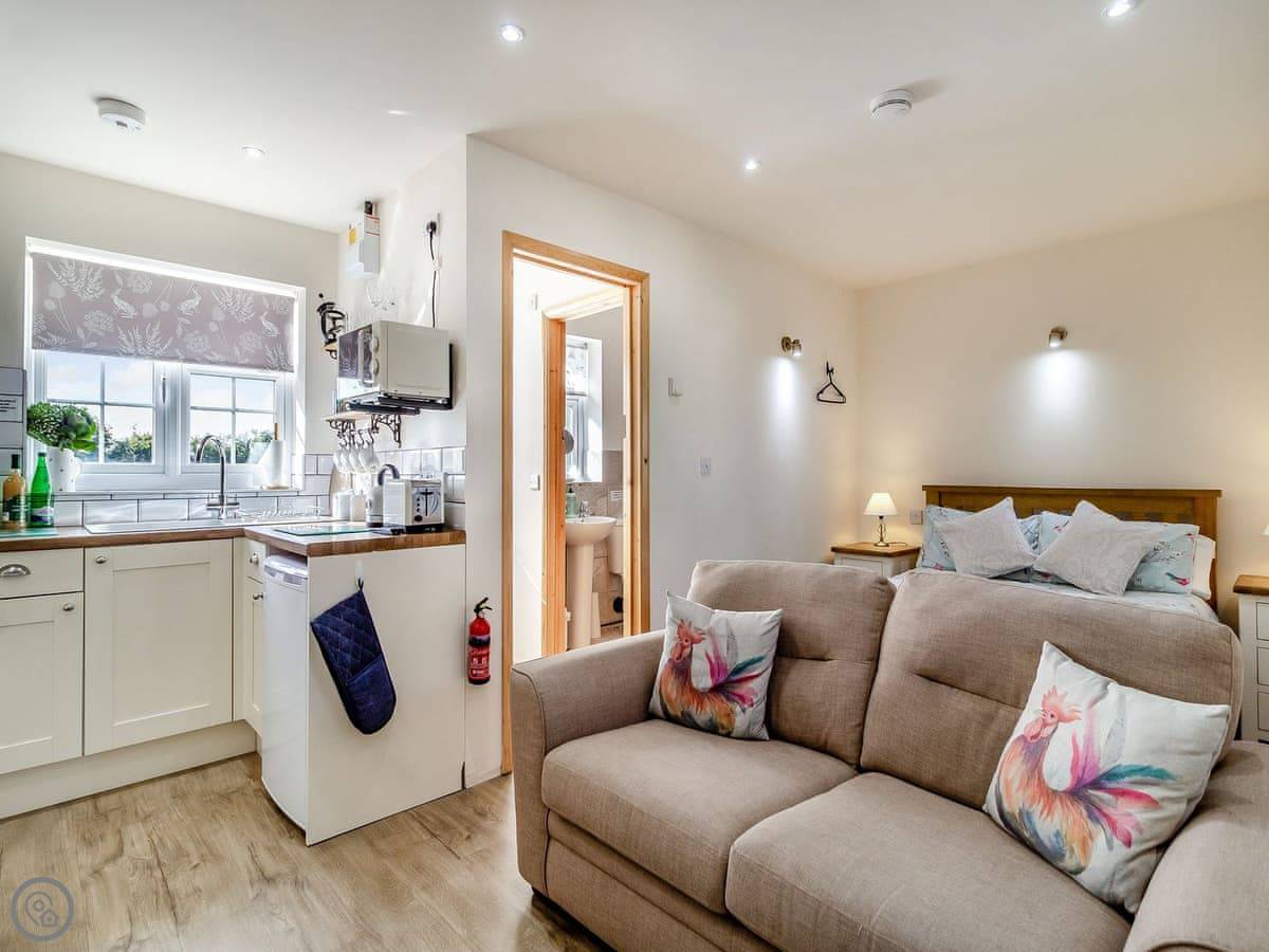 It’s a single storey place for two people. One room, really. The main space is open plan, so the bed, sofa, dining table and kitchen are all together. There’s a separate bathroom with a decent shower. It’s 4 Star rated, so it’s comfortable and everything is new, but not huge.