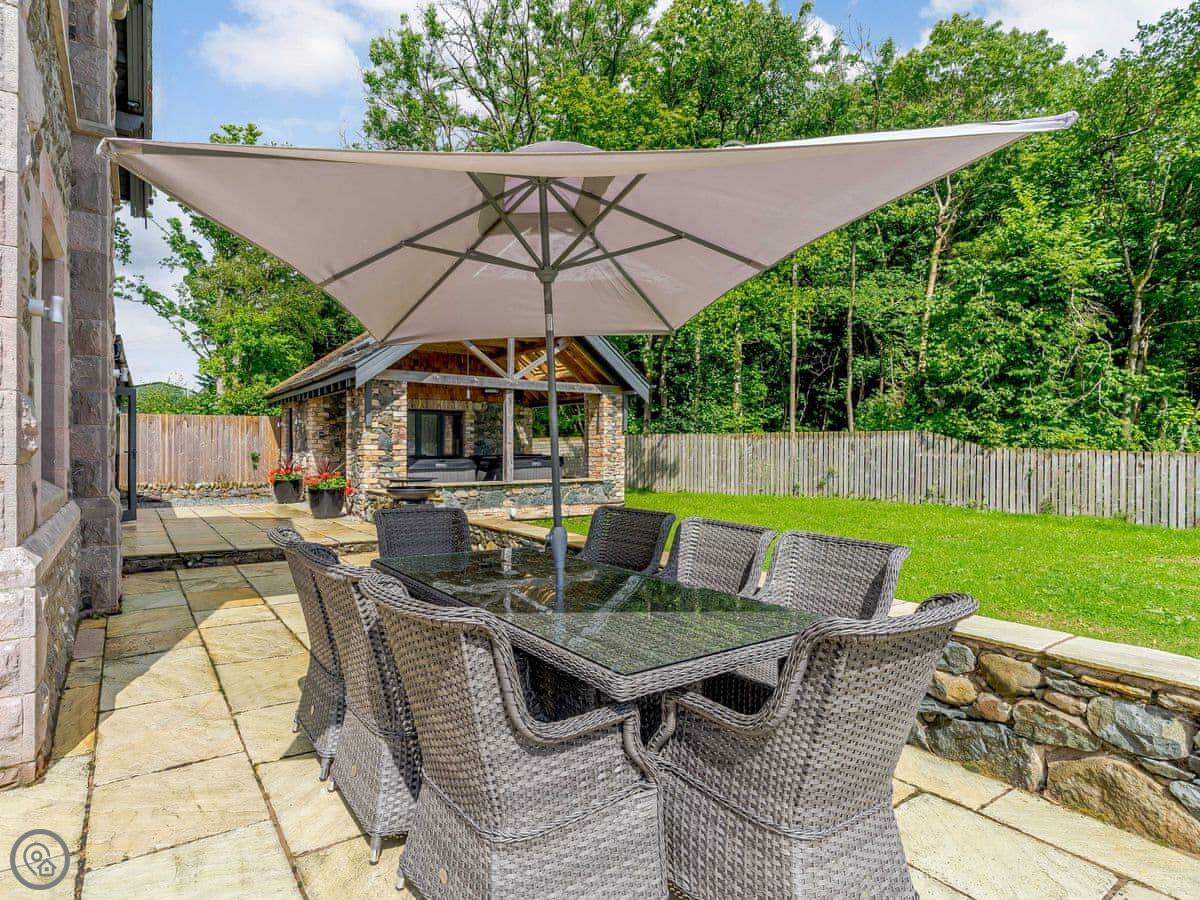 The garden is private and quite big. There's a summer house and a hot tub outside.