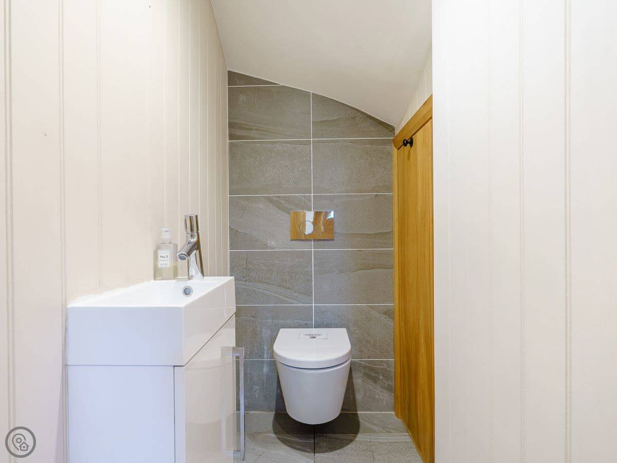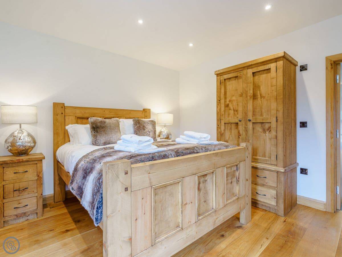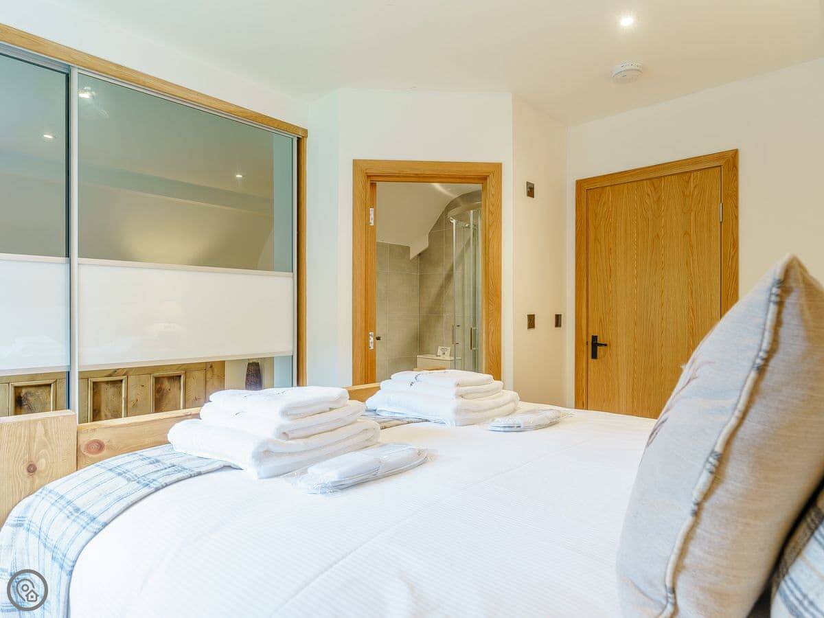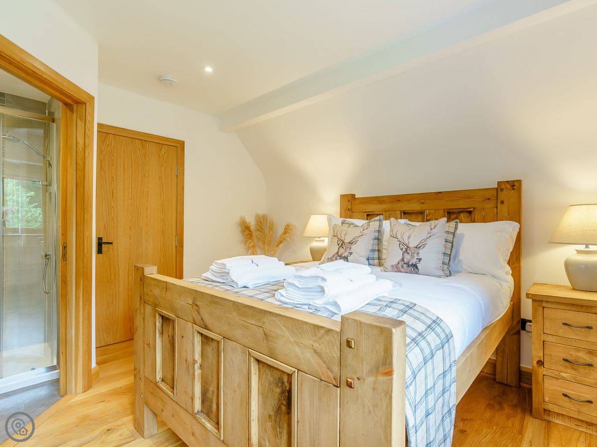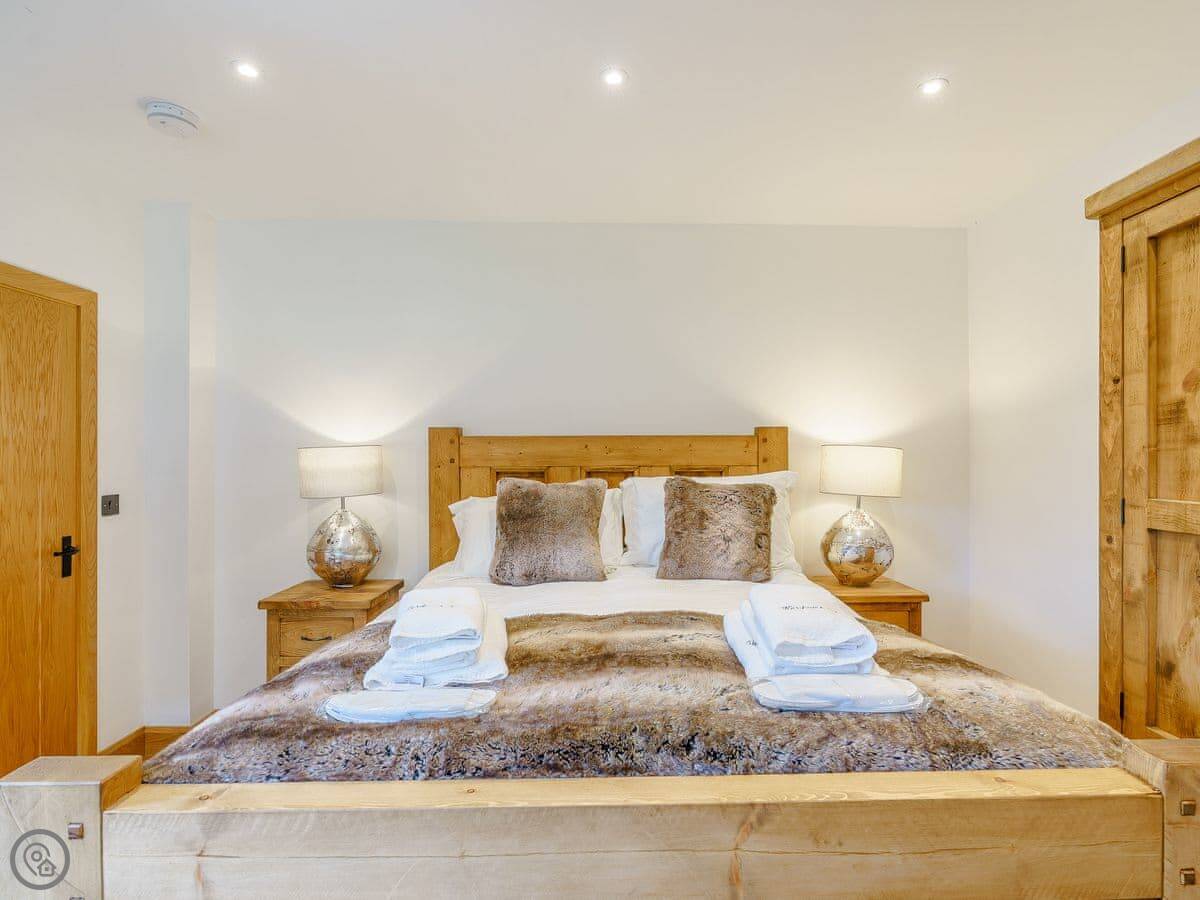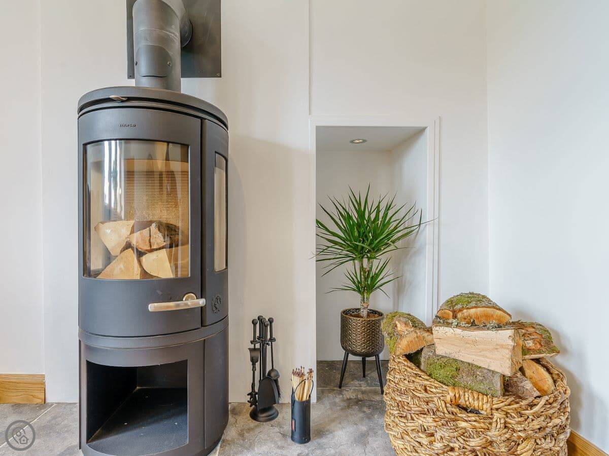 It's got a five star rating, which means it's well finished. There's a wood burner, a dishwasher, and wifi. All the bedding and towels are included. You can park right there.