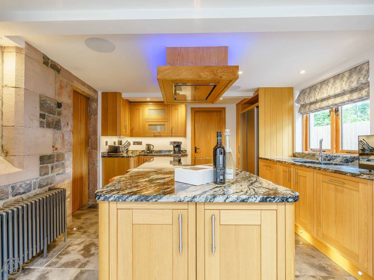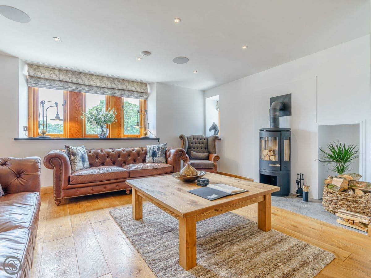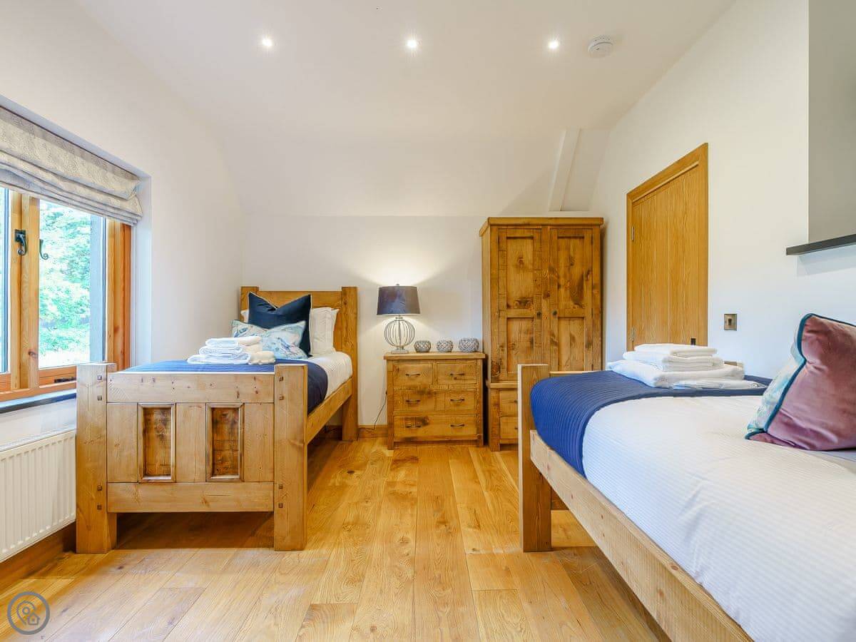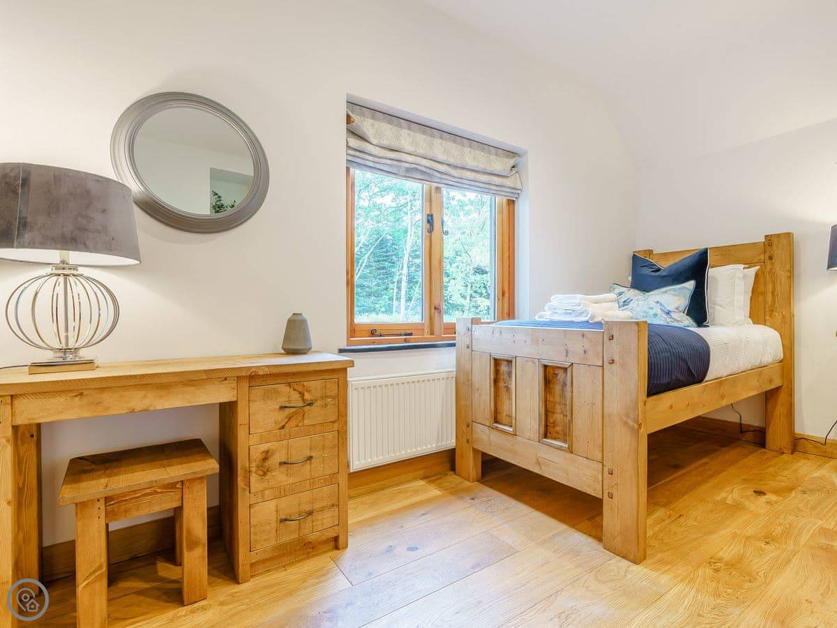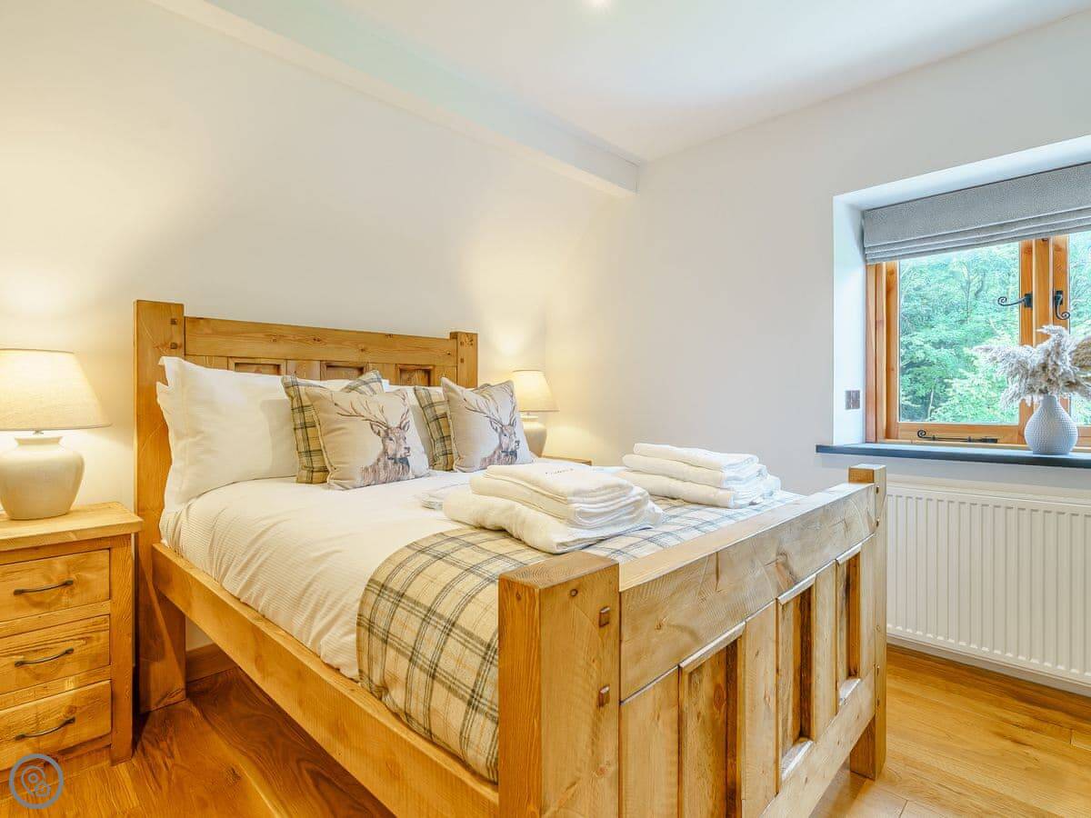 It's got a five star rating, which means it's well finished. There's a wood burner, a dishwasher, and wifi. All the bedding and towels are included. You can park right there.