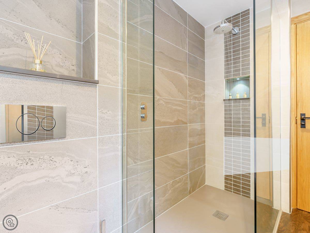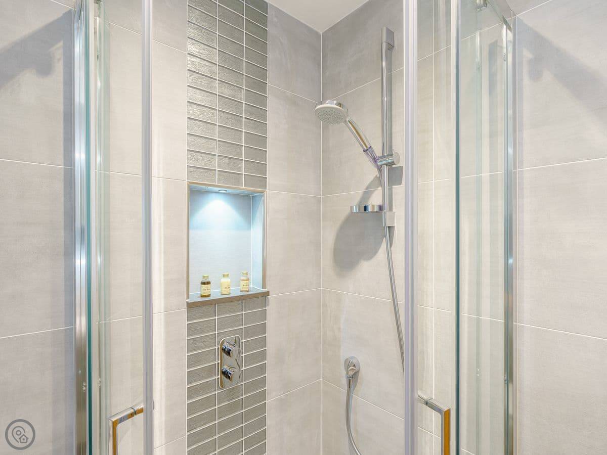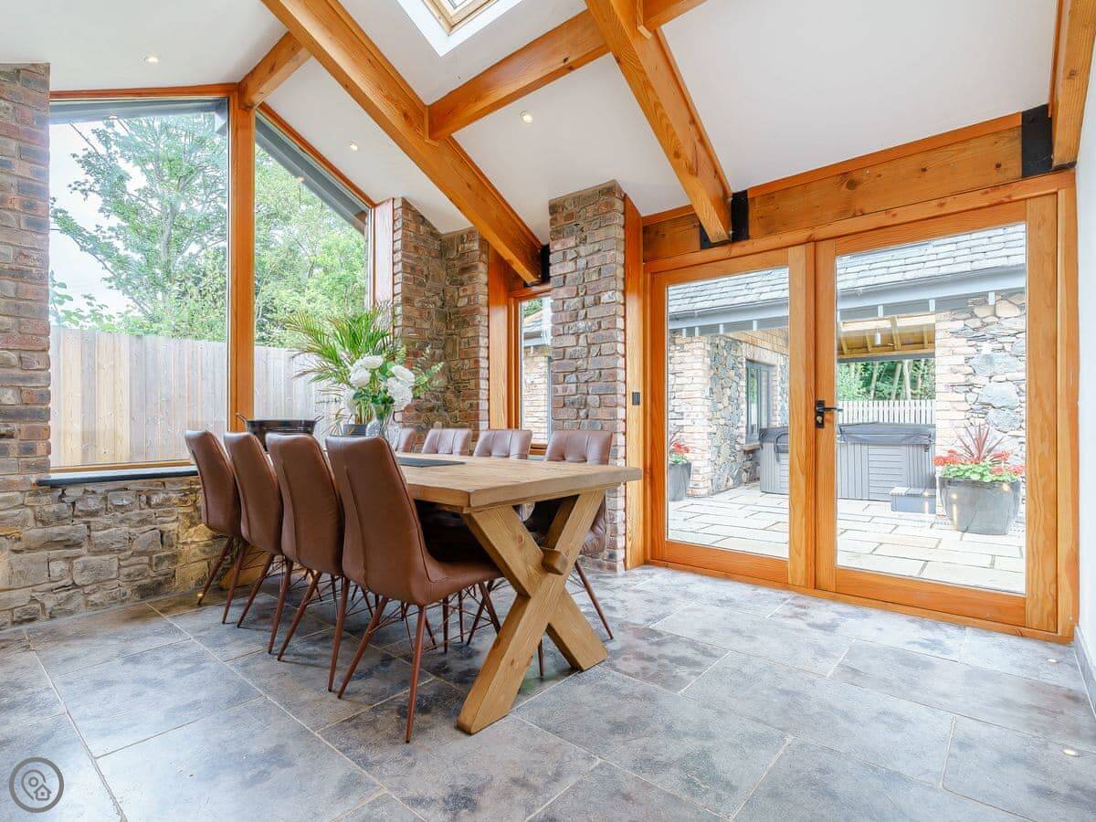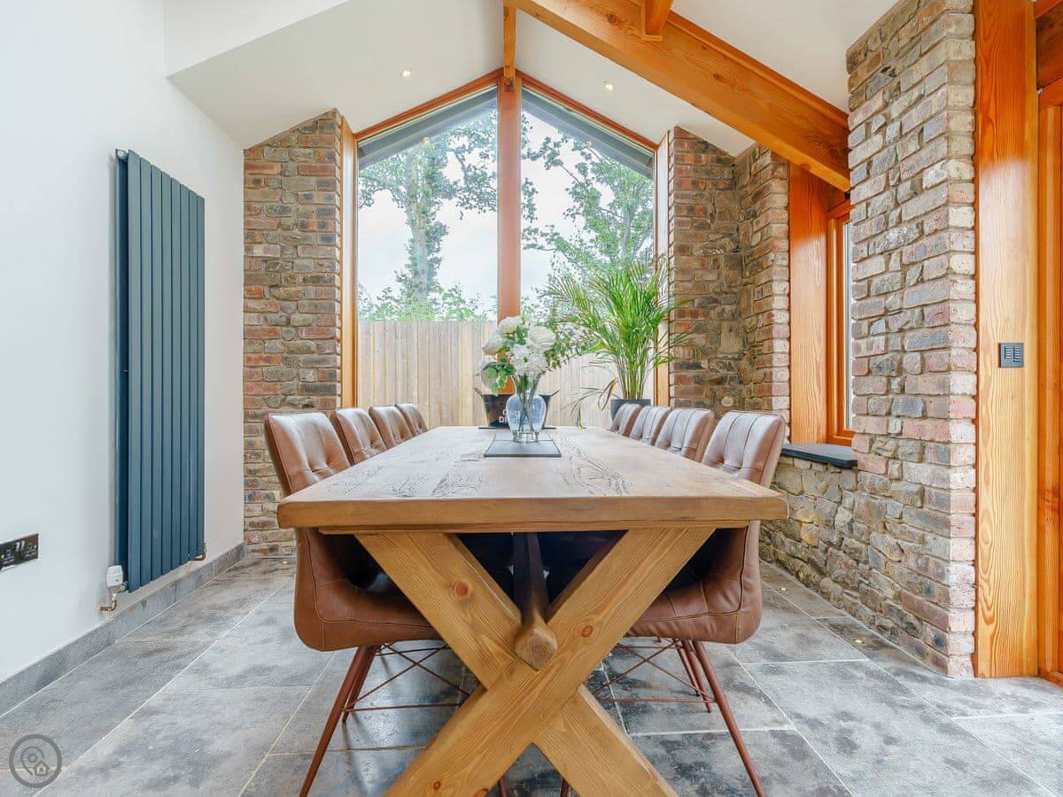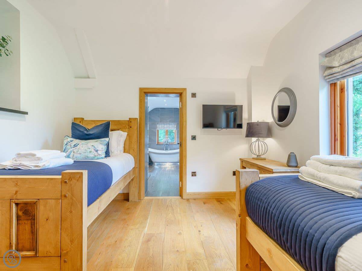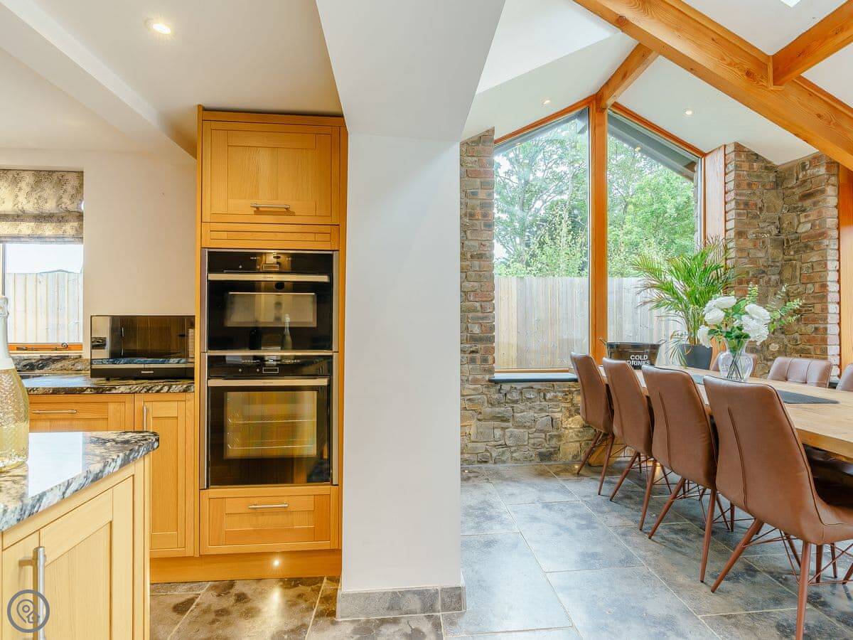 It's got a five star rating, which means it's well finished. There's a wood burner, a dishwasher, and wifi. All the bedding and towels are included. You can park right there.