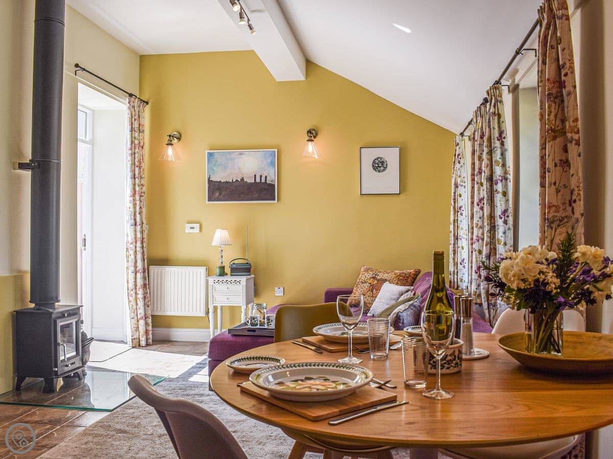 In terms of what's here, you've got the wood burner, the WiFi works, there's a TV, and parking right outside. All the bedding and towels are included. No pets, I'm afraid.