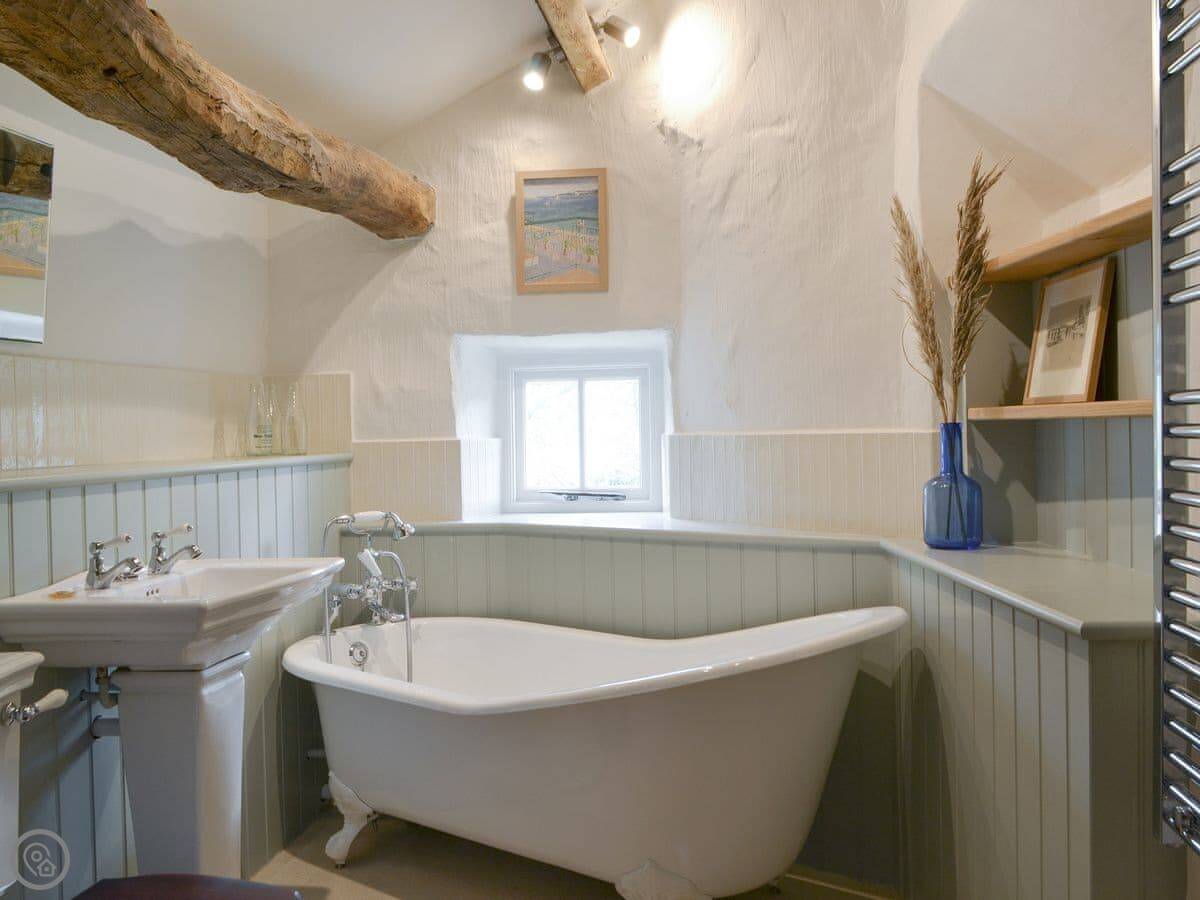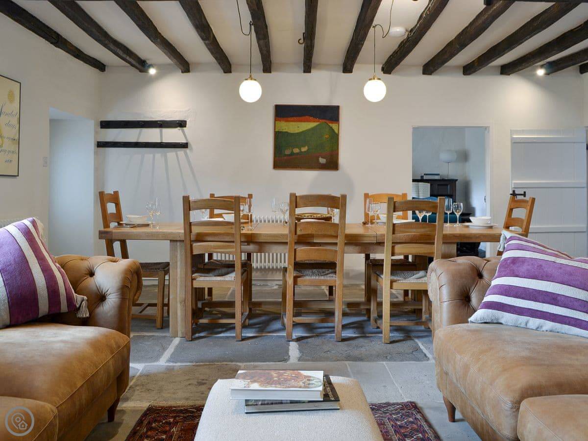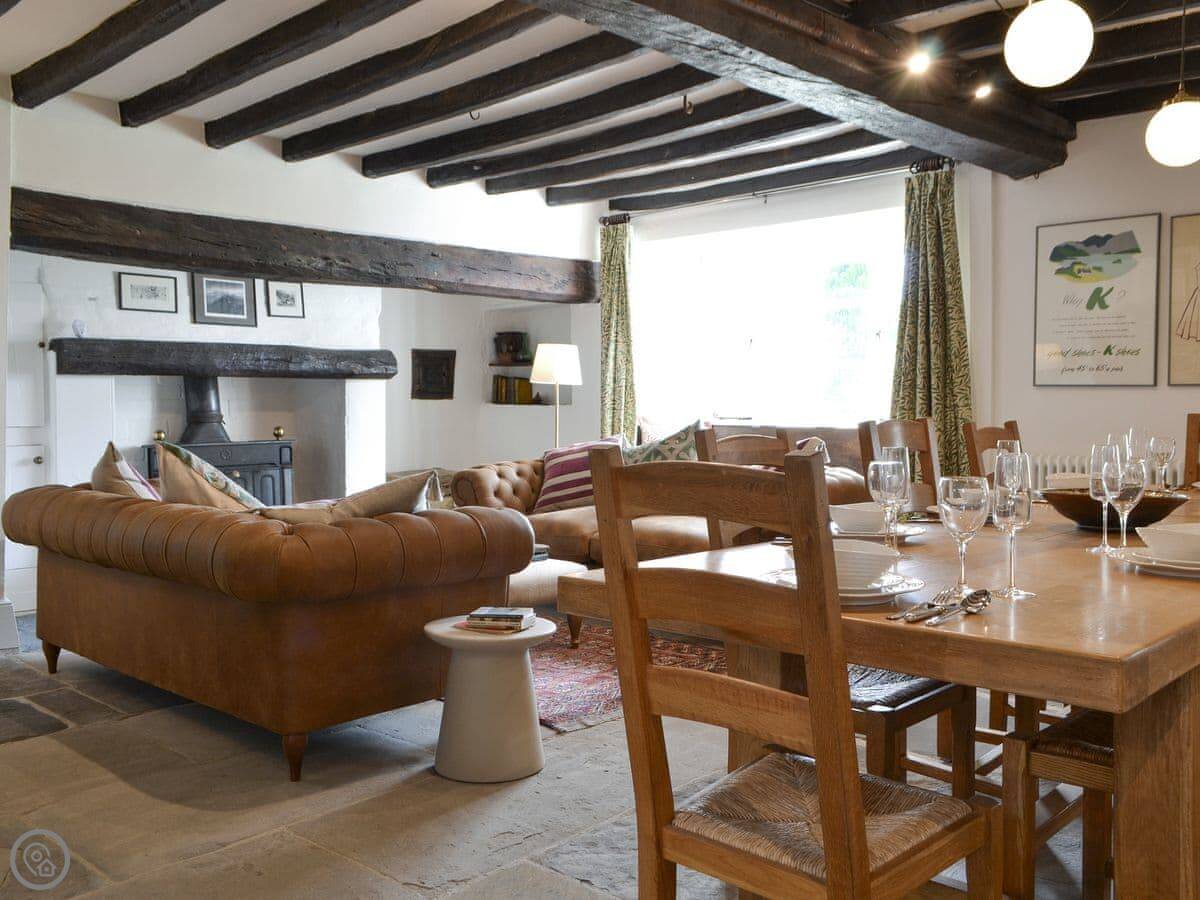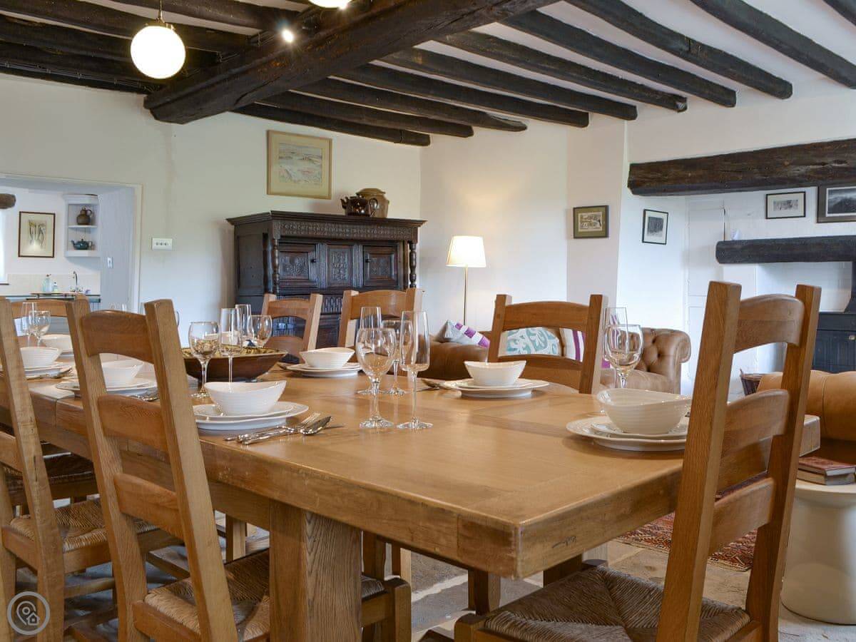 Inside, there are two living rooms, both with wood burners. The kitchen has what you need, and there's a utility room with a washing machine and tumble dryer. Bedding and towels are included. We allow up to two dogs.