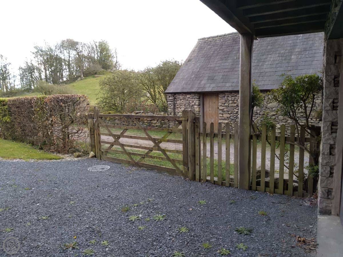 The garden is fully enclosed by a stone wall and hedges. There are three farm gates you can shut, so it's secure for dogs or children. There's a terrace with furniture, good for sitting out when the sun's on it.