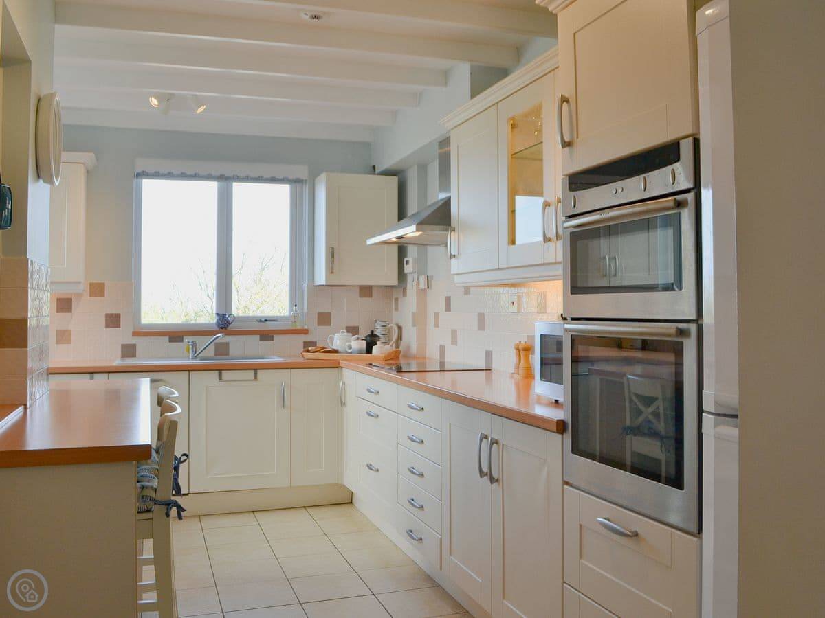 The kitchen leads out to the enclosed patio and garden area with plenty of seating to sit out and enjoy the views – which are absolutely stunning. To the far end of the garden is a raised patio with additional seating providing the perfect setting for a refreshing evening drink.