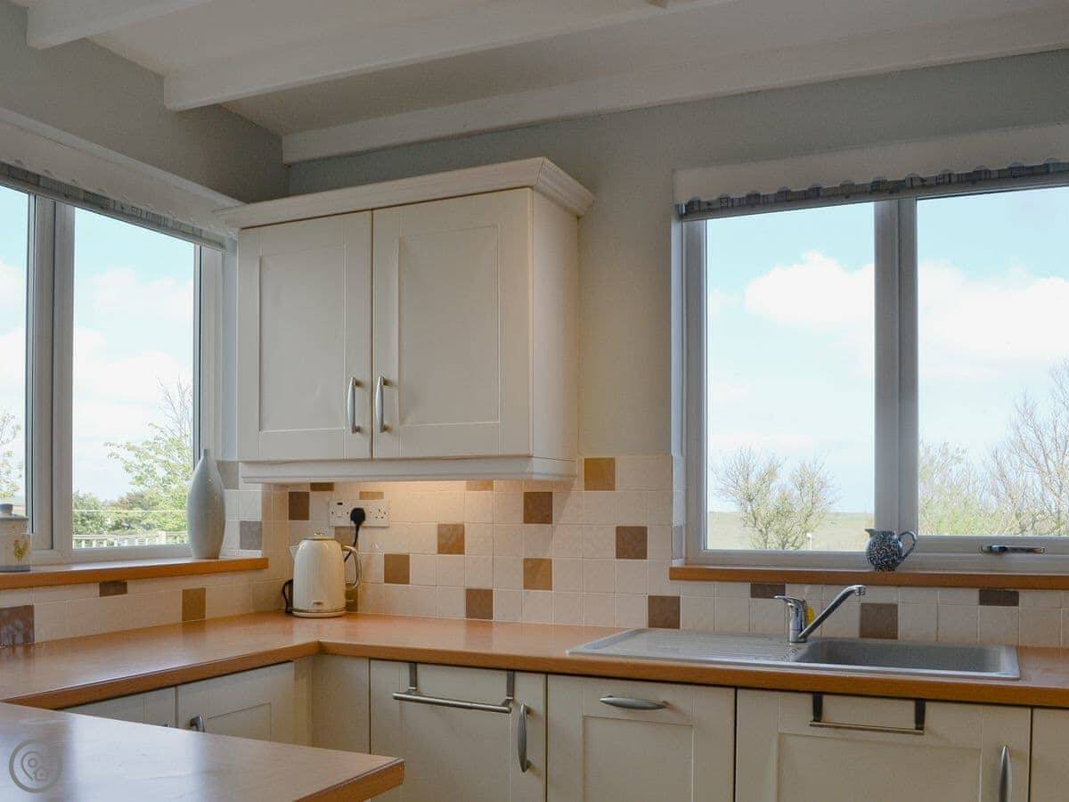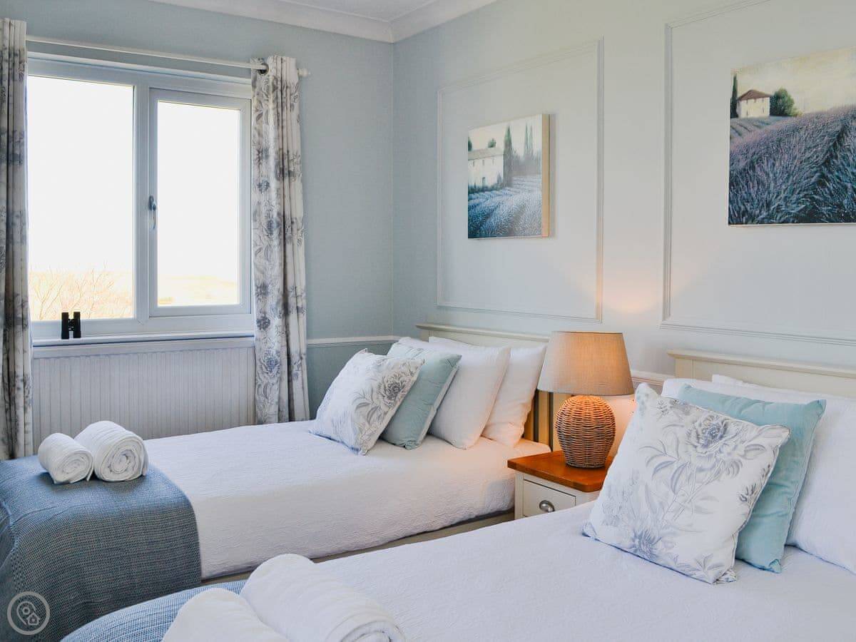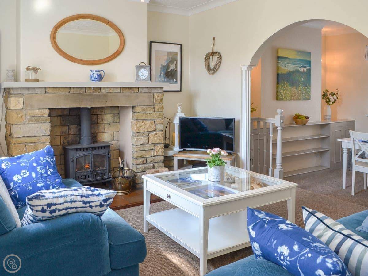 Sat close to the shore near the beautiful unspoilt coastal village of Flamborough, in the East Riding of Yorkshire, is the very pretty mid terraced Beacon Cottage. With views of both the sea and the lighthouse, this former coastguard’s cottage is ideally placed for a family of four or a group of friends to enjoy a coastal holiday. Step inside into the large open plan living area where the traditional wood burner and surrounding sofas take centre stage. Here you can snuggle up in front of the TV and watch your favourite holiday movie after a long day exploring the local area. The kitchen sits to the rear of the cottage and has lovely views across the golf course to the sea beyond. It is well appointed and offers a good range of cooking appliances and facilities so the chef in the group can cook up a delicious home cooked meal to be enjoyed at the large dining table. A separate toilet completes the ground floor accommodation.