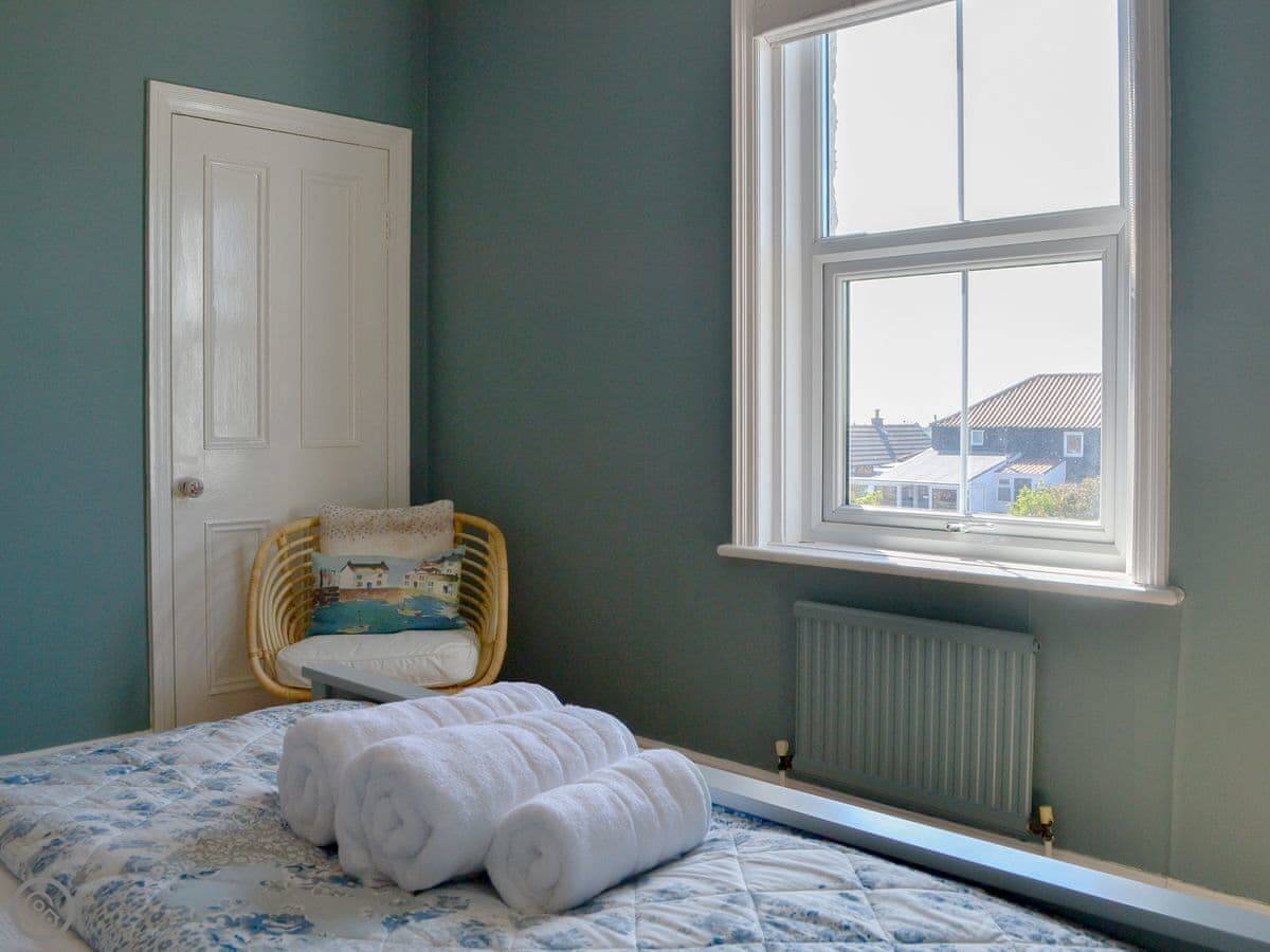 To the first floor are two beautifully presented bedrooms consisting of one twin with stunning sea views and a double room with lighthouse views. The large house bathroom offers both a bath and a shower which is rather quirky with a step down into it and a stable door for modesty .