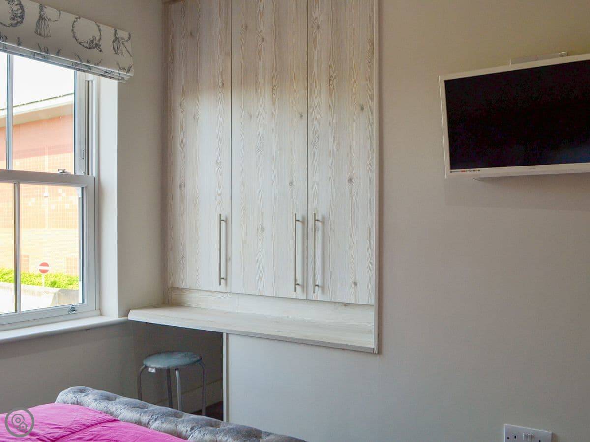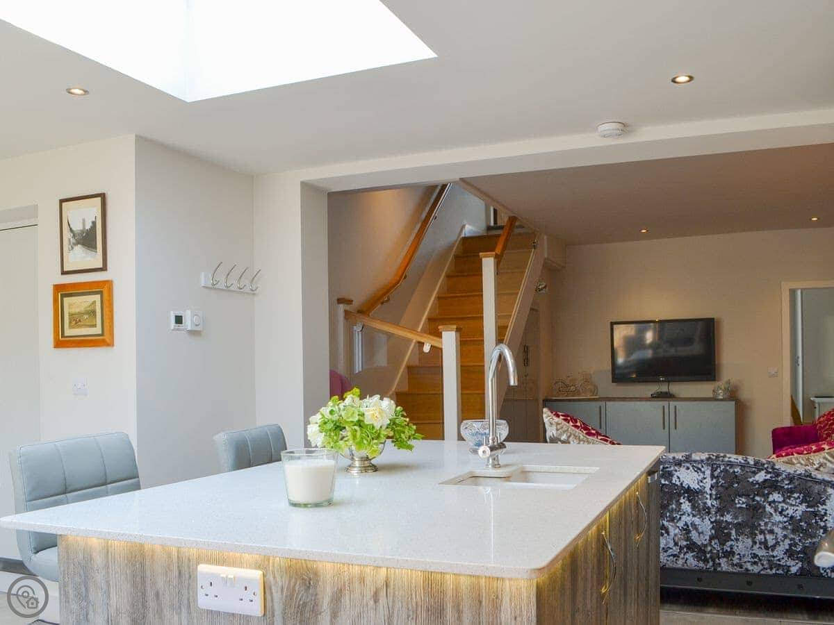 It sleeps six in three bedrooms. Two are upstairs with a shared shower room between them. One is downstairs, off the living area. There's also a main bathroom on the ground floor with a bath and a shower.