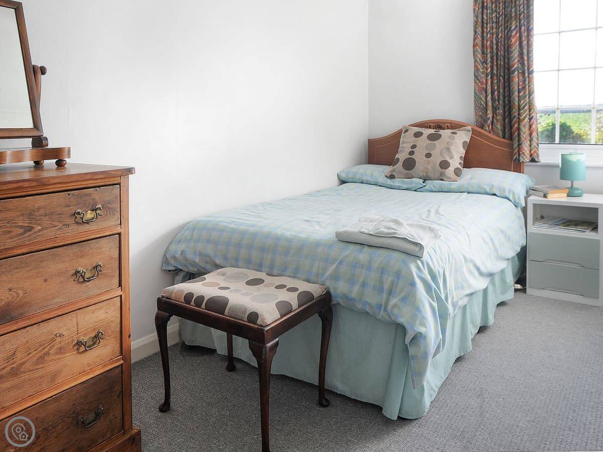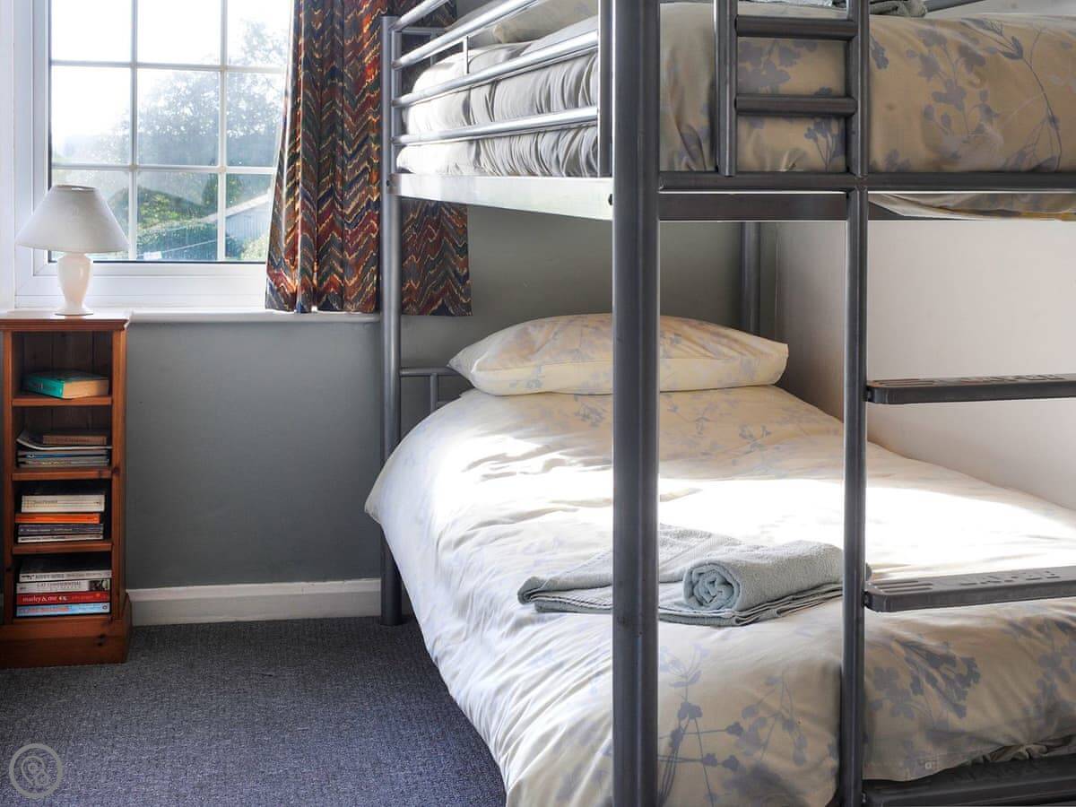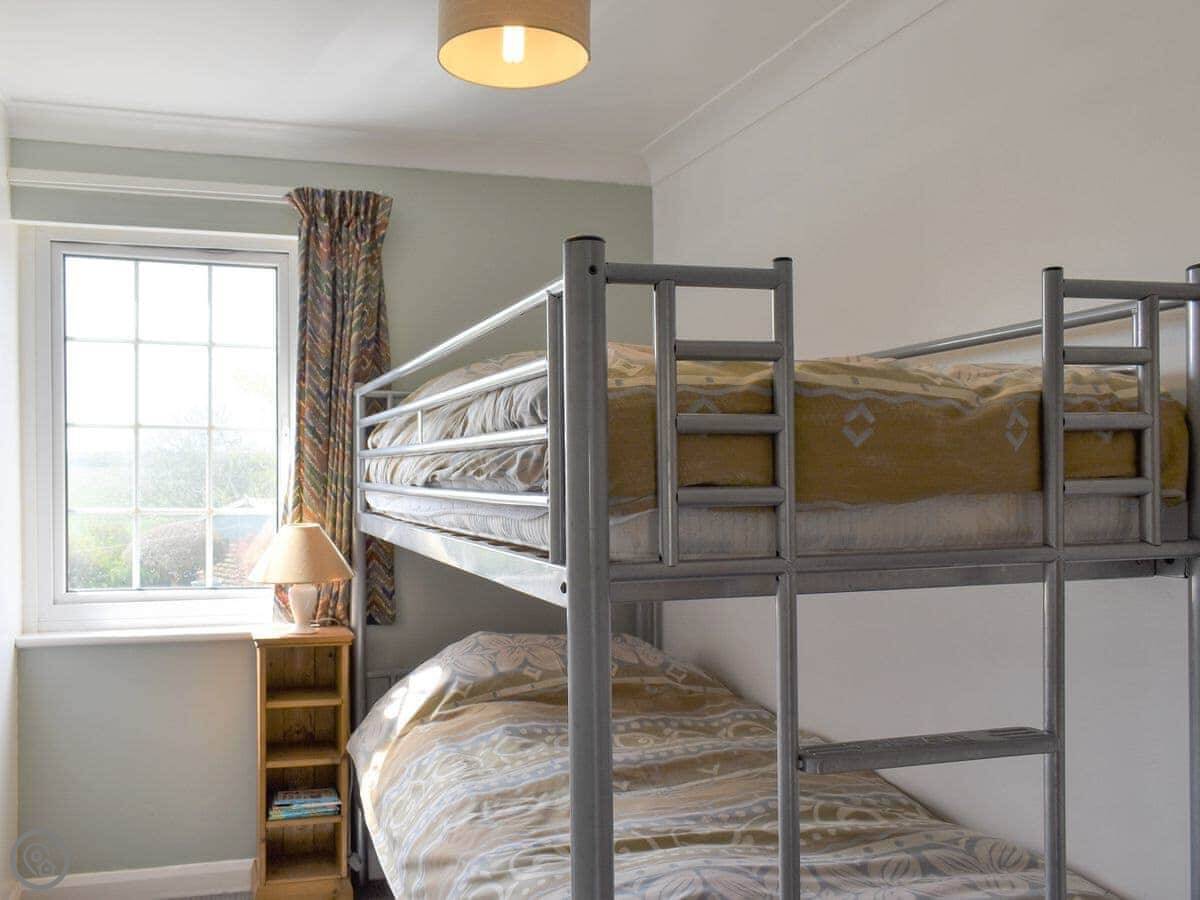 It sleeps five. There are three bedrooms: a double, one with a three-quarter bed, and a room with a bunk bed. One bathroom. It's got a 3 Star rating, so it's clean and comfortable but not luxurious. You can bring up to two dogs.