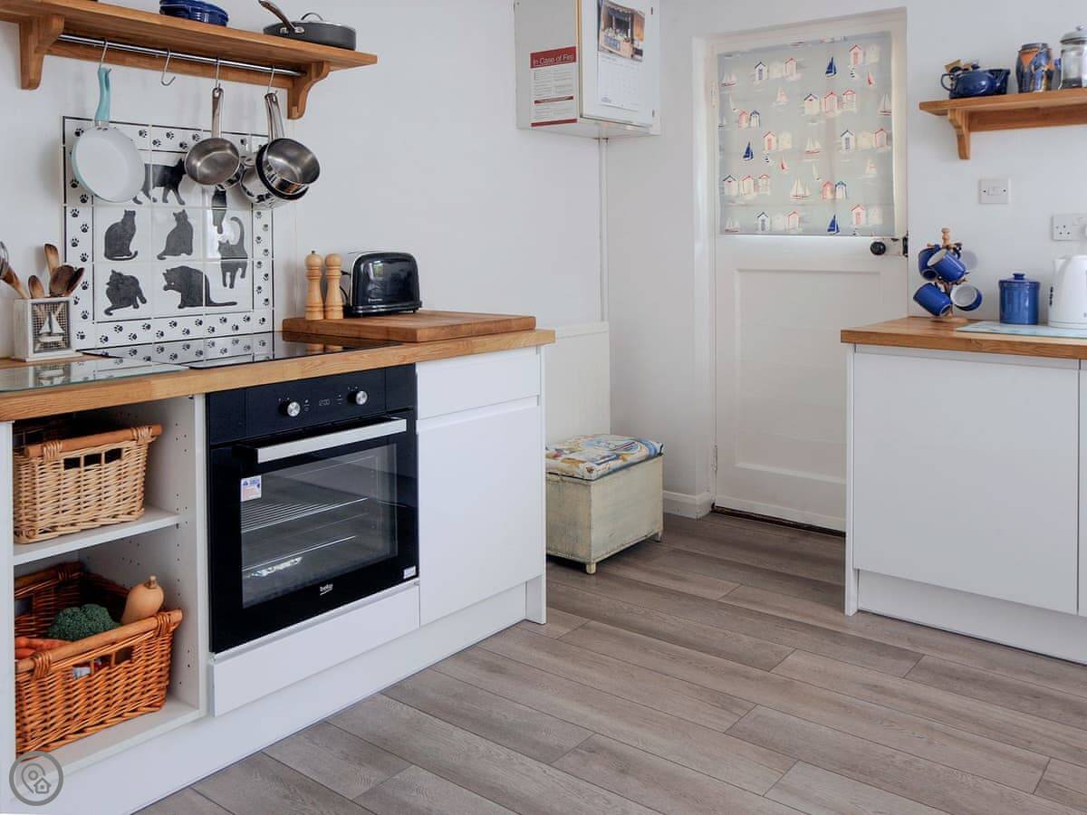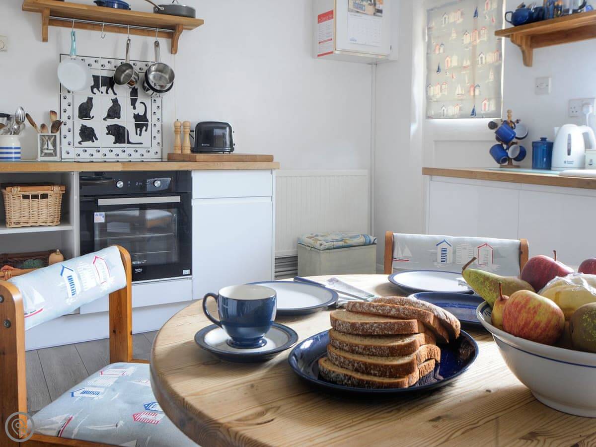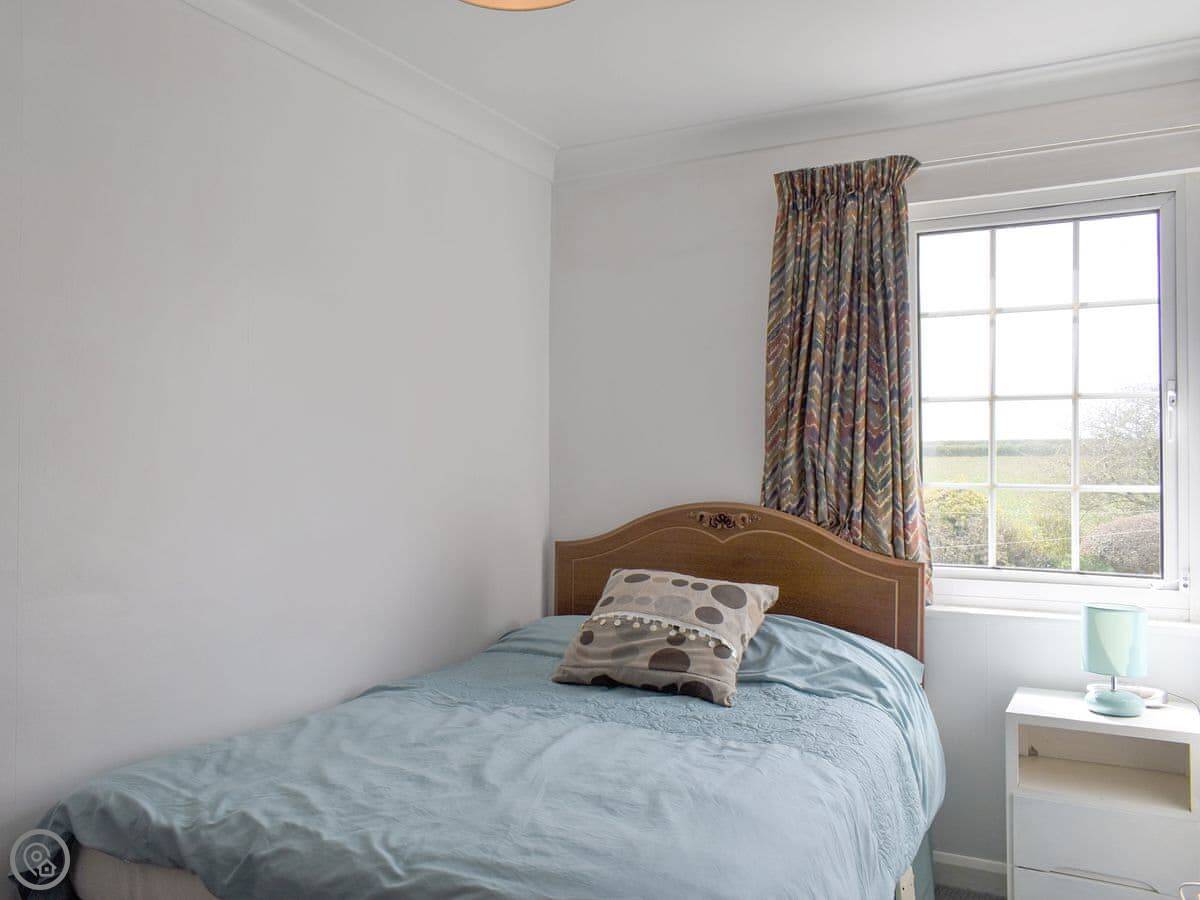 It sleeps five. There are three bedrooms: a double, one with a three-quarter bed, and a room with a bunk bed. One bathroom. It's got a 3 Star rating, so it's clean and comfortable but not luxurious. You can bring up to two dogs.