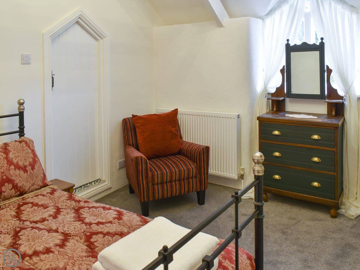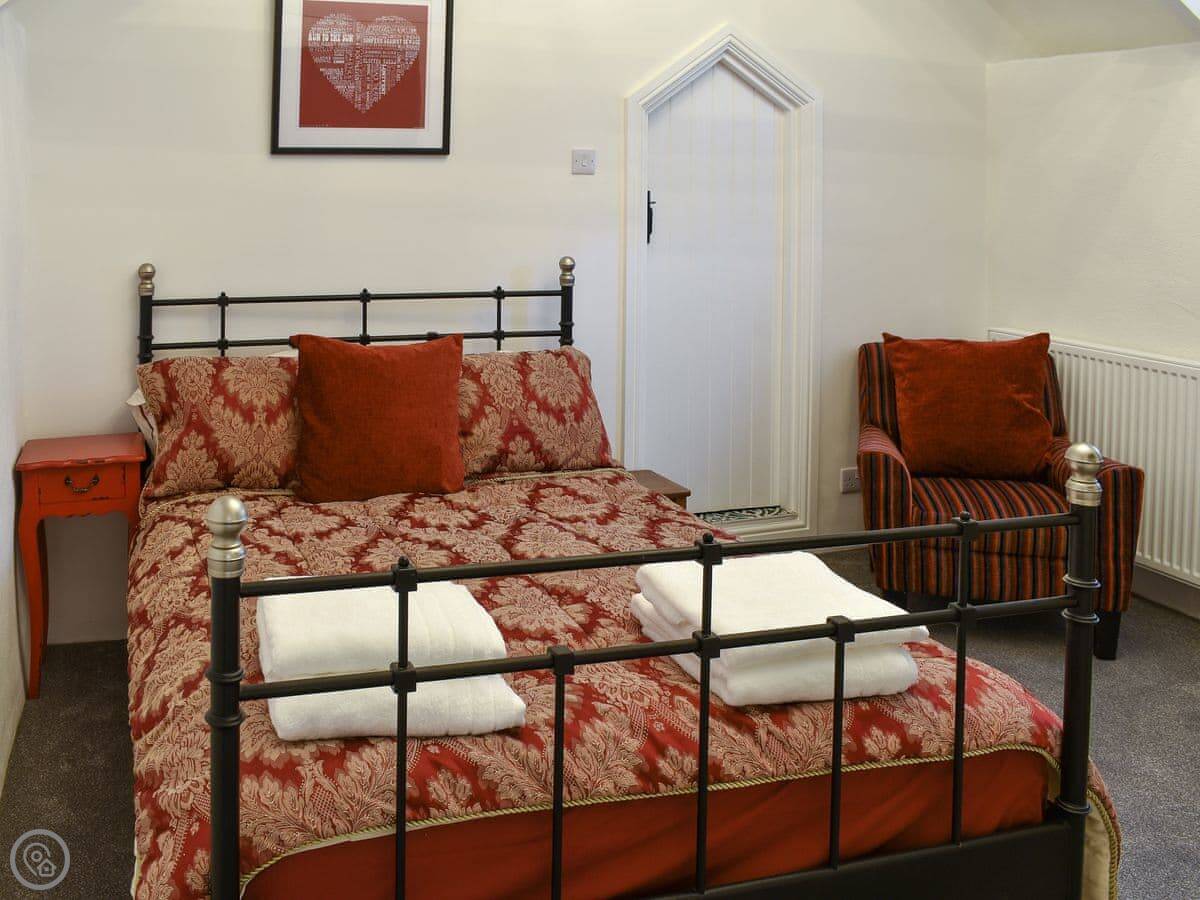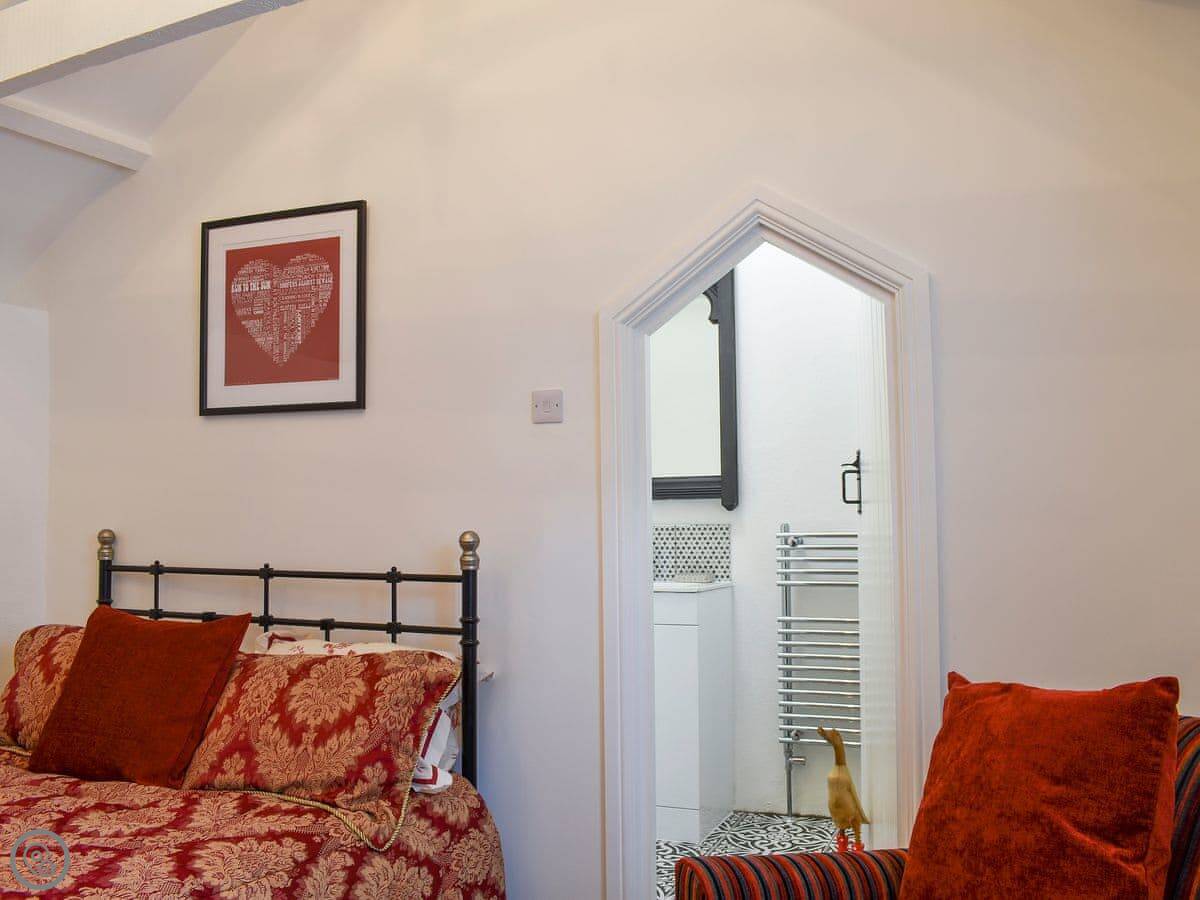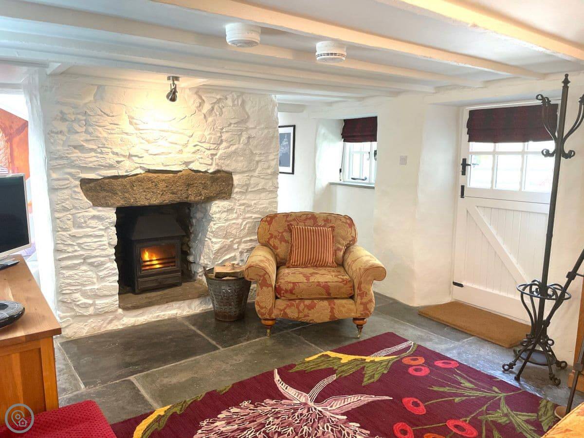 It's a one-bedroom place, just for two people. It's got a 4 Star rating. The living area is compact but there's a wood burner for cooler evenings. There's a private garden space that gets the sun until late.