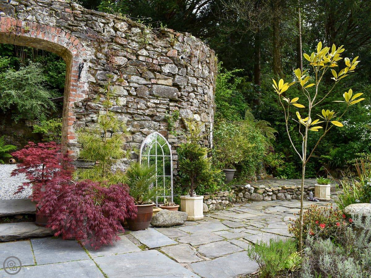 You share a big communal garden and some private woodland with the other property here. There's a giant redwood tree and an old wall with a Medieval water feature. A gate from the garden takes you straight onto the Camel Trail. It's good for walking or cycling.