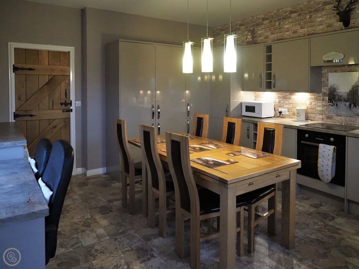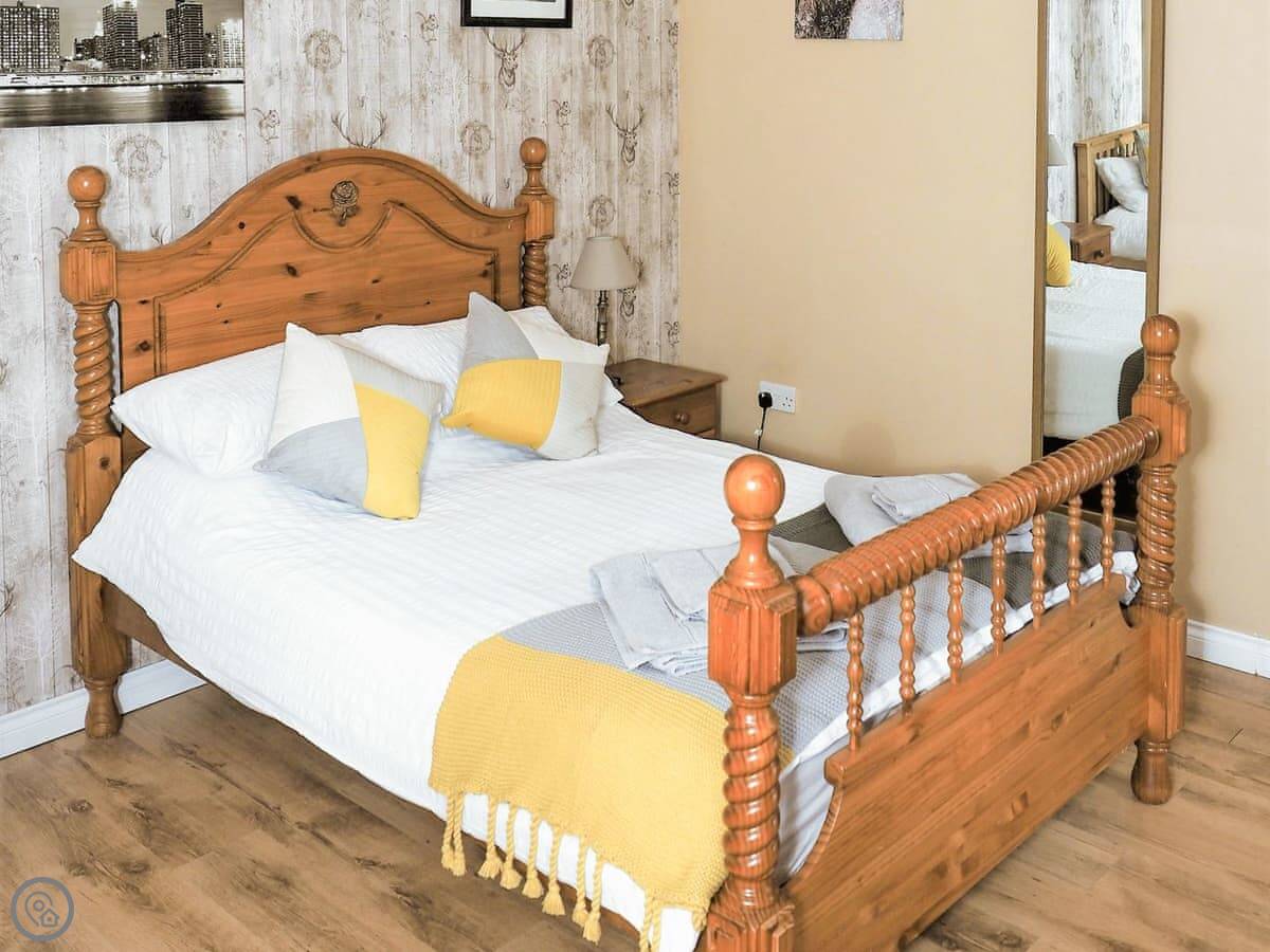 It sleeps seven. Three bedrooms, three bathrooms. One bedroom is downstairs, the other two are upstairs. They've each got their own shower room. It's got a 4 Star rating, so it's well equipped and comfortable.