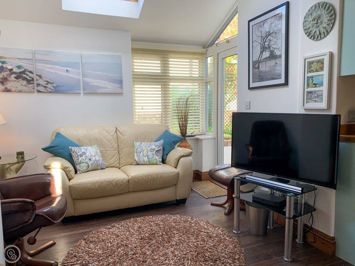 The pub is about 200 yards up the lane. They do food all day. There's a beach and a swimming area in the village as well, which is good on a warm day.