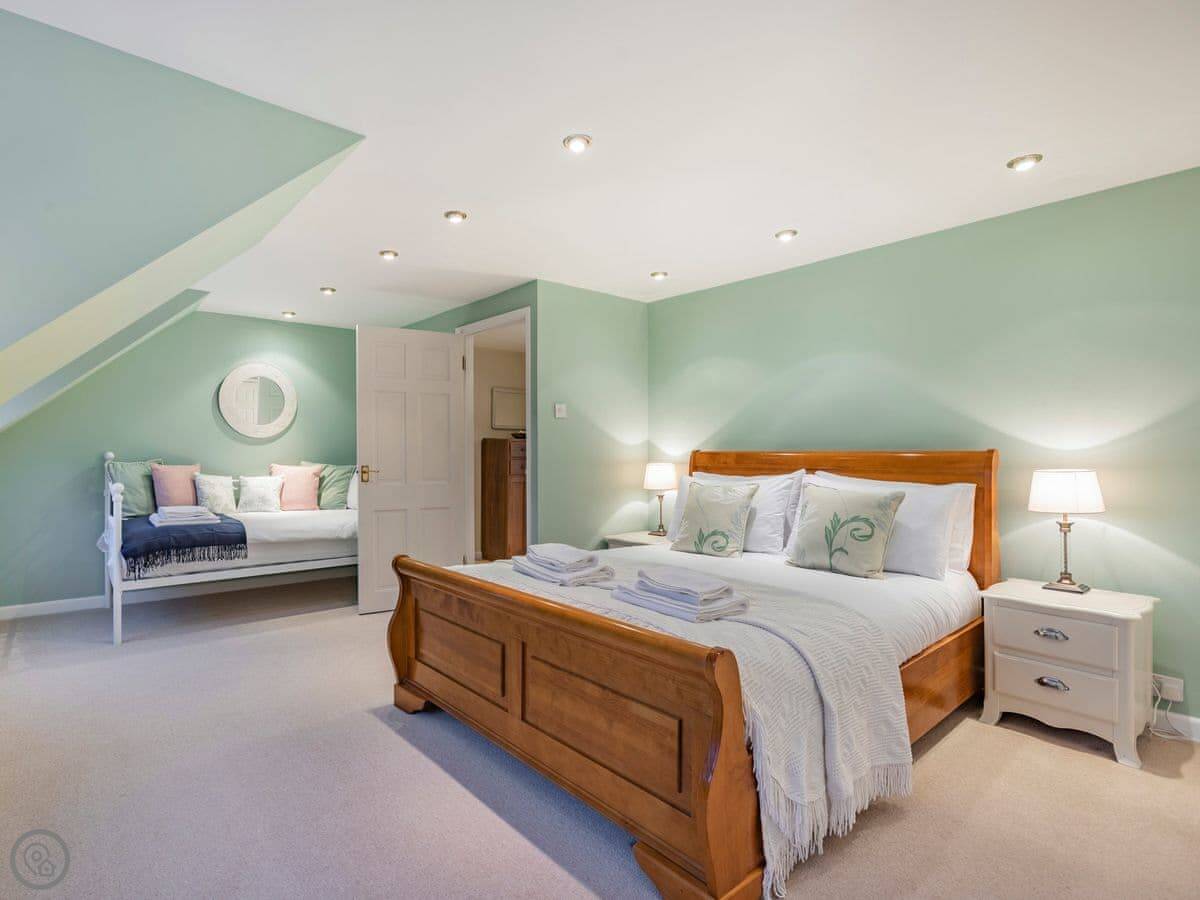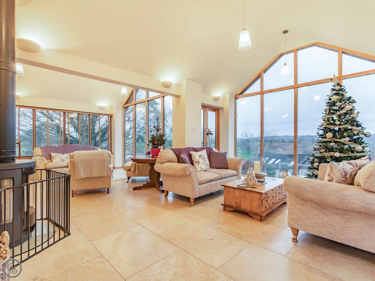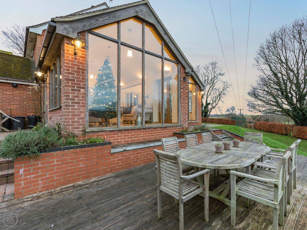 Bloomfield House is rare rural find within Redmarley D’Abitot. This magnificent holiday home sleeps up to 10 guests within 5 bedrooms, 2 bathrooms, 2 reception rooms and an open plan kitchen diner, along with a secure wrap-around garden with uninterrupted views of the Malvern Hills. Bloomfield House is a social holiday home, with the wow factor. It’s great for multi-generational gatherings and the perfect base for families looking for an active UK break as there are lots to explore beyond your wonderful abode. On the ground floor is a well equipped kitchen, dining area and a boot room. There are 2 living rooms, the first is a small and cosy snug and the second is the social hub of the house. Magnificent floor to ceiling windows bring the outside in with enviable views of the Malvern Hills. If you are lucky enough to stay on Bonfire Night, the hills light up, glitter and sparkle all evening, it’s rather unique and special. Don’t worry if it’s a chilly evening either, as the underfloor heating and huge wood burner will keep you all toasty and warm inside. Upstairs you will find 5 sumptuous bedrooms, with the finest linens and deepest mattresses for the perfect night’s sleep. No fighting over the bathrooms either with two family bathrooms on hand.