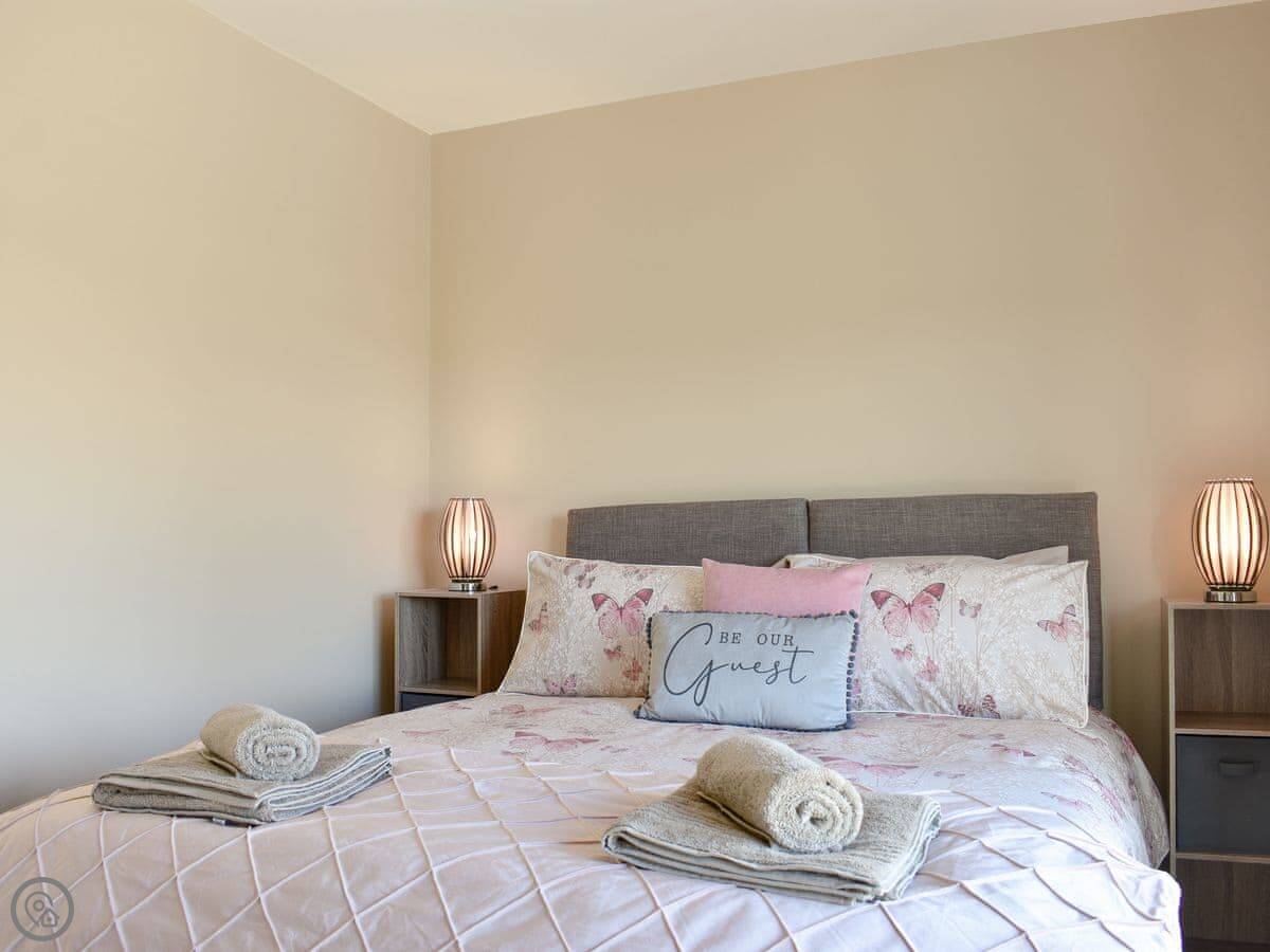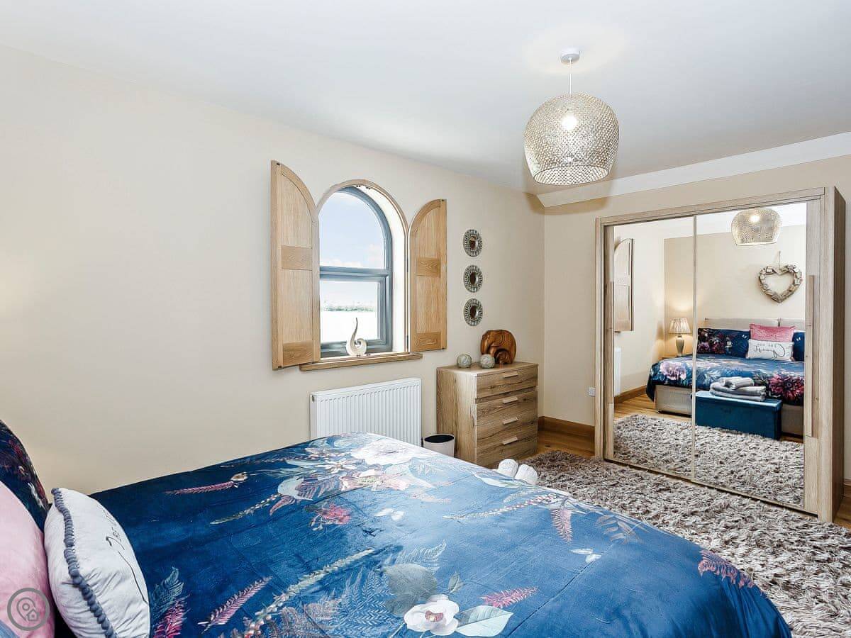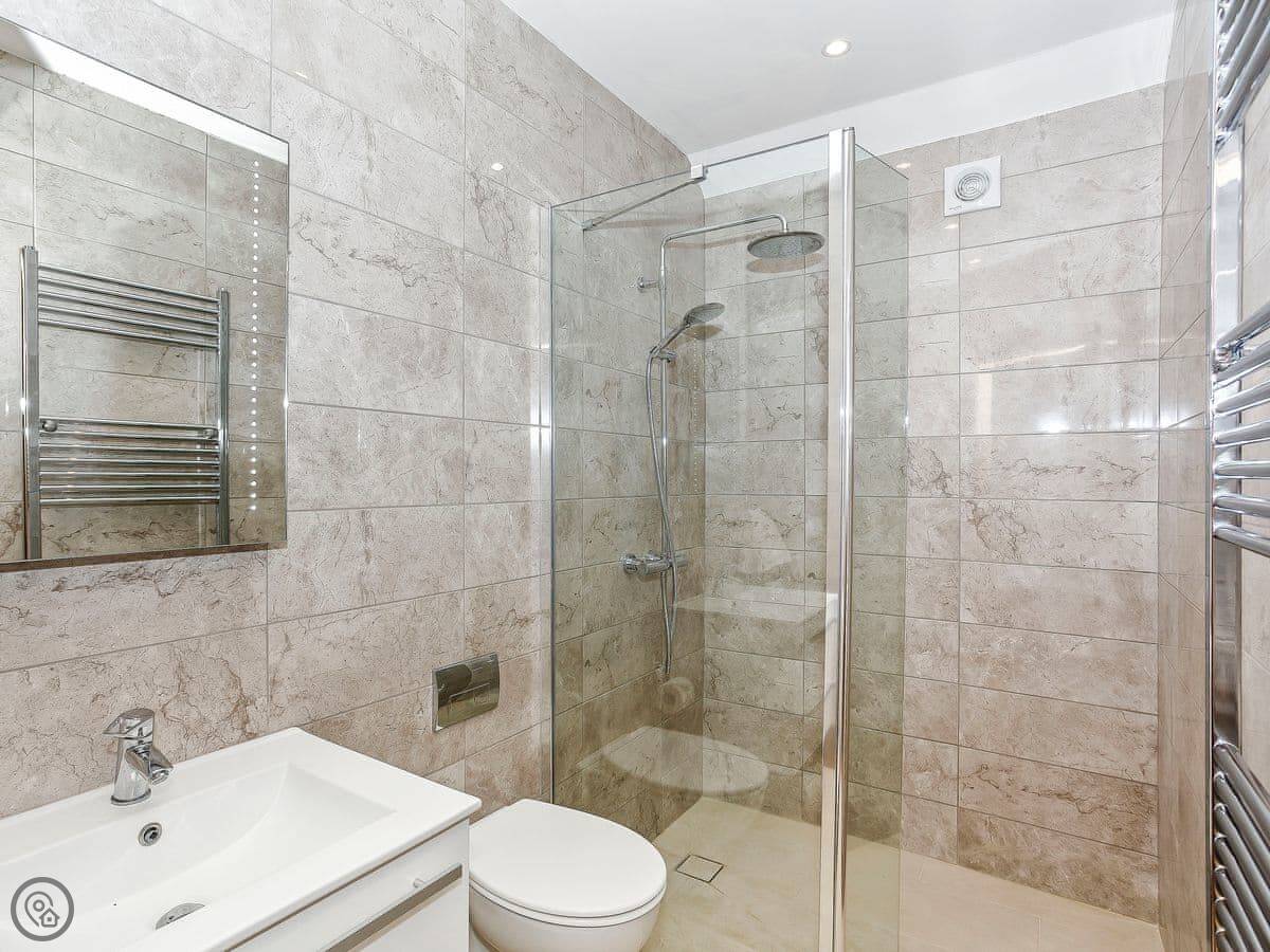 Upstairs are three spacious bedrooms with flexible sleeping options available on request. All furnished with super comfortable beds and high-quality bed linen, ensuring a good night’s sleep. The Master Bedroom with super kingsize zip and link bed has a large en-suite shower room with walk-in rainfall style shower and beautiful views from its windows. Bedroom two a kingsize bed which again can be twin on request and bedroom three has a 4ft bed which is only suitable for one person; both bedrooms with French doors opening to a Juliet balcony, allowing floor to ceiling views across the open countryside. There is a separate bathroom with P-Shaped bath, double shower over and stylish basin in vanity unit.