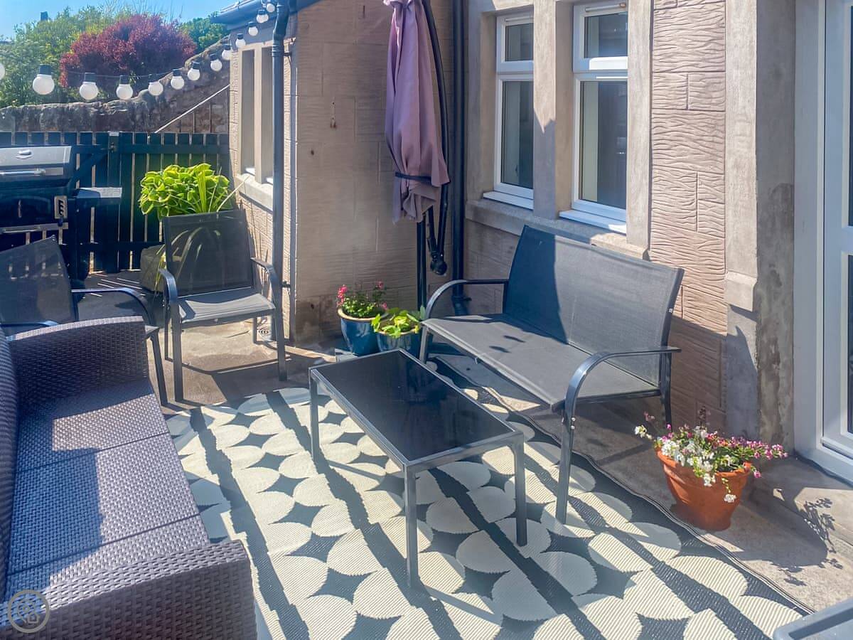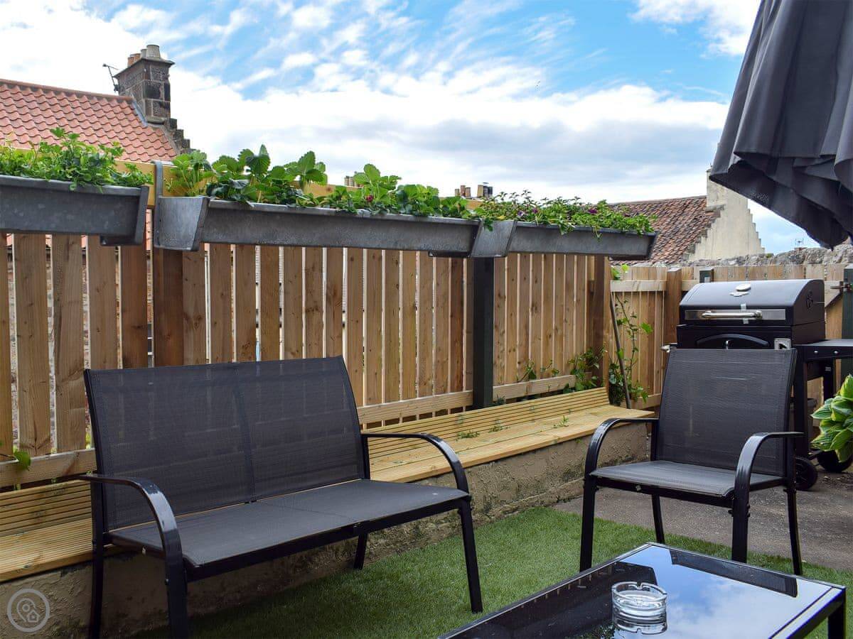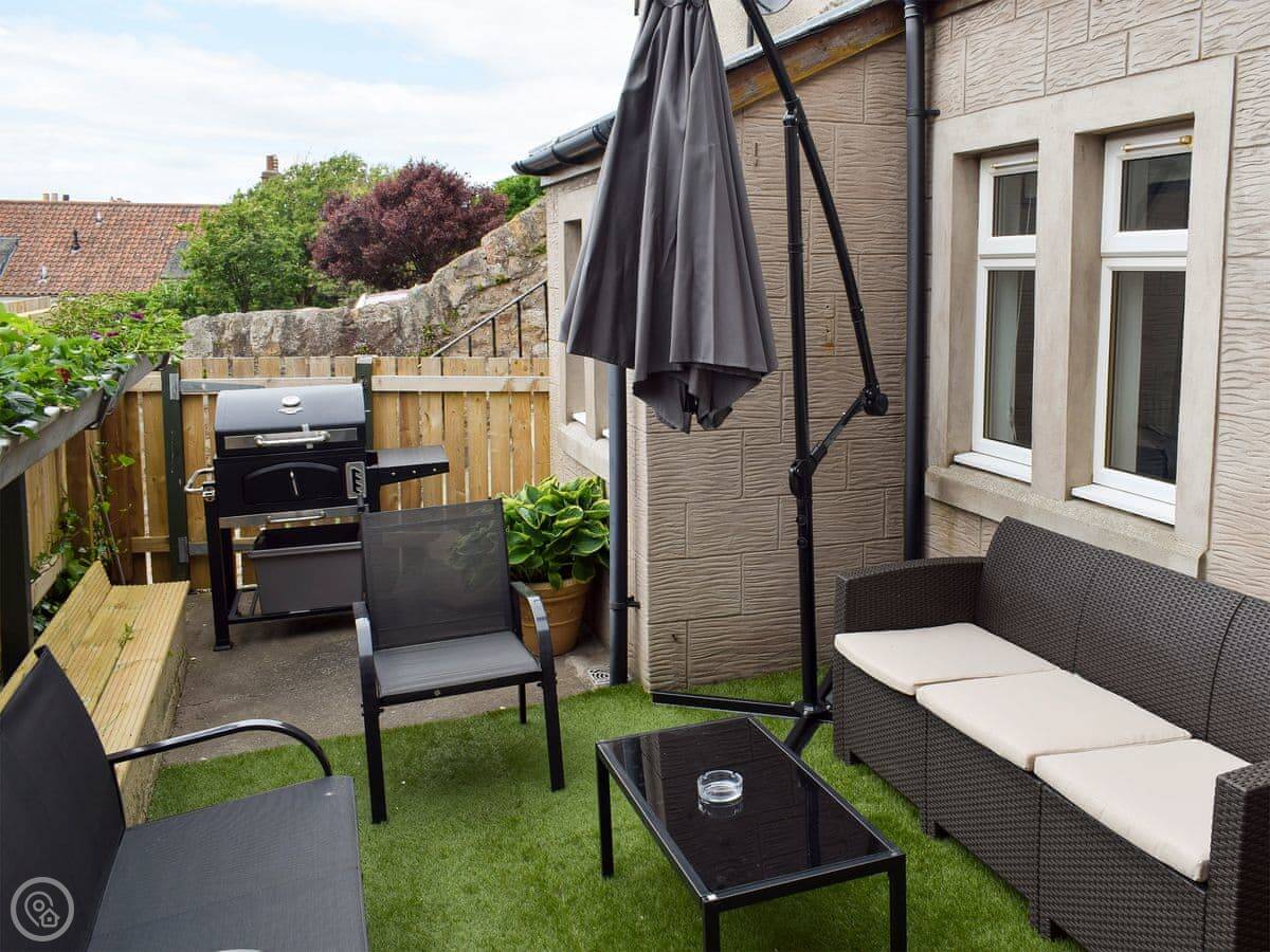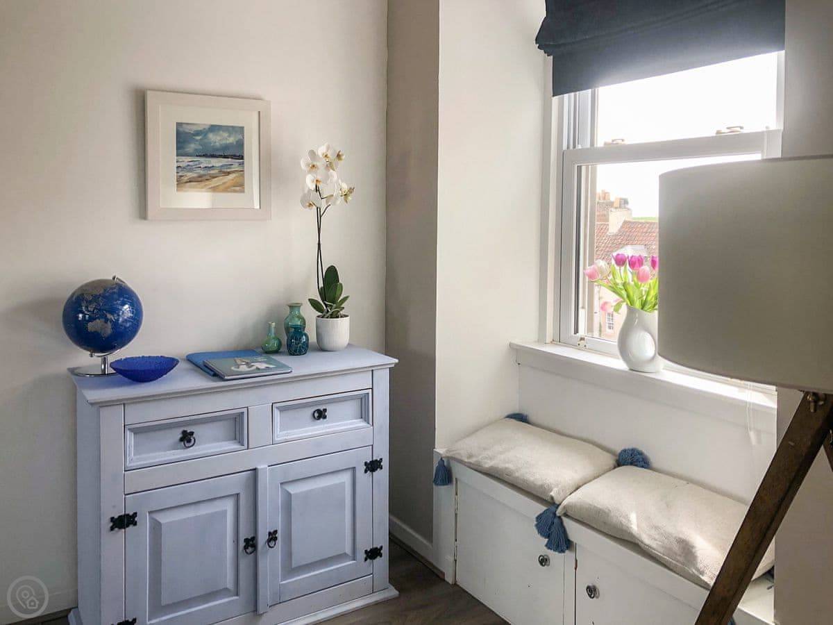 The Hideaway is in Anstruther, up the hill from the harbour. It's an end-terrace house. You get parking right outside on the street, which is handy.