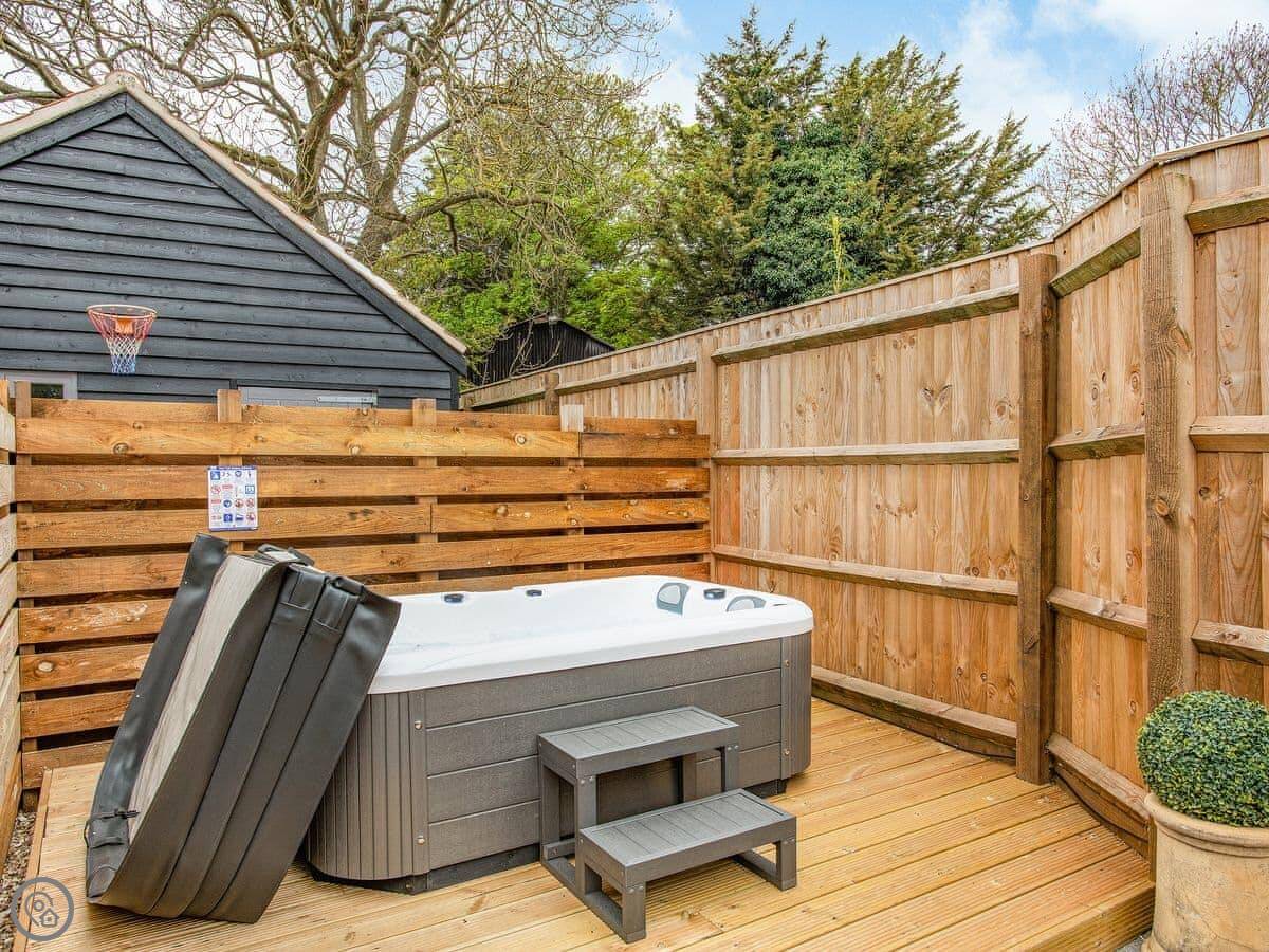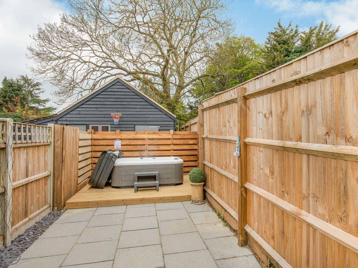 Outside is a private courtyard garden. It's enclosed. There's a hot tub out there. You can bring one dog.