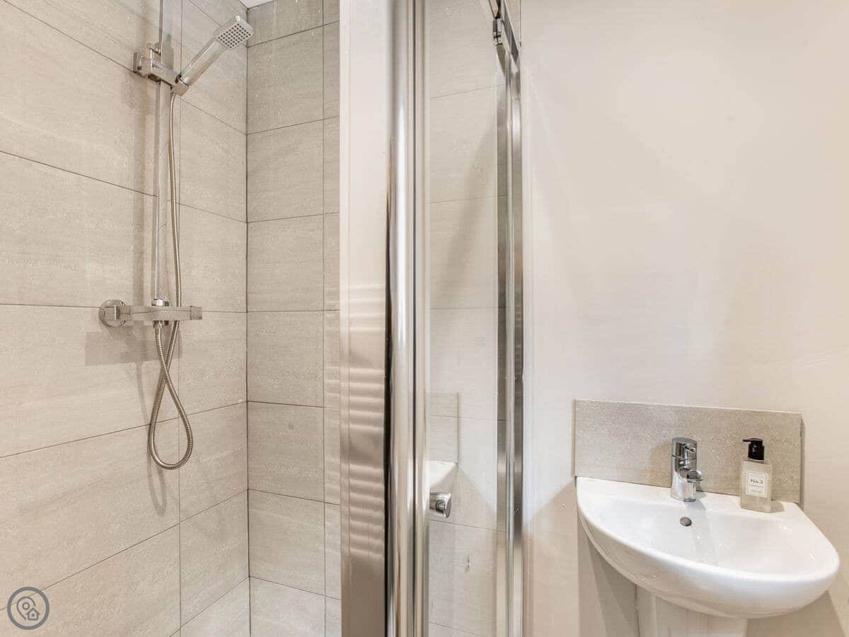 It's got a 4 Star rating, so it's a comfortable and well-equipped place. There's a wood burner for the winter and the main room is open plan. The bathroom has a walk-in shower. It's wheelchair accessible at the entrance.