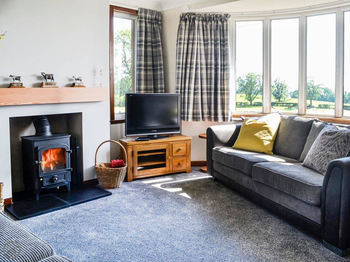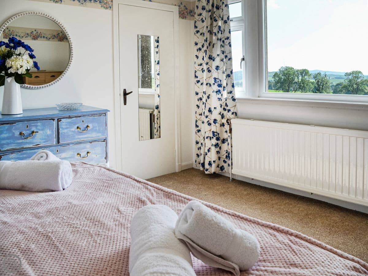 Woodend Farmhouse is on the edge of Haugh of Urr, in Dumfriesshire. It's a detached farmhouse, so you're on your own out here. The garden is big and enclosed. The views are over fields.