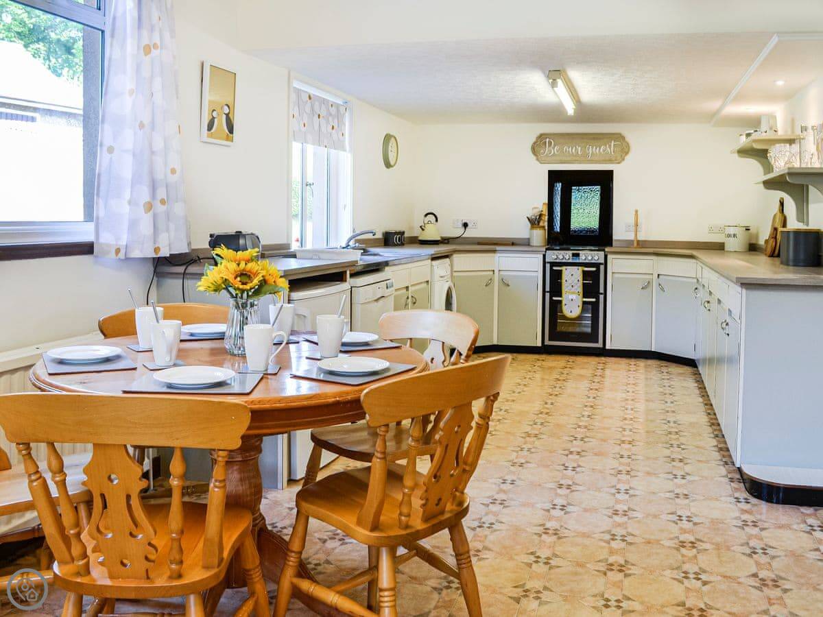 It sleeps eight people in four bedrooms. There are two bathrooms. It's got a 4 Star rating. We refurbished it in 2021, so it's in good order. The rooms are spacious. The kitchen is large. The dining room and sitting room both have big bay windows to look out of.