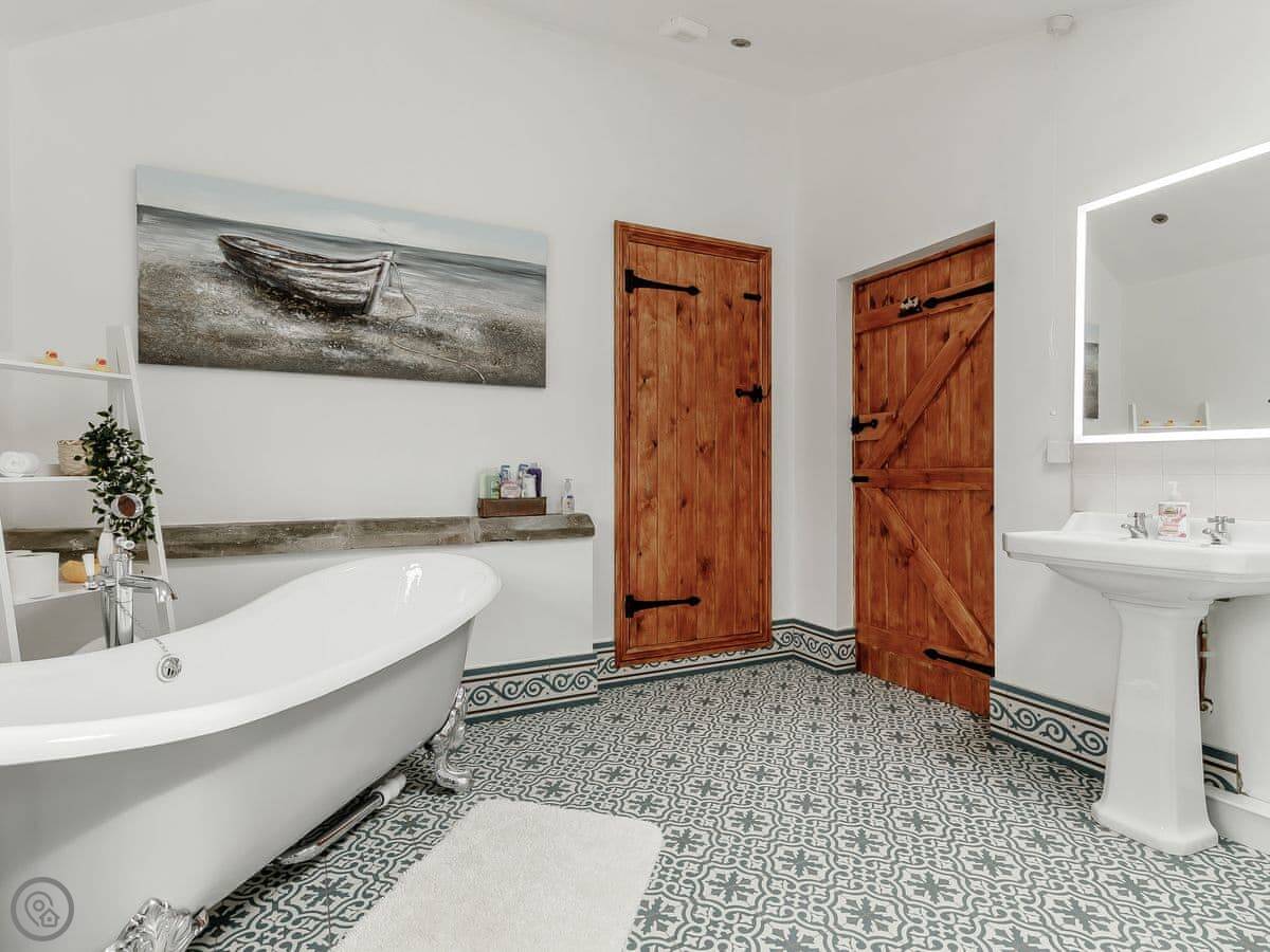 The property comprises of a large living room with a cosy wood burner for those cooler evenings. Another smaller living room with wood burner. There is a large dining room which has stunning, panoramic views of the beautiful Carmarthenshire countryside. There is a beautiful country kitchen/dining room, Rayburn and a welcoming spacious porch with laundry facilities. Upstairs there are four spacious bedrooms, three are kingsize and then a twin room, all with country décor. There is also a quaint bathroom upstairs with a spacious walk-in shower. The large landing compromises a cosy sitting area where you can sit and read your favourite book. Downstairs we have a wheelchair accessible double bedroom which is next to a luxurious spacious bathroom with roll-top bath.