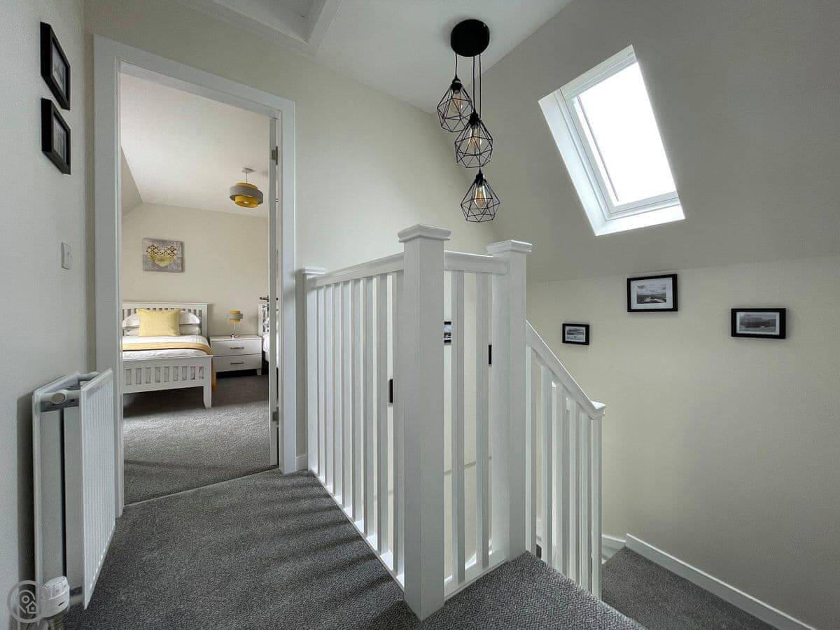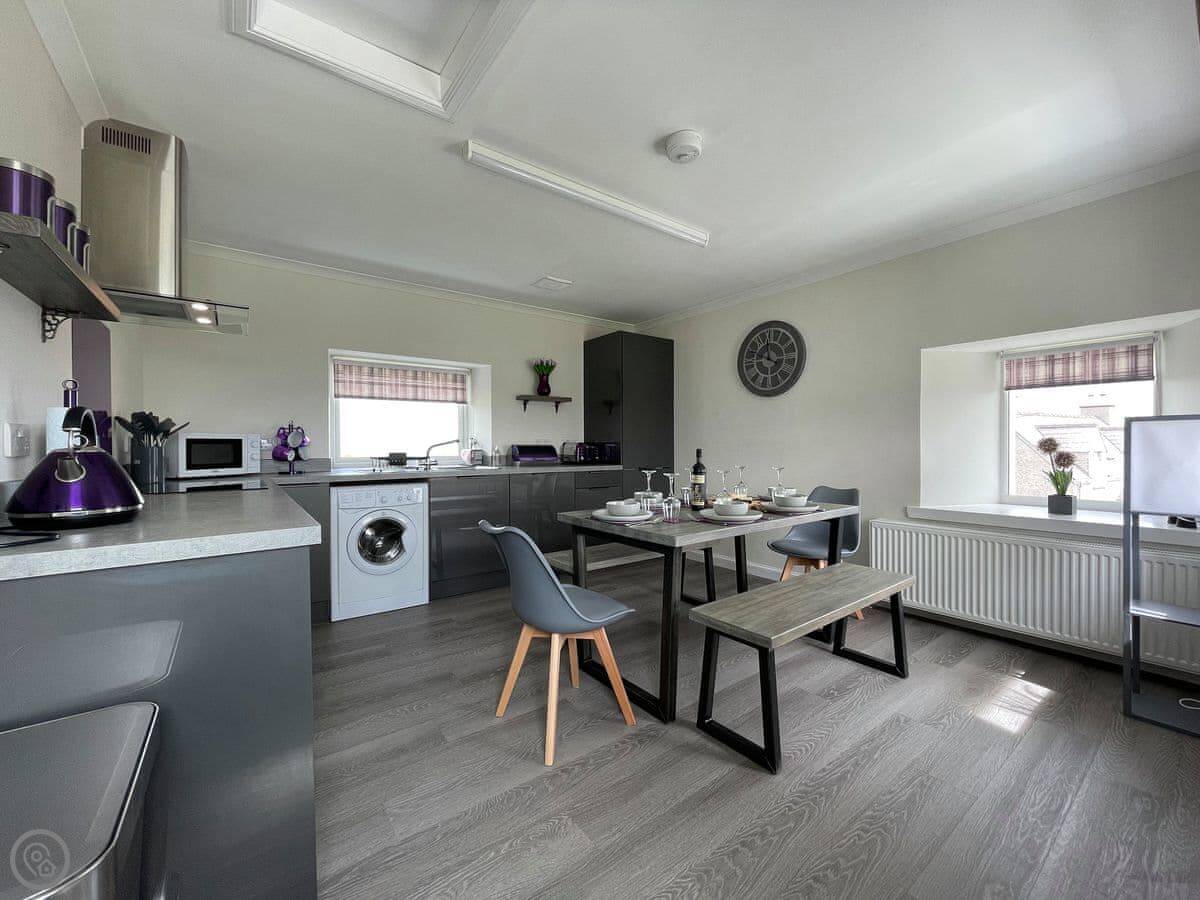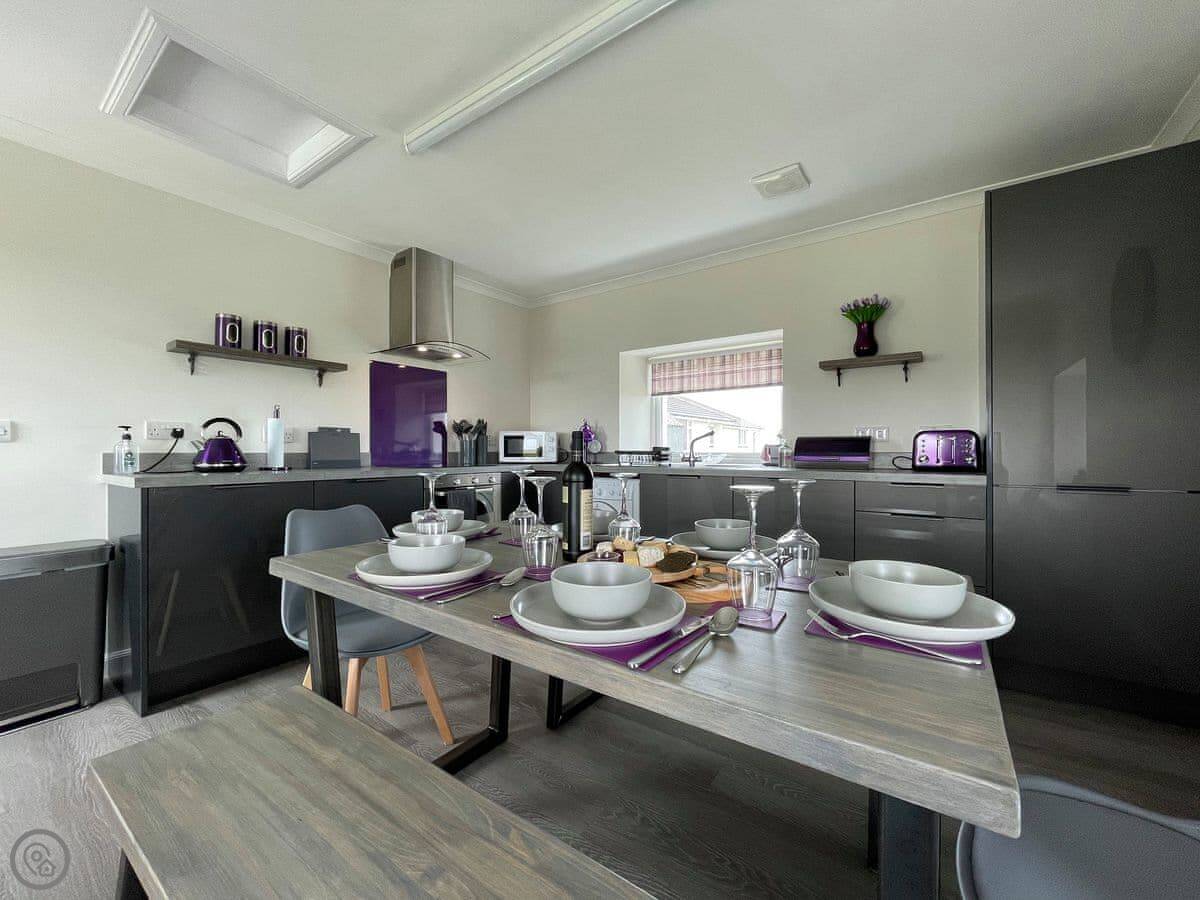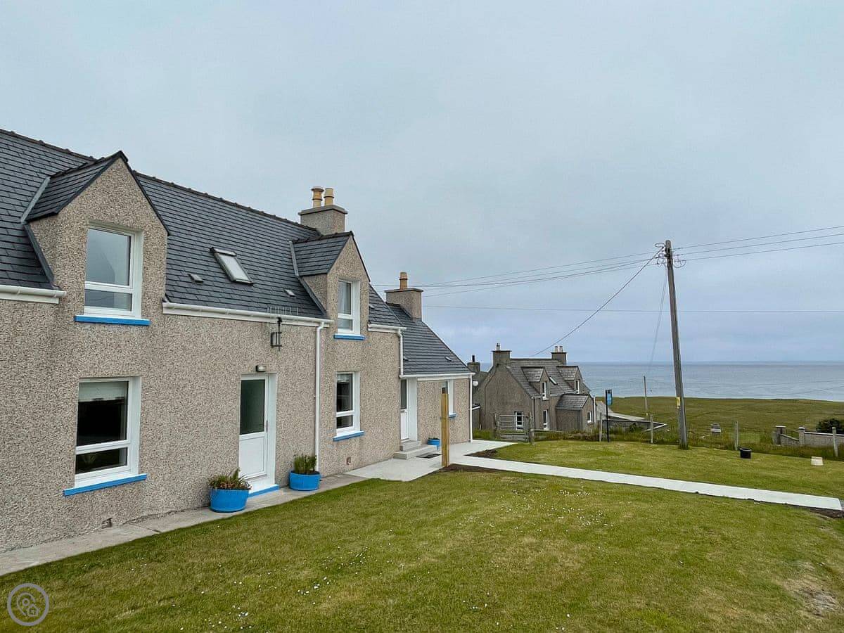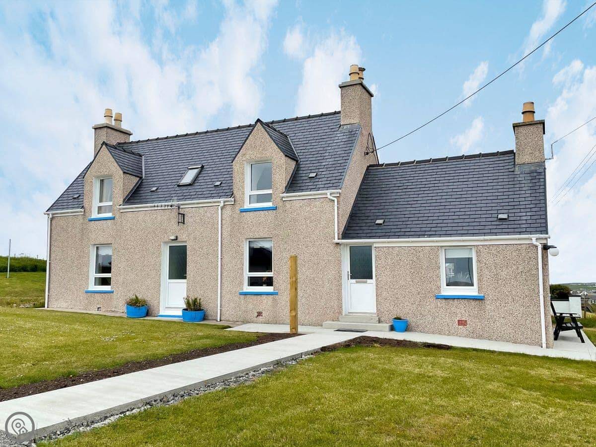 The owners have created a wonderful holiday home in Adabrock for up to six people, an old croft house dating from the turn of the century that has been brilliantly renovated and modernised. Any family would love staying in this house for a week or two. The owner is a Harris Tweed weaver, who would be happy to invite the guests into her loomshed to see how it all works. The shed is based in the picturesque village of Port of Ness, where the guests will be able to take advantage of going to the edge of the croft and taking beautiful photos of the beach below. Port of Ness is also featured in the famous book “The Blackhouse” by Peter May. The views from the house are incredible; from the front there are views across The Minch to the mainland of Scotland. The mountains of Assynt and also Cape Wrath in the far north west of mainland Scotland are visible. Out the back of the house there are views across the Ness community to the port and also to the lighthouse. It’s a truly spectacular location. In the property, the ground floor offers spacious accommodation, the kitchen/dining room is a fabulous, triple-aspect space with modern appliances. There is a lovely, comfortable living room with a wood burner and wall-mounted Smart TV. Also on the ground floor is the master bedroom and the fantastic family shower room. On the first floor there are two further spacious bedrooms, one a double, the other a twin, and there is a convenient first floor cloakroom. Outside the property there is seating to enjoy the location and a lot of space for the children to run around and let off some steam.