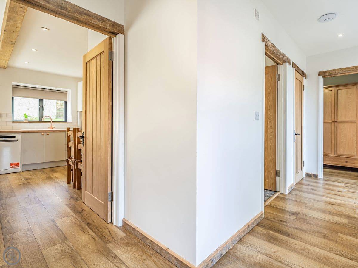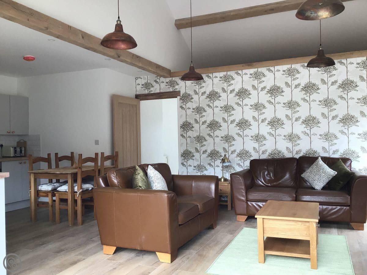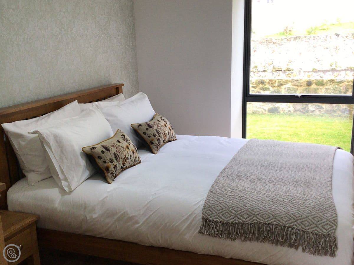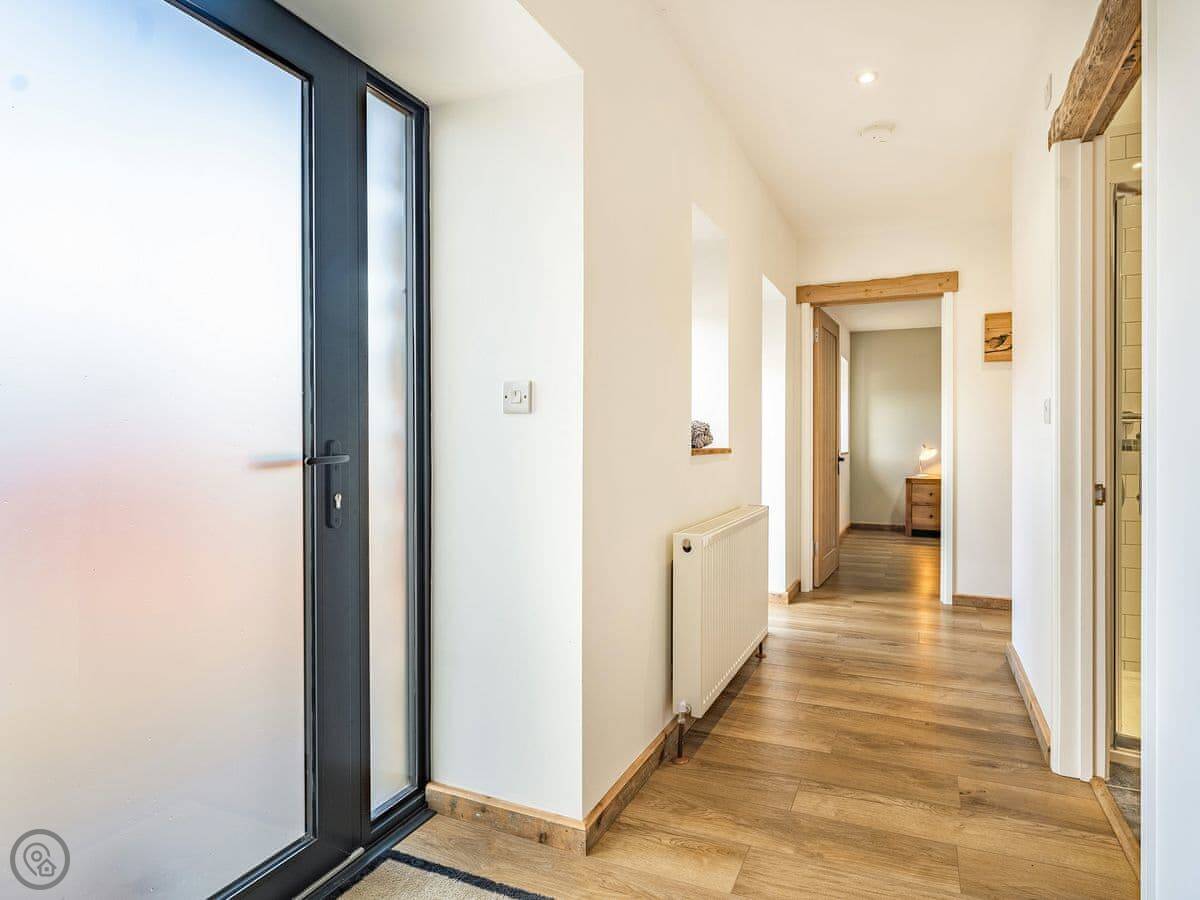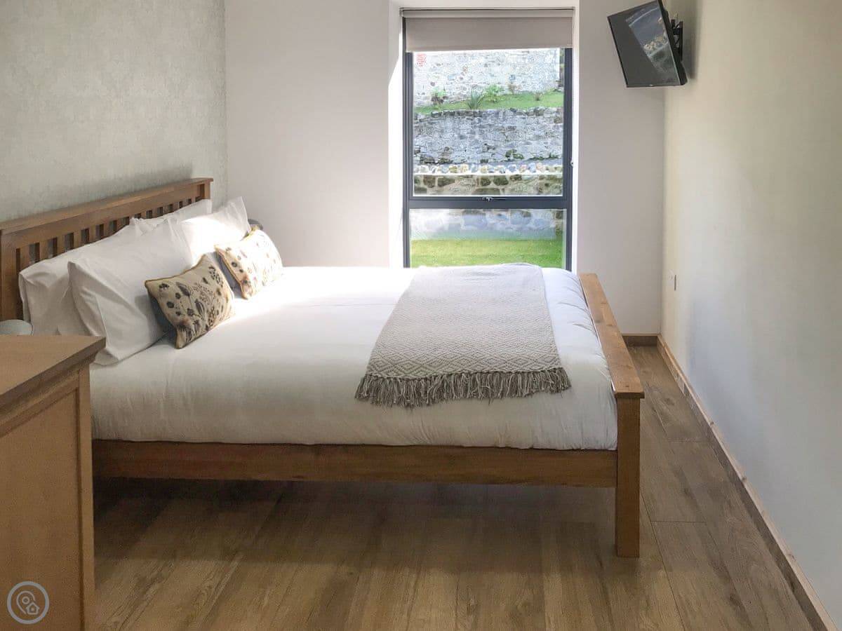 On the ground floor you’ll find an open plan living room dining and kitchen space where you can cook up those home-cooked recipes and then gather the family for an evening in front of the Smart TV or exit out of the French doors into the enclosed rear garden which stretches across the back of the property. The master bedroom has a king size bed and floor to ceiling window taking full advantage of the rural view to the front aspect, the second bedroom is a twin room with two single 3ft beds.