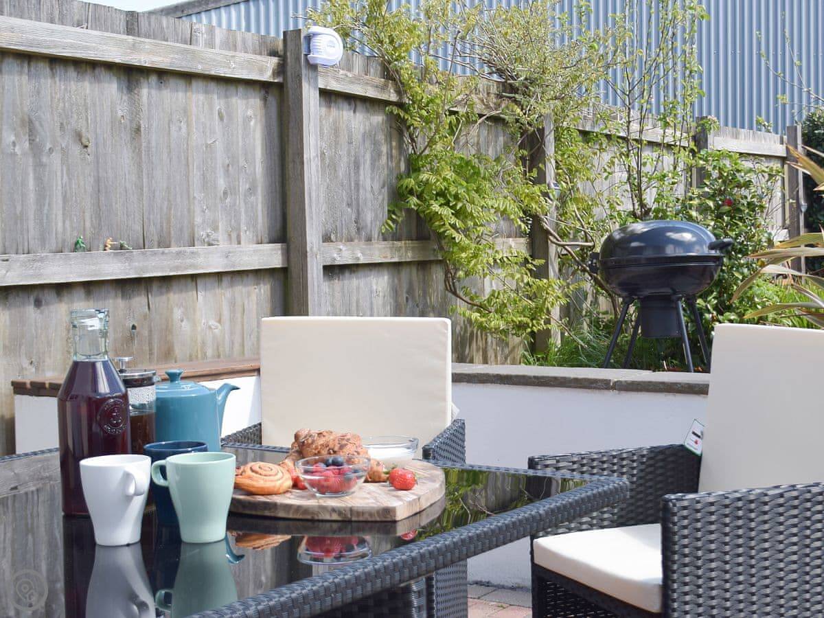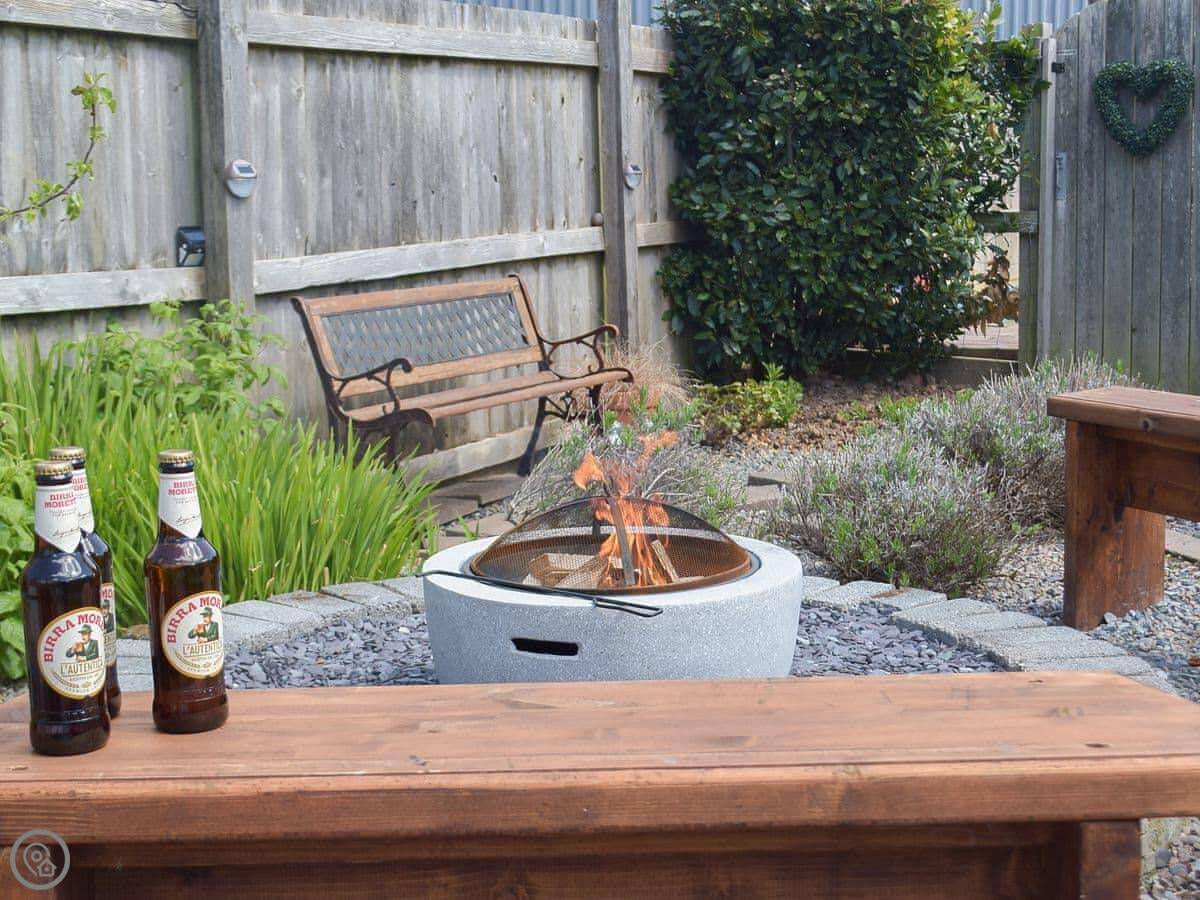 The cottage sleeps six across three bedrooms. There's one bathroom. It has a 4 Star rating. The garden is enclosed and gets the sun, facing south. There's a patio, a bit of lawn, a barbecue, and a firepit. You get the whole garden to yourselves.