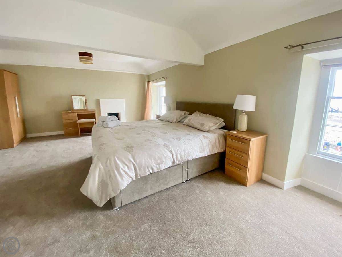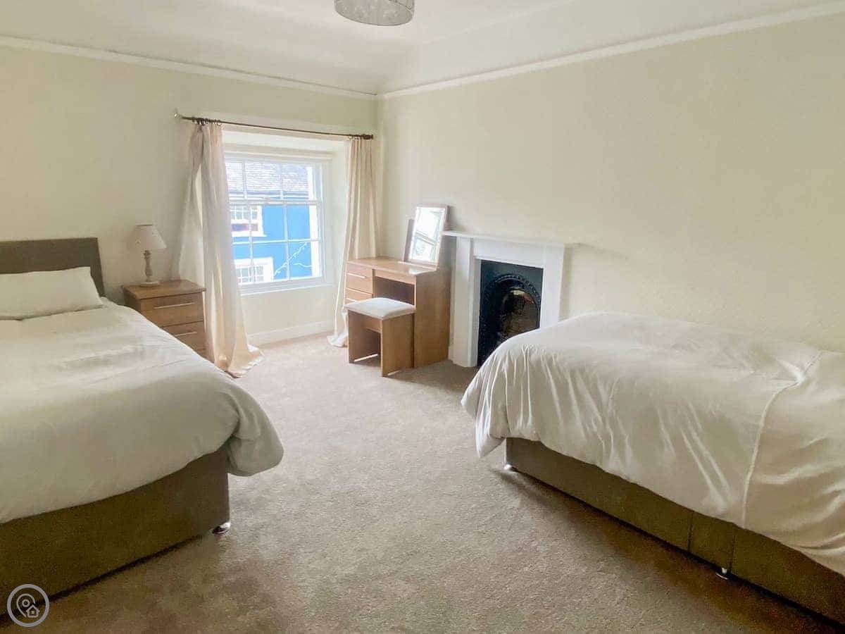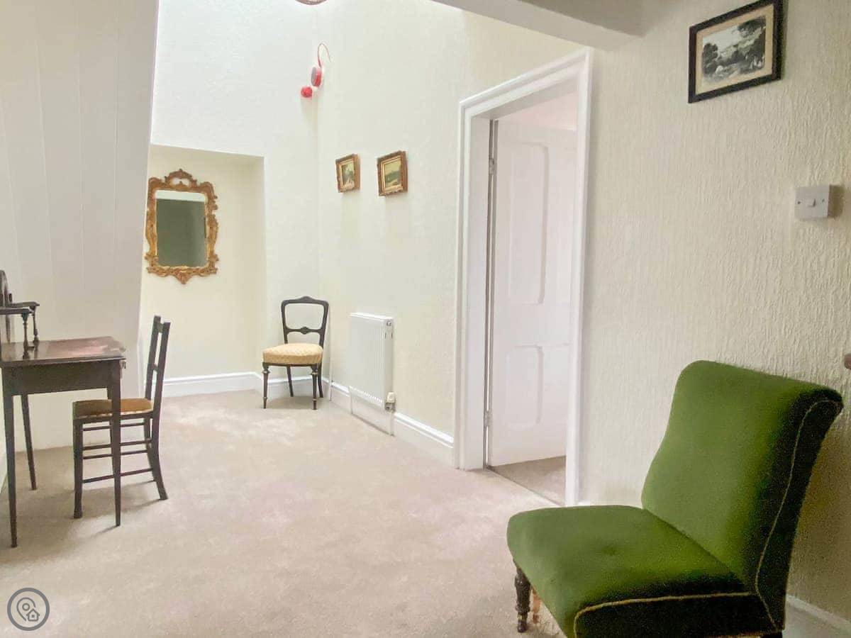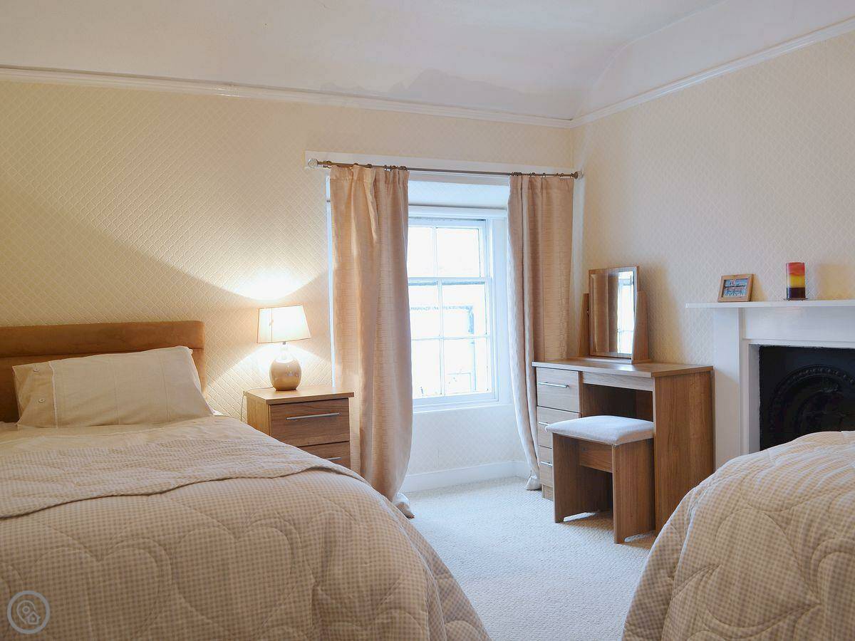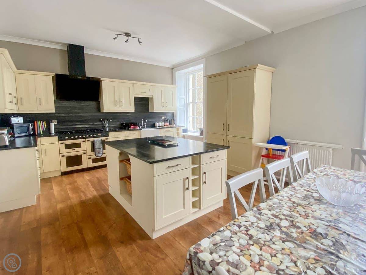 It sleeps nine people. Five bedrooms, two bathrooms. It's got a 4 Star rating. It's a listed building, so it's full of character but it's not a new build. The stairs are a point to note, they're steep in places and a bit narrow. Just be aware if you've got toddlers or anyone less steady on their feet.
