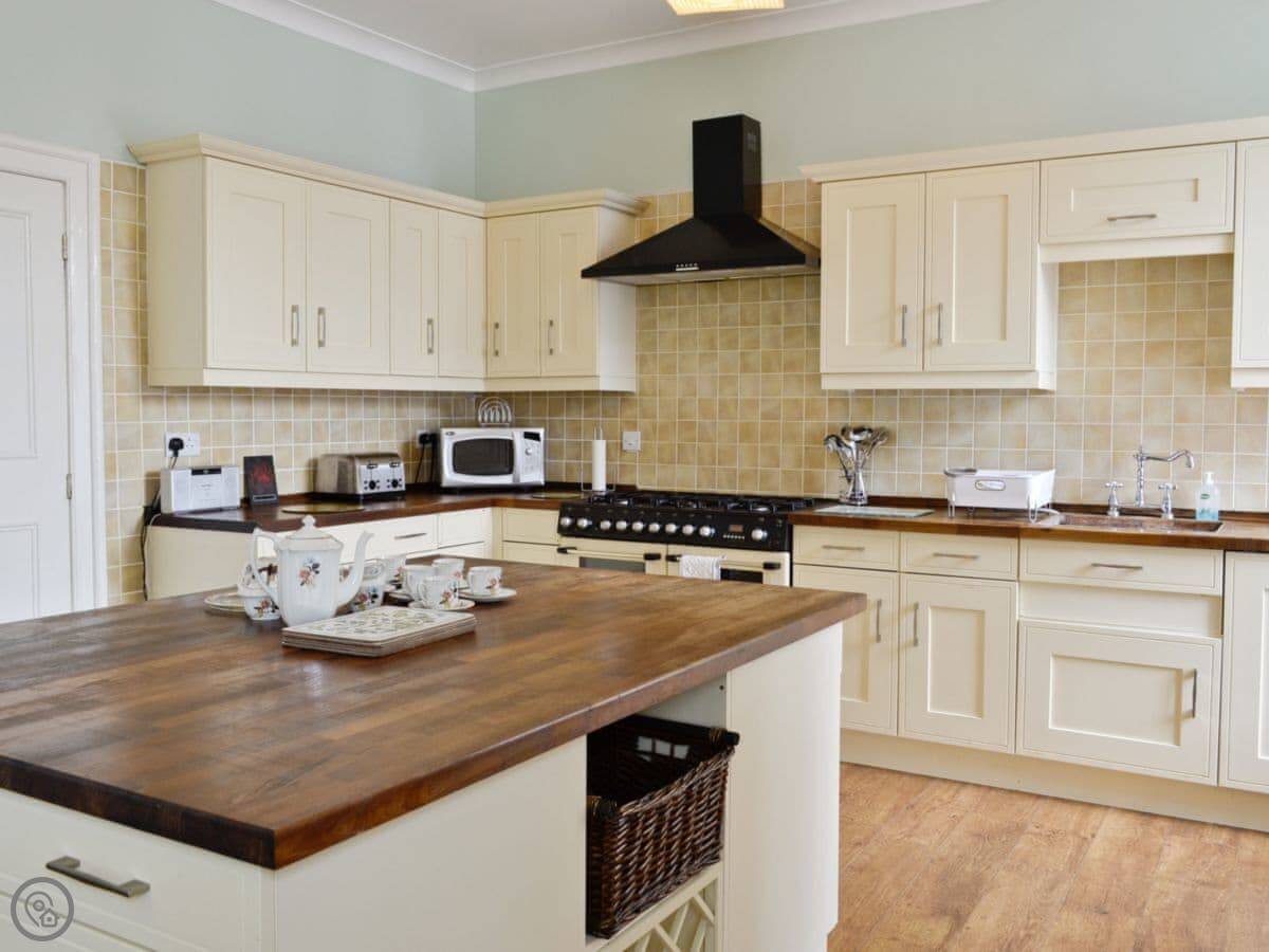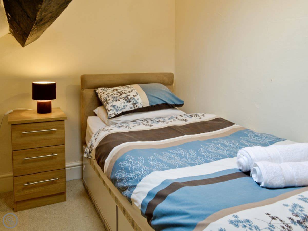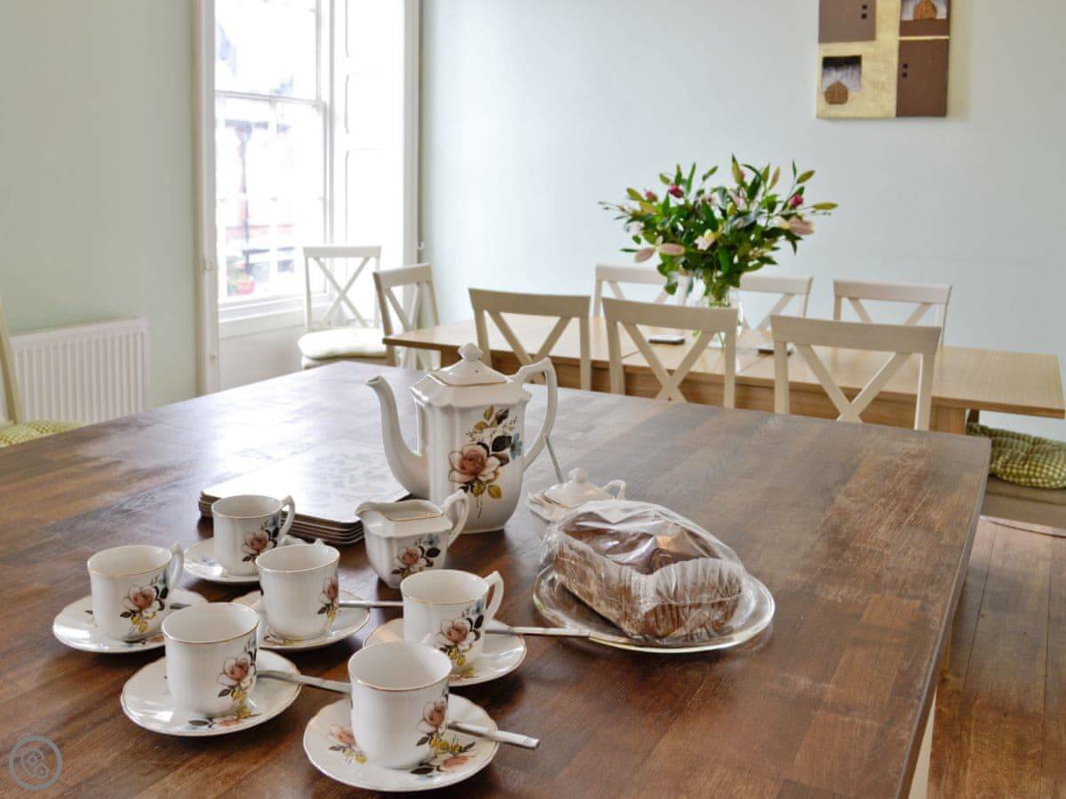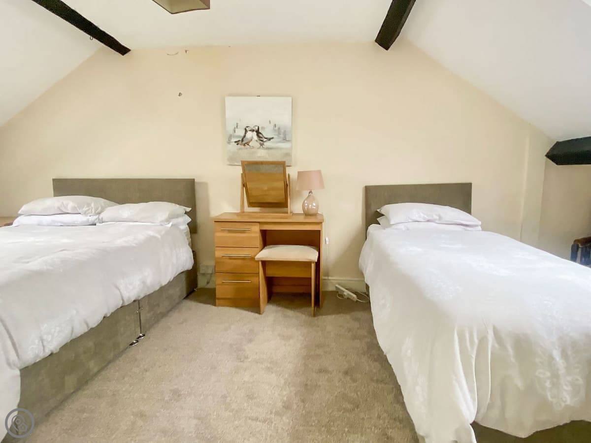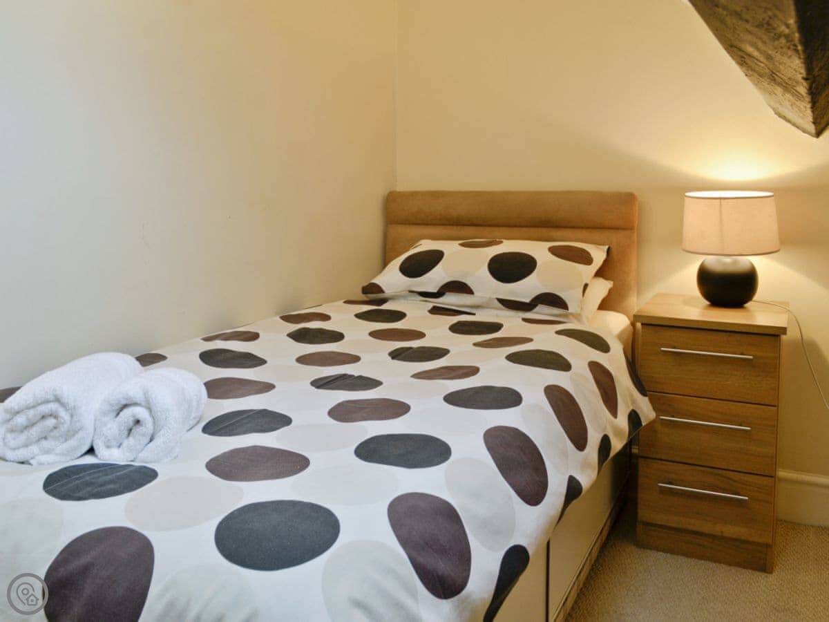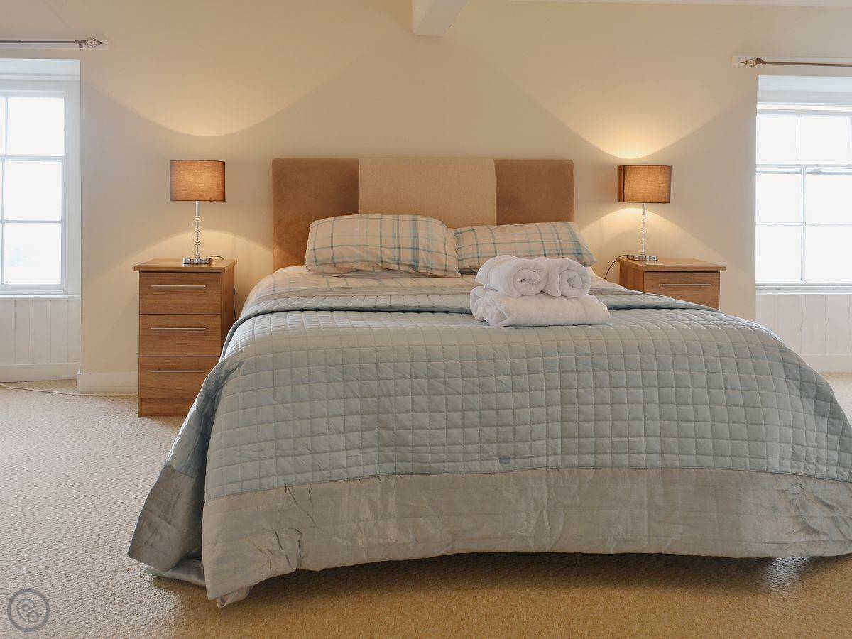 It sleeps nine people. Five bedrooms, two bathrooms. It's got a 4 Star rating. It's a listed building, so it's full of character but it's not a new build. The stairs are a point to note, they're steep in places and a bit narrow. Just be aware if you've got toddlers or anyone less steady on their feet.