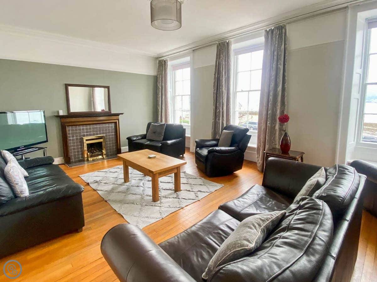 Bank House is in Beaumaris, right on the waterfront. It's a terraced house, Georgian I think. You look straight out over the Menai Strait to the Snowdonia mountains. You cross the road and you're by the sea.