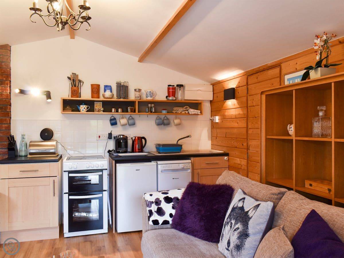 Inside, it's open plan. Woodburning stove for colder nights. TV, WiFi, dishwasher, washing machine. All the bedding and towels are included. We can provide a cot and highchair if you need them. One well-behaved dog is welcome.
