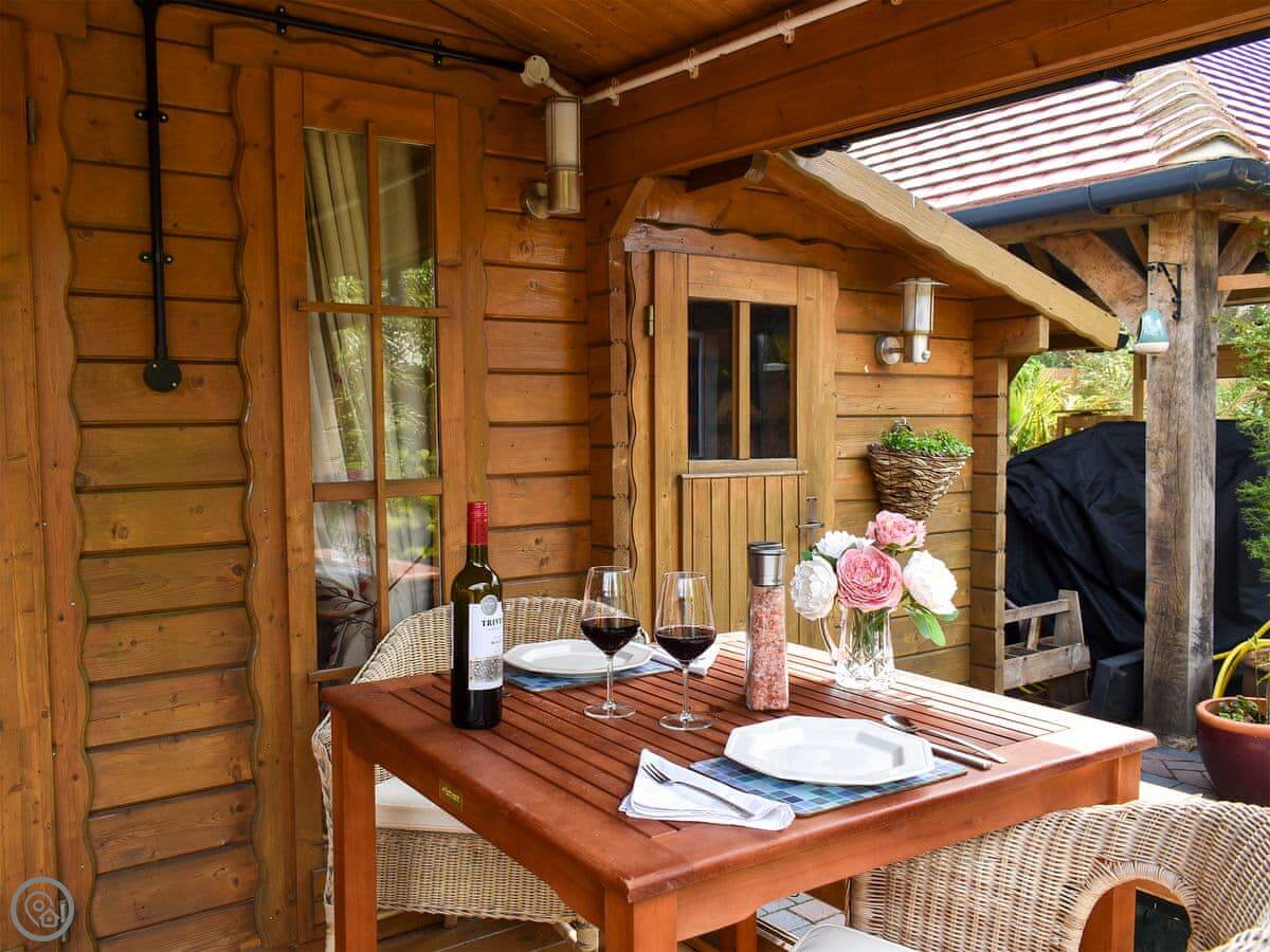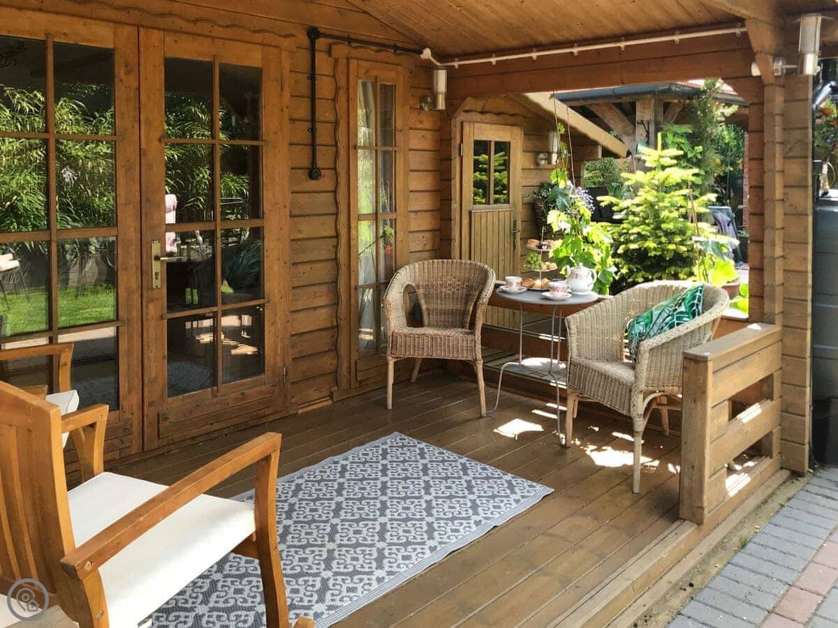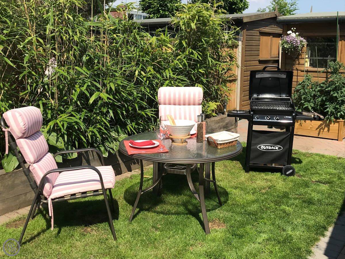 You've got your own patio and garden with a barbecue. It's set back from the road, so it's private. There's parking right outside and an electric vehicle charger.