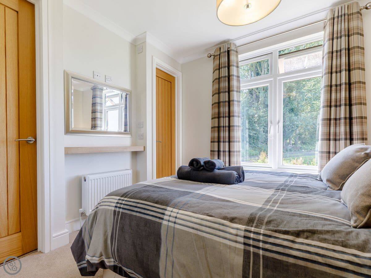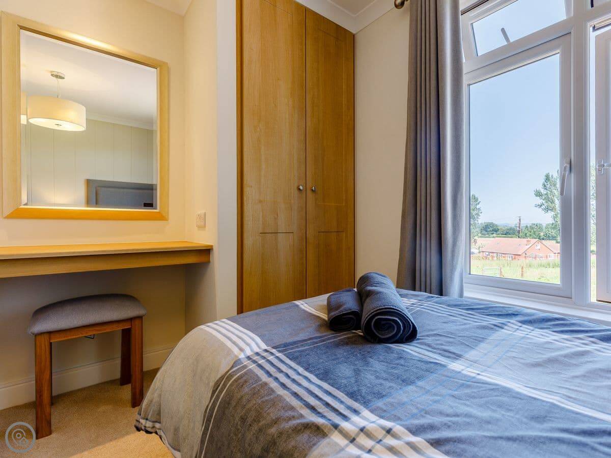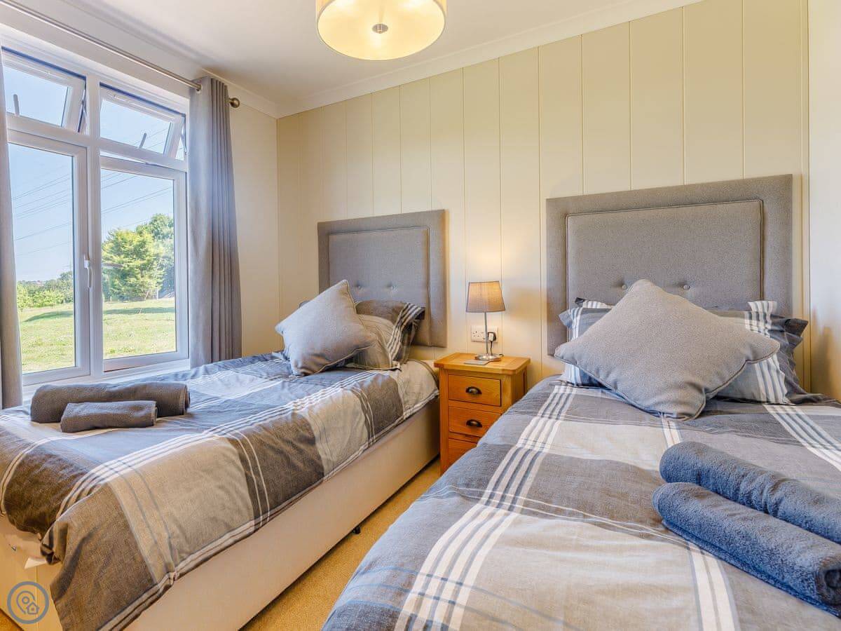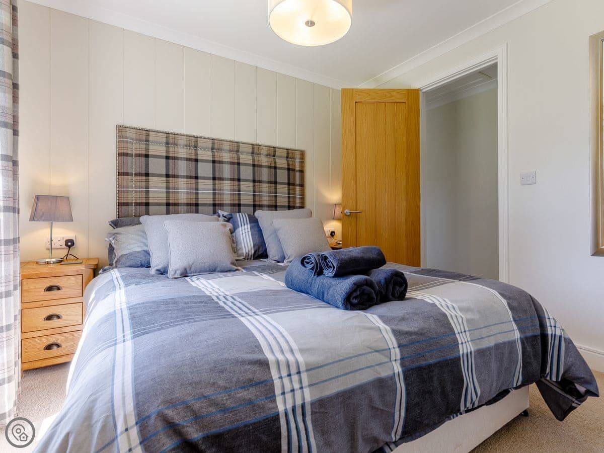 It sleeps four. Two bedrooms, both have their own bathrooms. It's got a 5 Star rating, which means it's new and kitted out to a high standard. Everything is on one floor, so it's accessible.