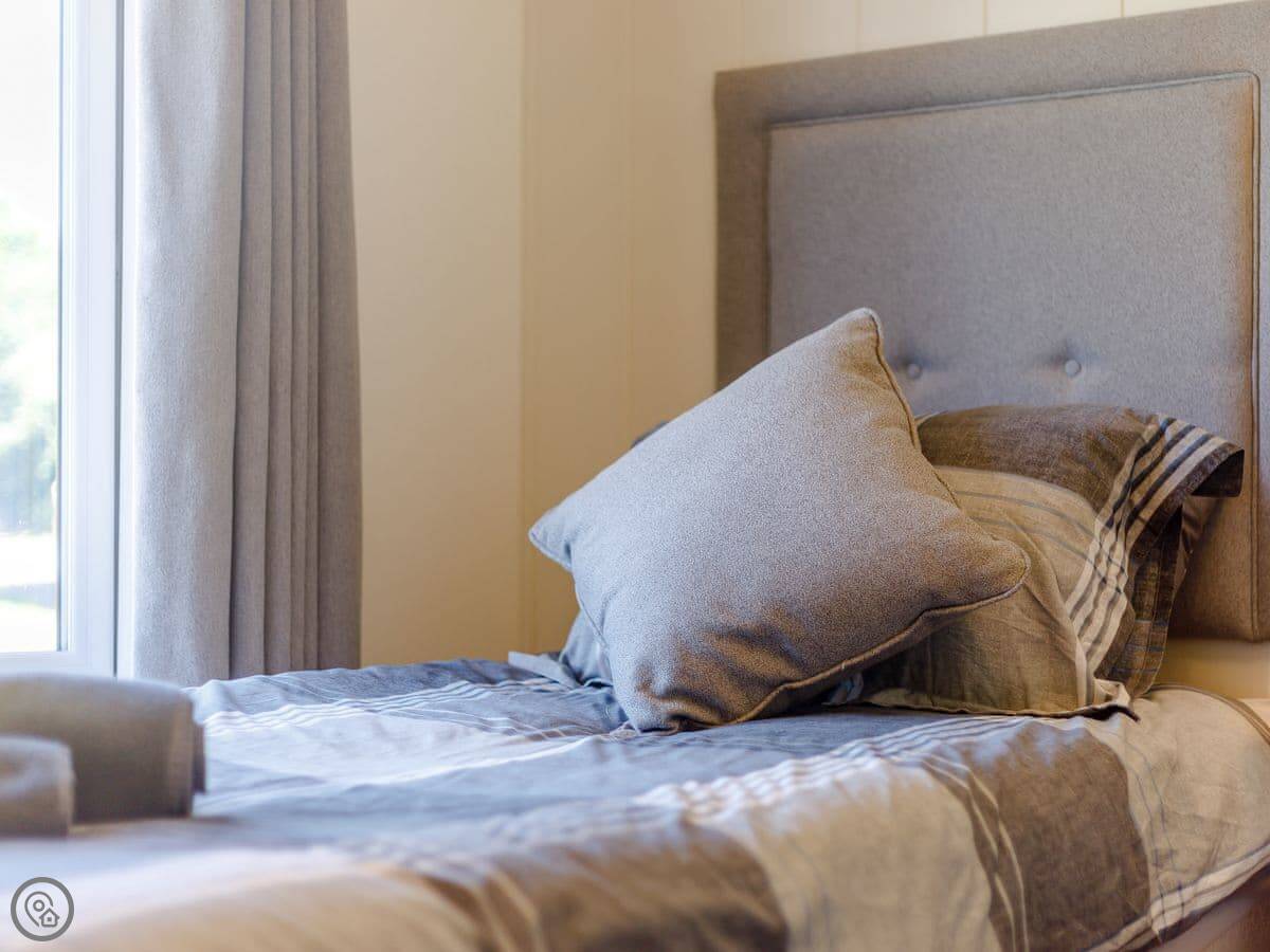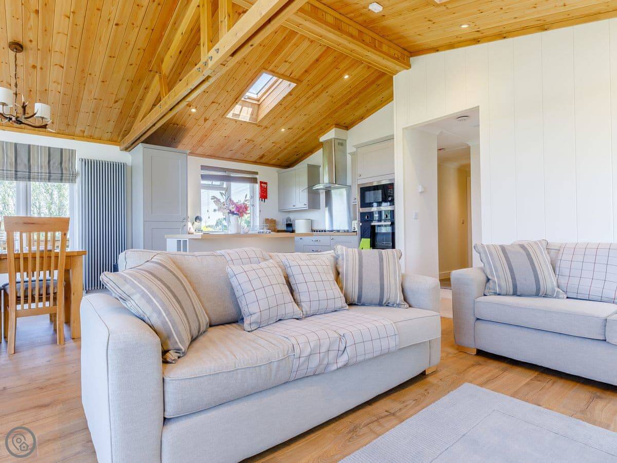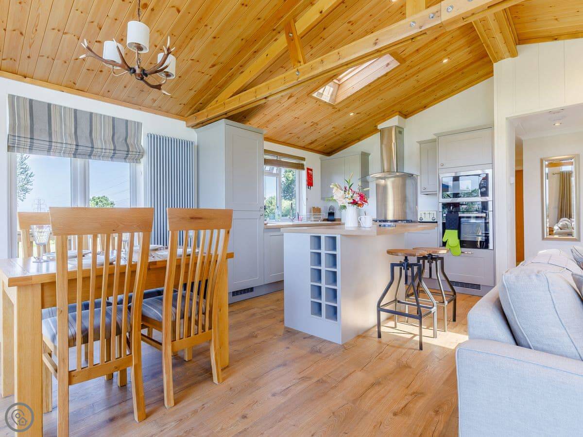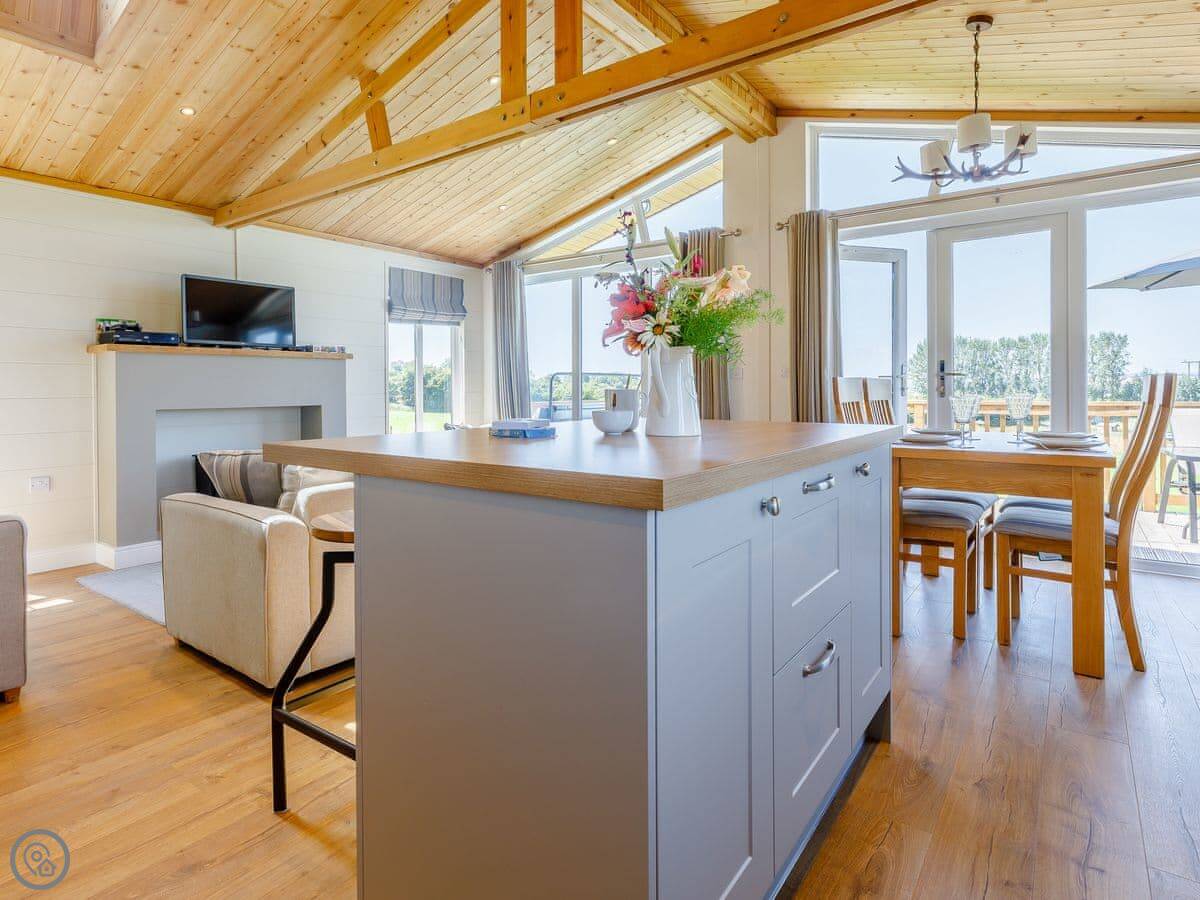 It sleeps four. Two bedrooms, both have their own bathrooms. It's got a 5 Star rating, which means it's new and kitted out to a high standard. Everything is on one floor, so it's accessible.
